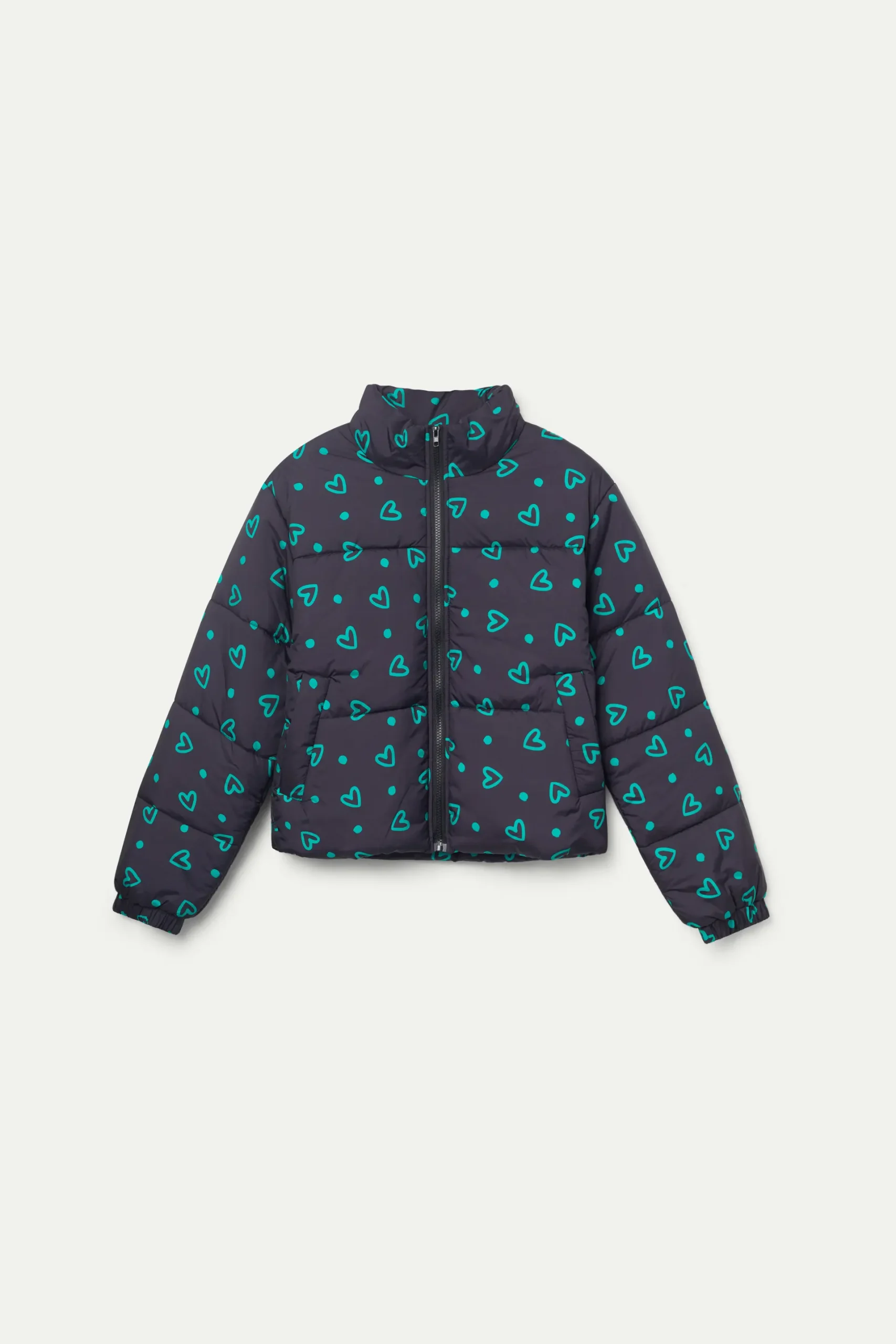 Sé el primero en valorar “Abrigo acolchado estampado de corazones verdes”