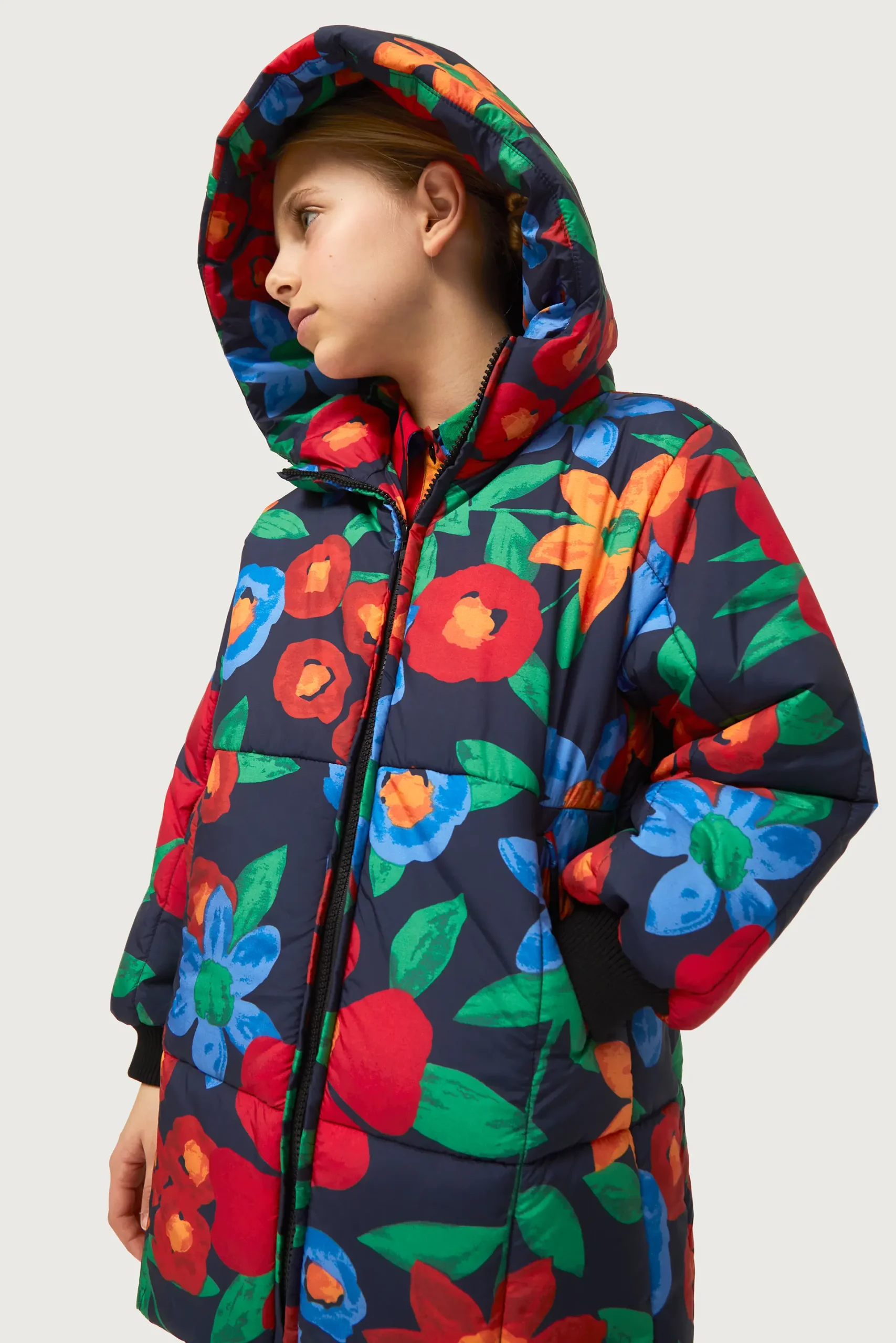 Abrigo de niña acolchado estampado flores multicolor