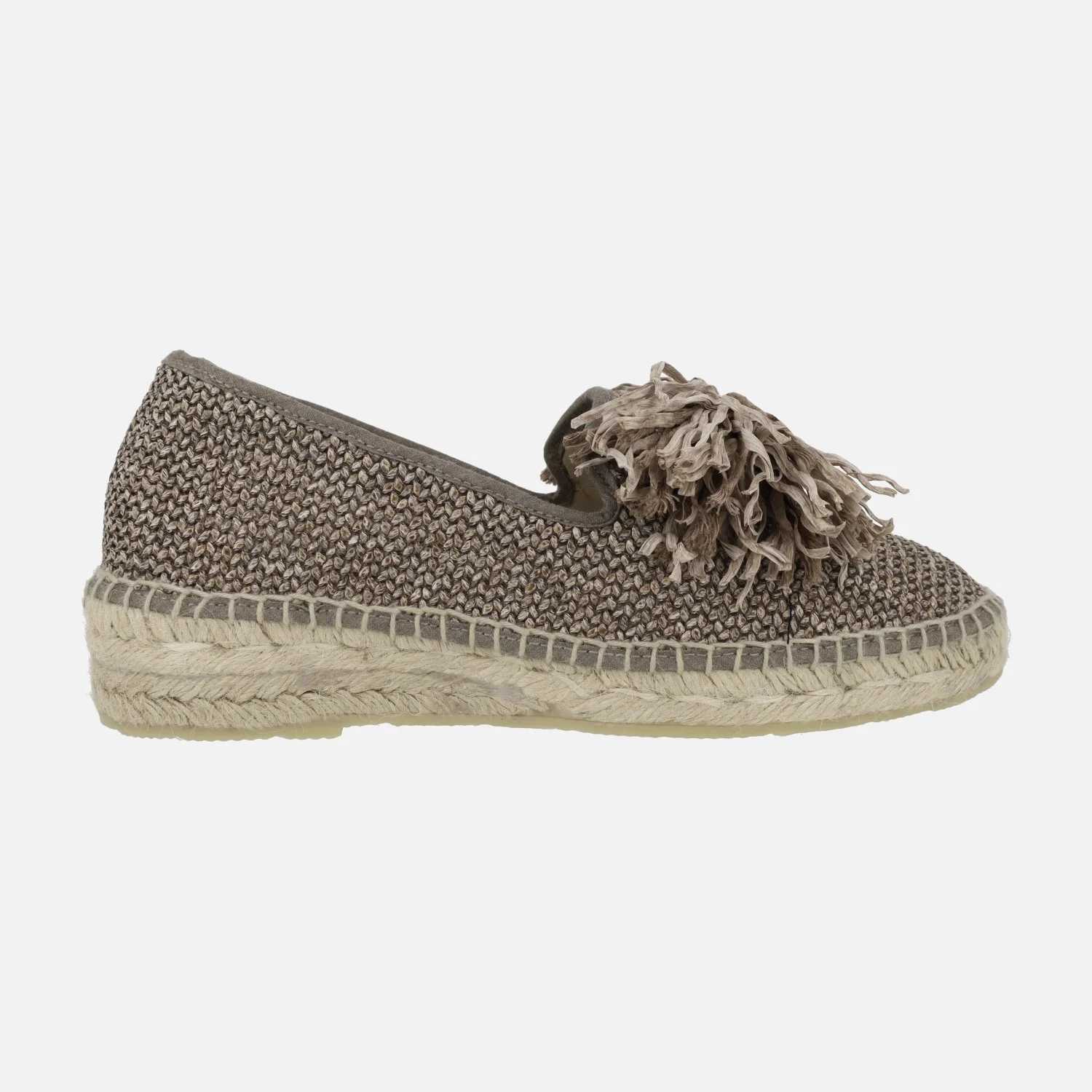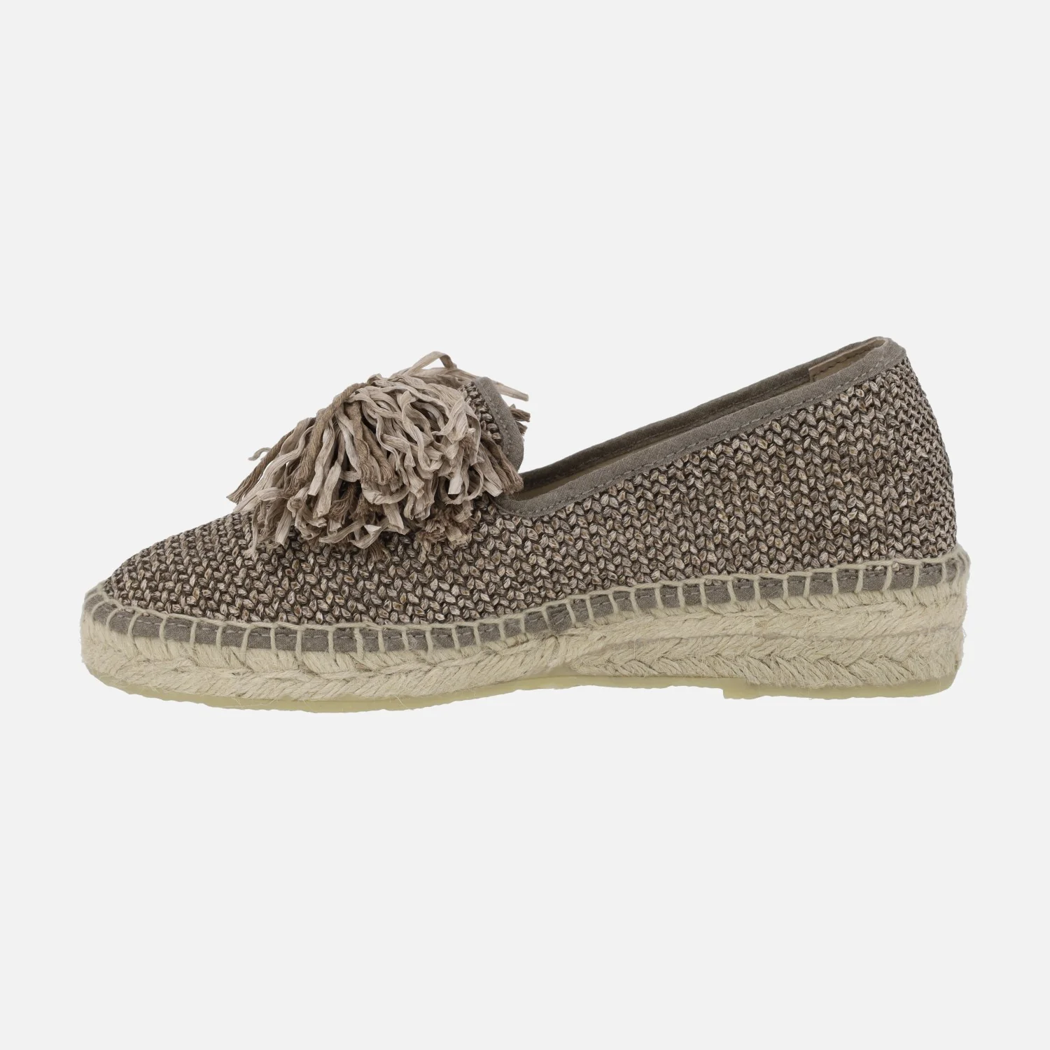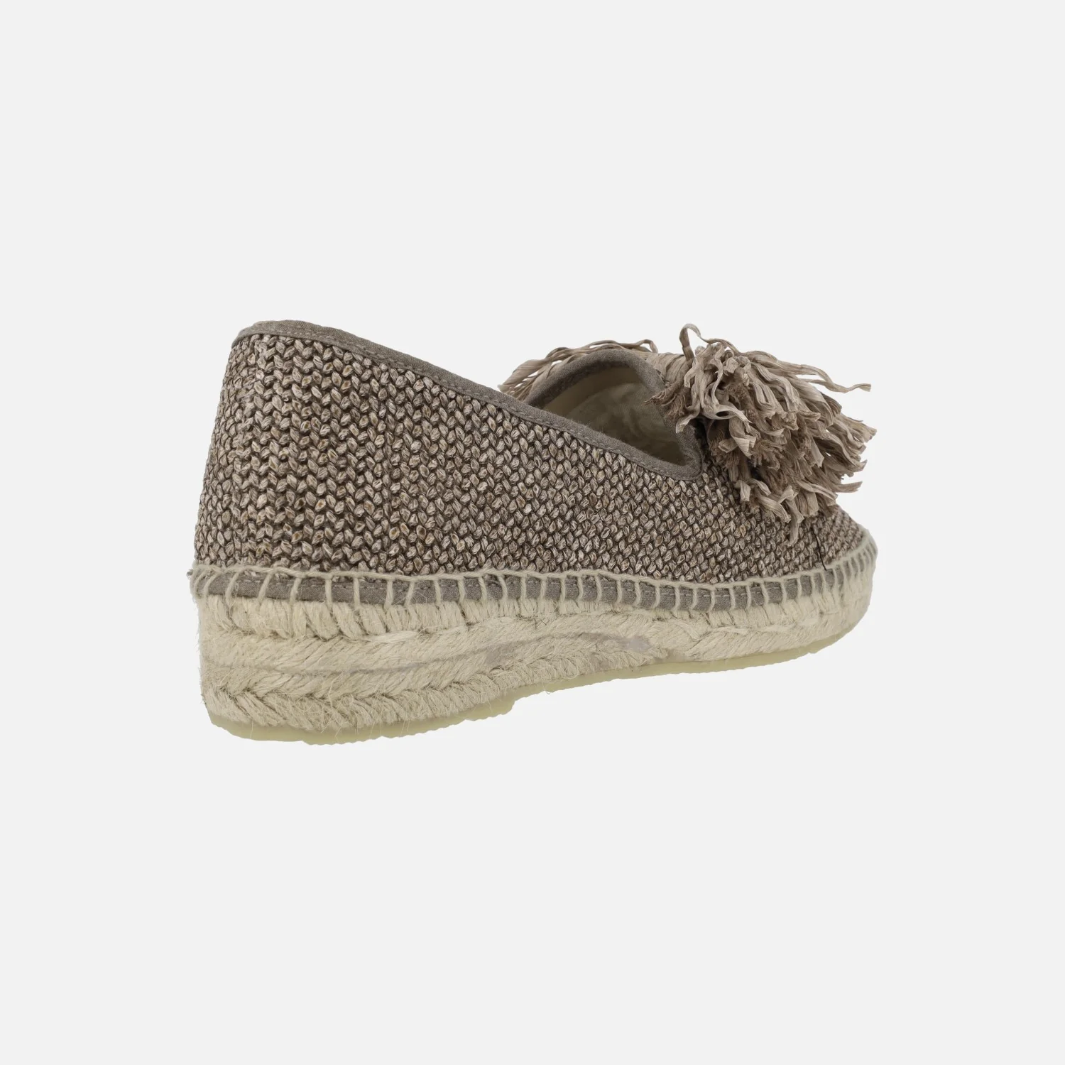 Zapatillas cerradas de esparto de la marca Juncal Aguirre modelo 1852 Tostado. Alpargatas elaboradas en tejido trenzado en tonos marrones, con adorno de lazo en la pala. Interior mixto de piel y tejido. Plataforma de esparto natural, con suela de goma. Altura trasera 3,5 cms (2 cms parte delantera). Made in Spain.