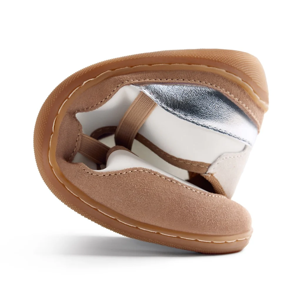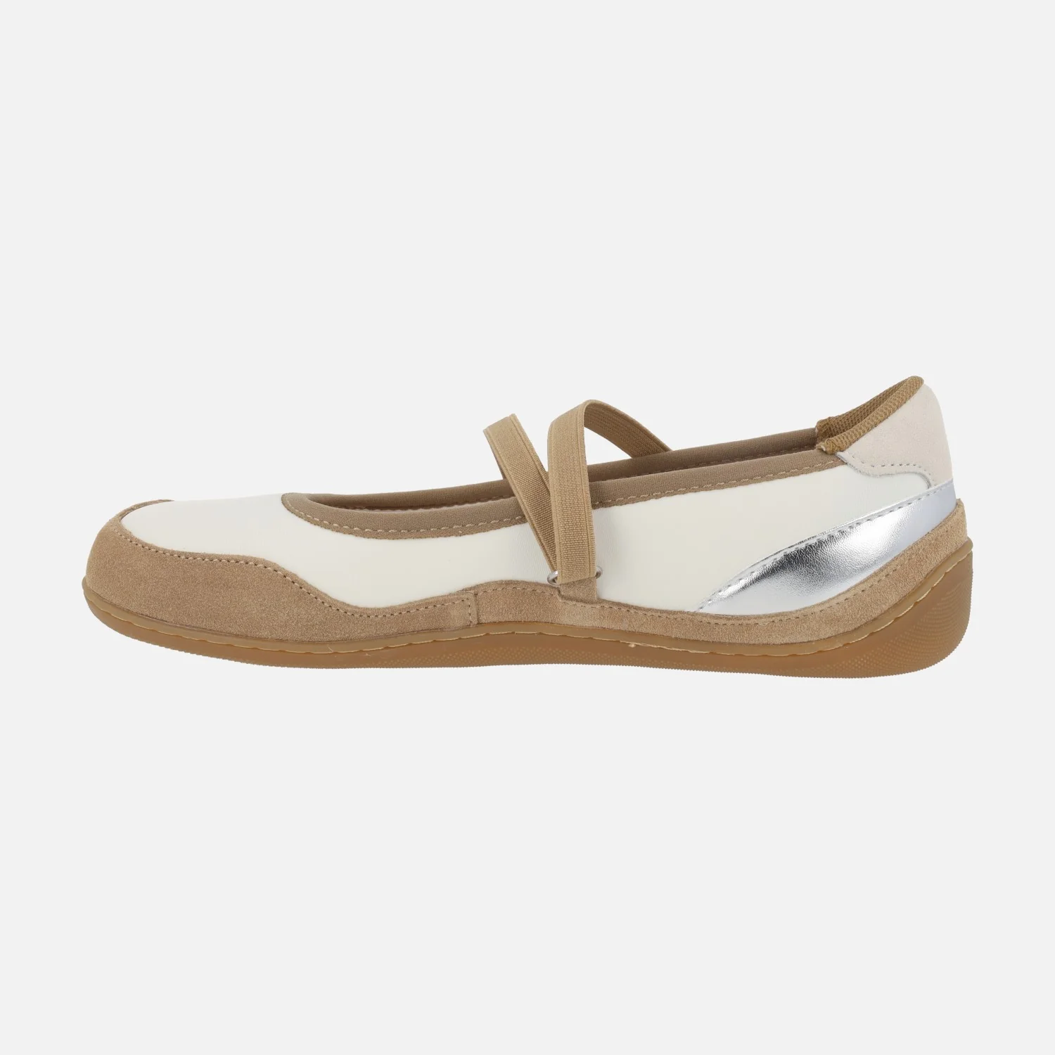 La tendencia del calzado respetuoso sigue en auge y por ello Gioseppo nos trae nuevos modelos para esta temporada primavera verano 26: modelo KAGIO 79261 Tan. Bailarinas BAREFOOT de estilo deportivo elaboradas en piel, poliéster transpirable y poliuretano, en combinado camel y beige con detalles metalizados. Tira elástica al empeine para una buena sujeción. Suela plana de caucho, sin desnivel (DROP CERO). Puntera amplia para una mayor libertad de los dedos. Sin refuerzos. Totalmente flexible.