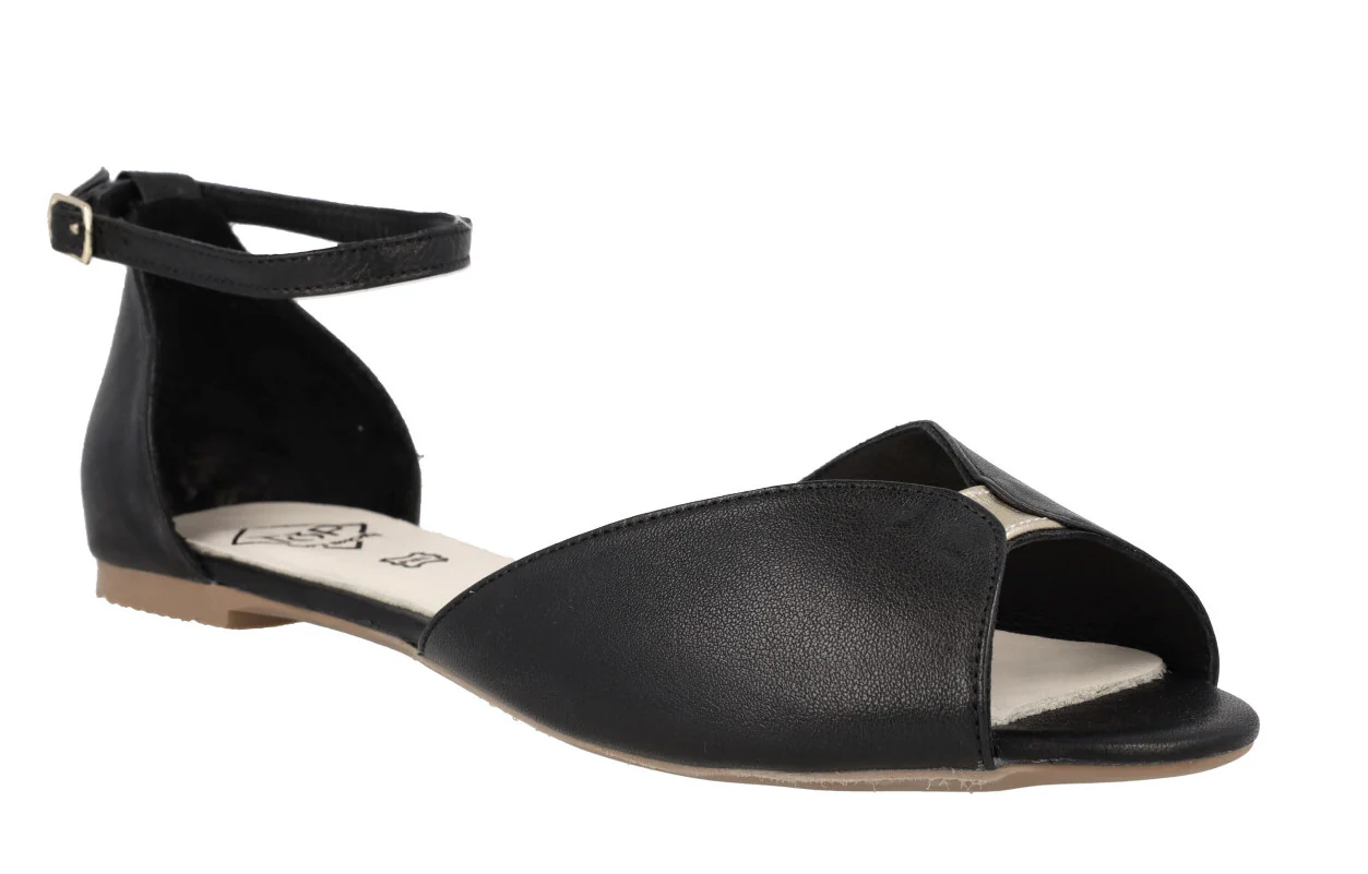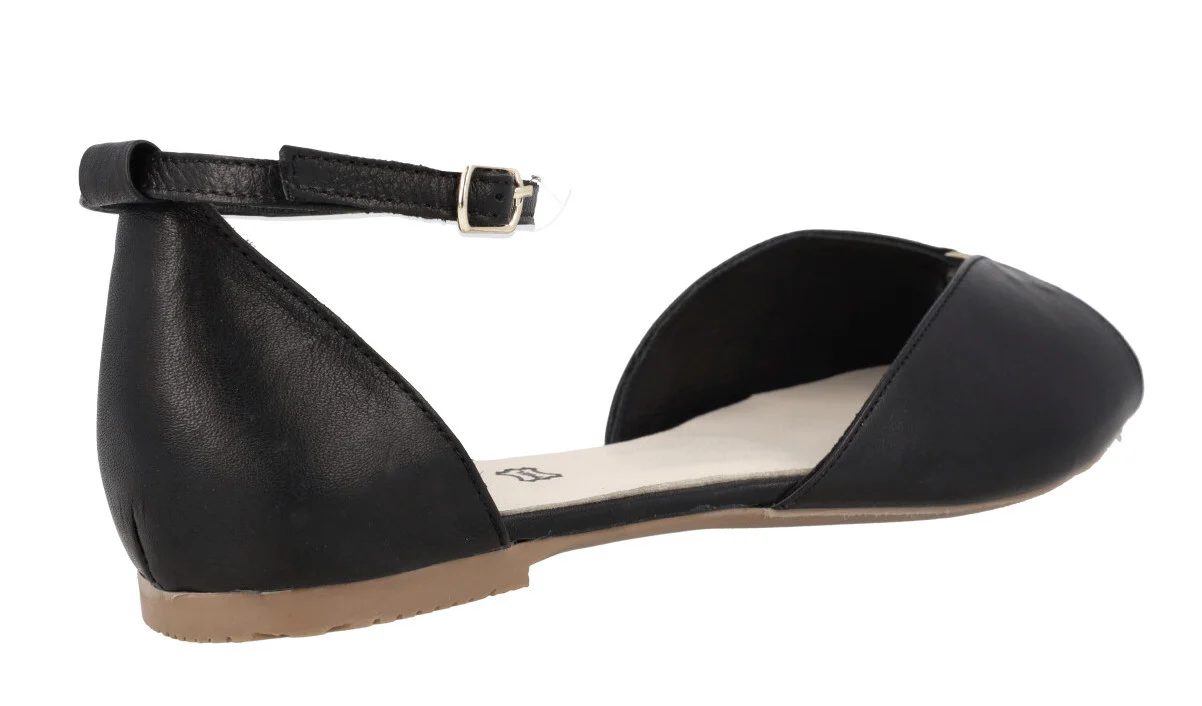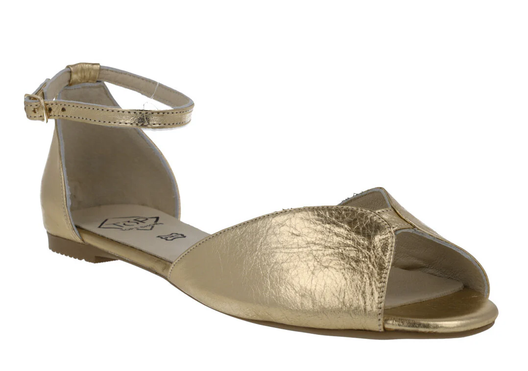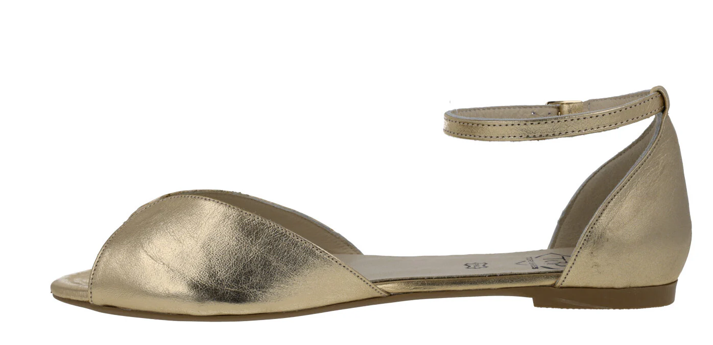 Bailarinas de piel abiertas de puntera y en los laterales de la marca Top3 modelo 23362. Bailarinas con pulsera al tobillo y cierre de hebilla. Pequeña pieza de piel metalizada oro en la parte delantera. Planta de piel acolchada. Bailarinas planas, de apenas 1 cm de altura de trasera.