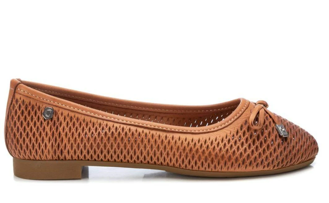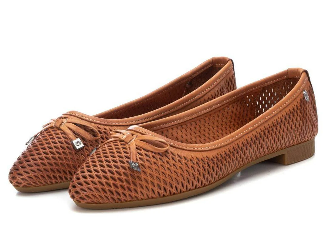 Bailarinas de piel para mujer de la marca Carmela shoes, modelo 160761. Bailarinas planas, elaboradas en piel hielo (taupe) o camel, con detalle de picados en la pala y lazo. Sin forrar, muy fresquitas y maleables. Planta de piel acolchada. Piso finito de goma con 1,5 cms de altura.