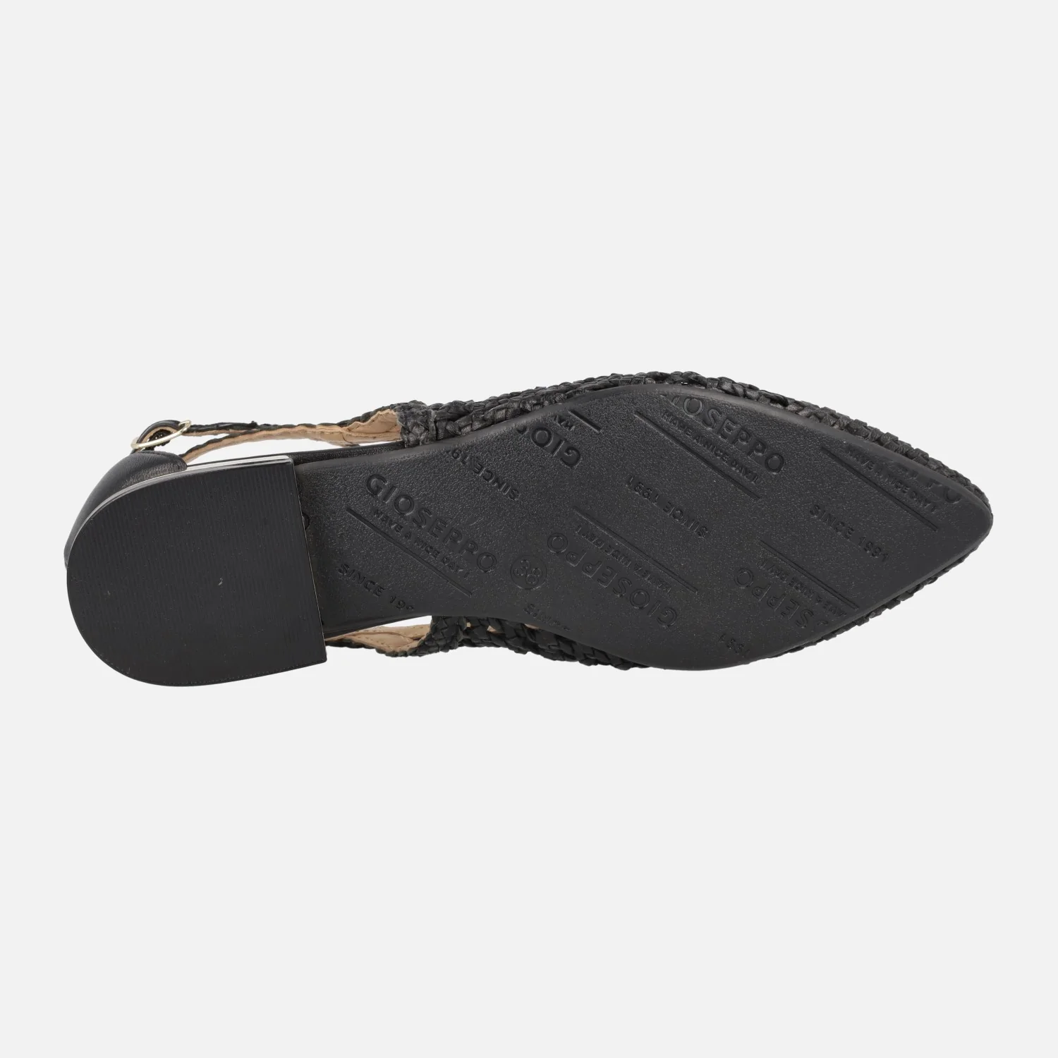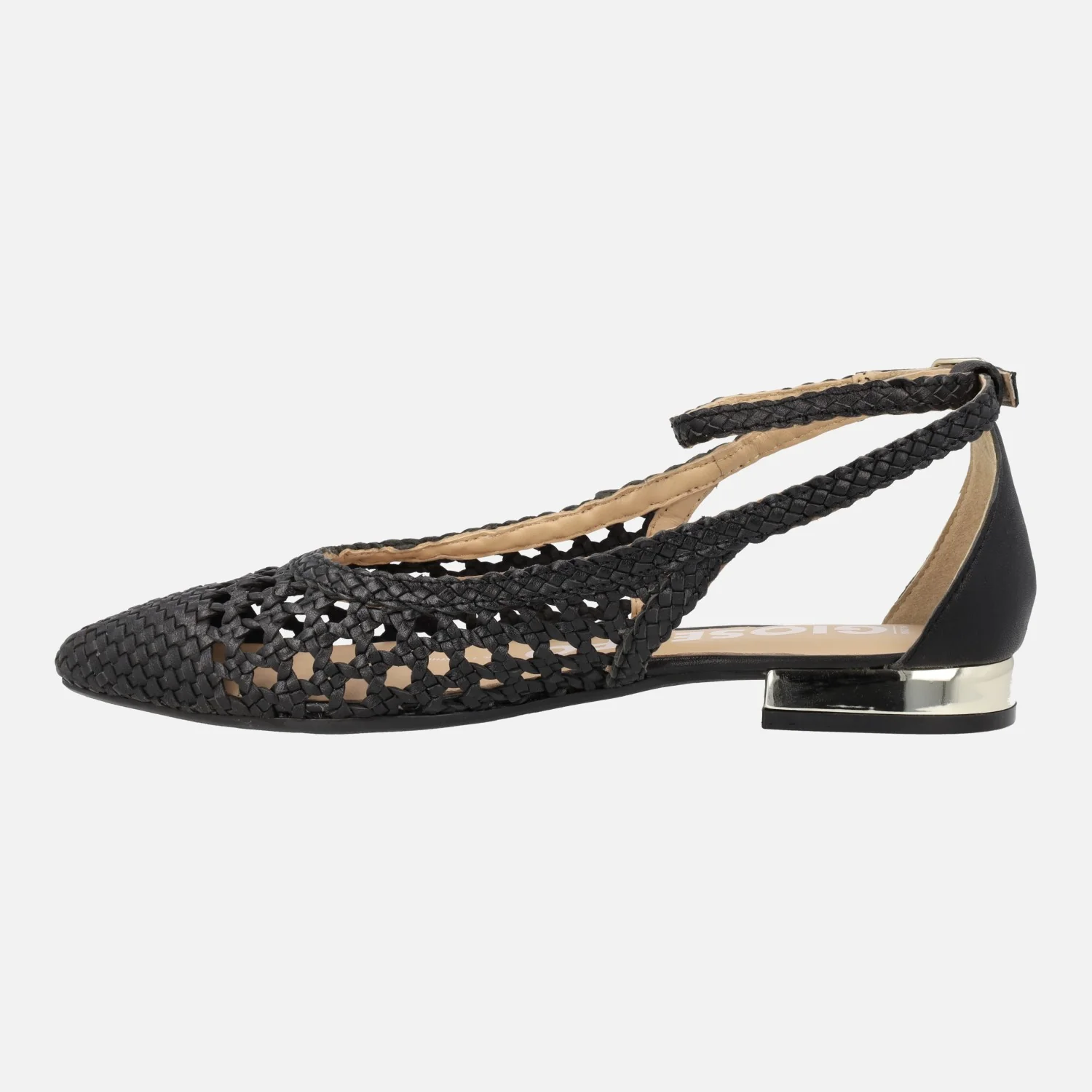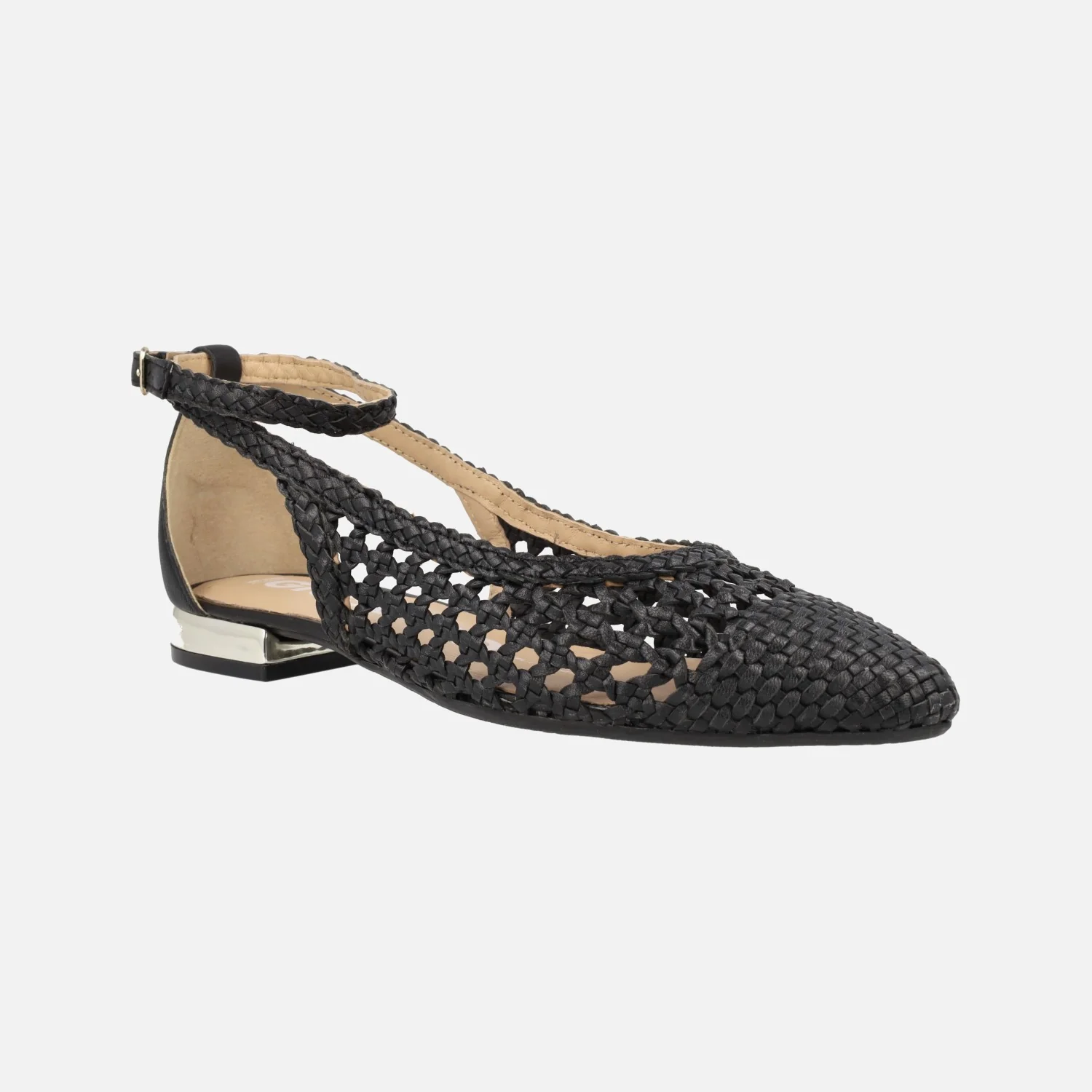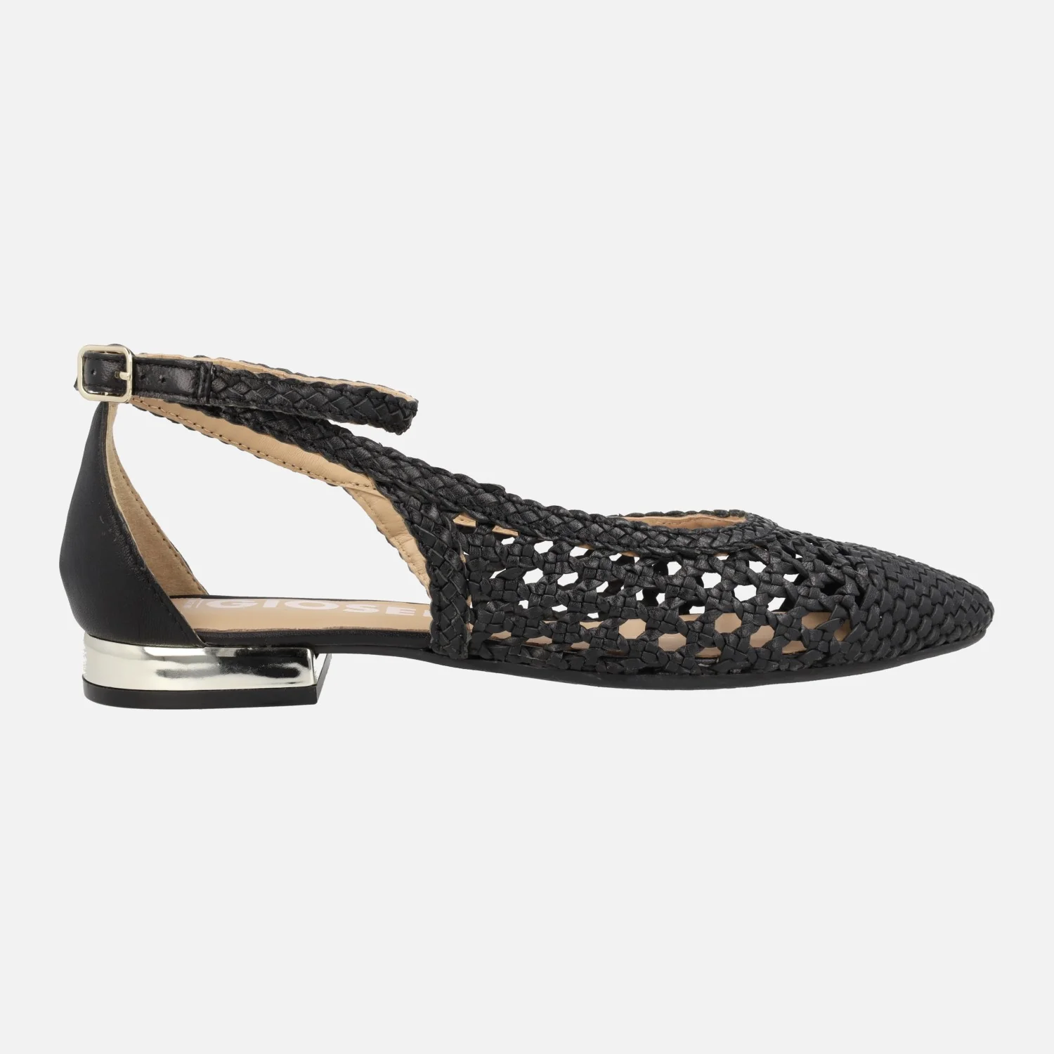 Bailarinas trenzadas de piel de la marca Gioseppo modelo 62109 Dell, disponibles en color negro. Bailarinas de punta fina, elaboradas en piel trenzada, con aberturas laterales y pulsera al tobillo. Forro y planta de piel. Piso sintético, con tacones bajitos de apenas 2 cms de altura.