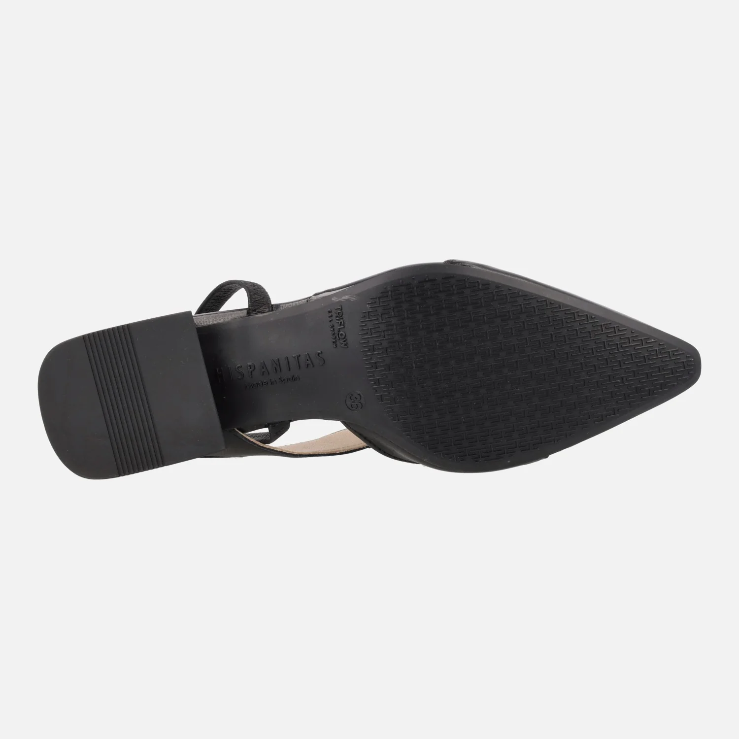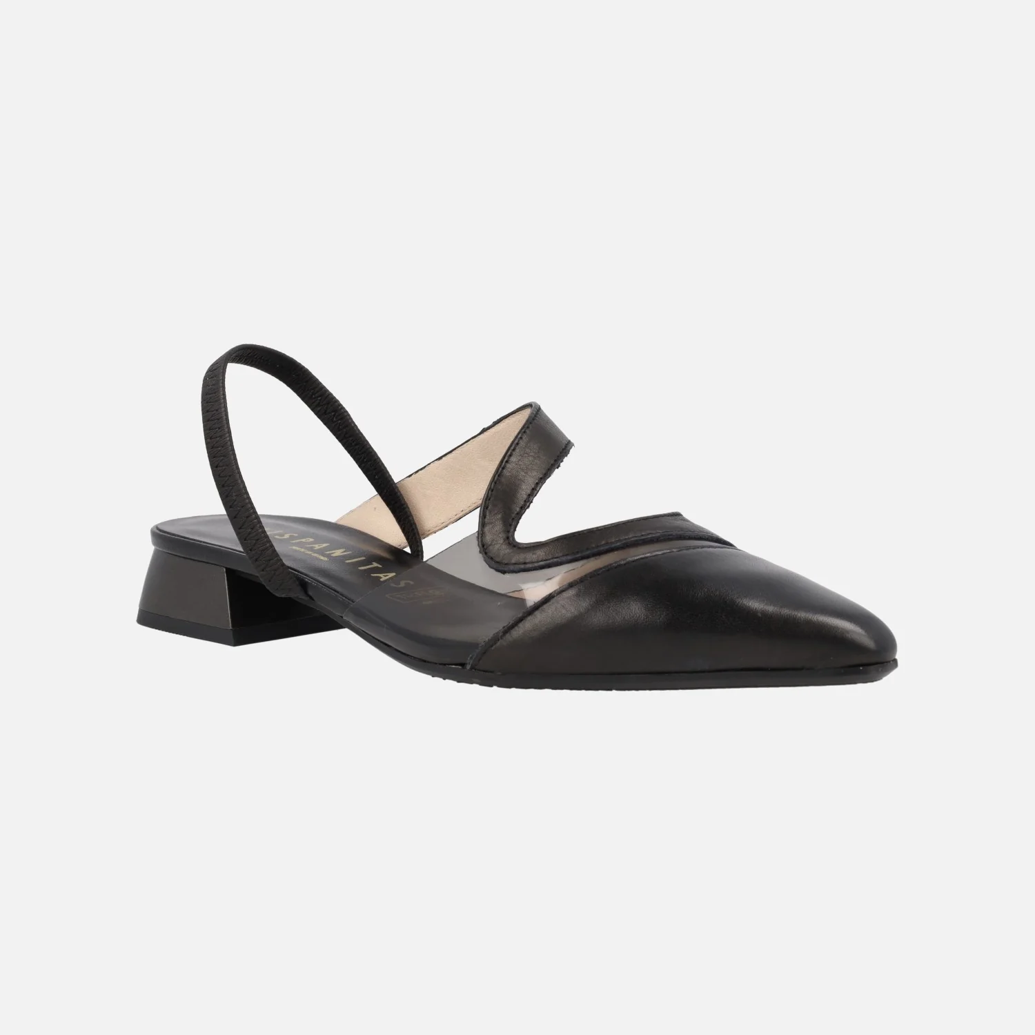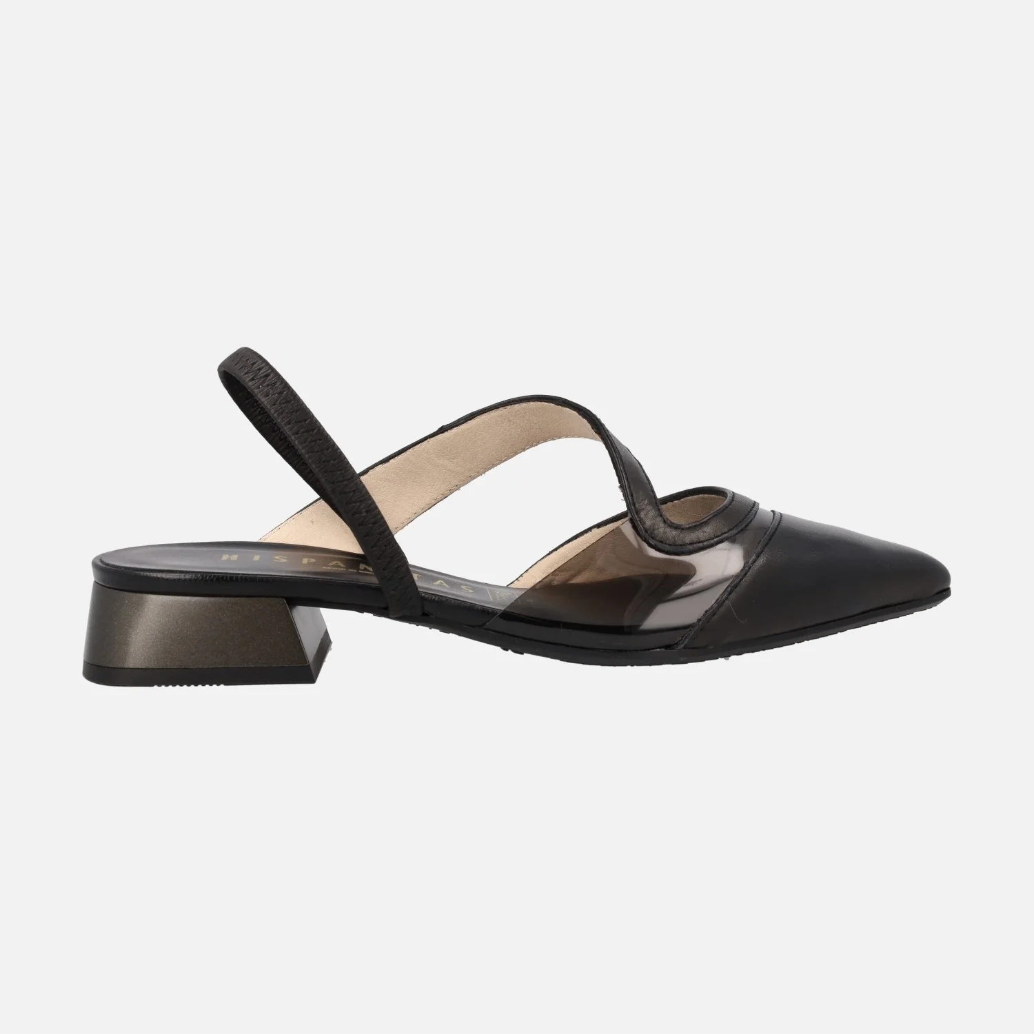 Enamoradas de las nuevas bailarinas destalonadas Hispanitas, modelo HV243405, disponibles en Soho black (piel negra) y en Menorca Antico (metalizado oro). Bailarinas con puntera ligeramente afilada, elaboradas en combinado de piel y vinilo. Tira elástica al talón. Interiores de piel. Tacones bajos, metalizados, de 3 cms de altura. Made in Spain.