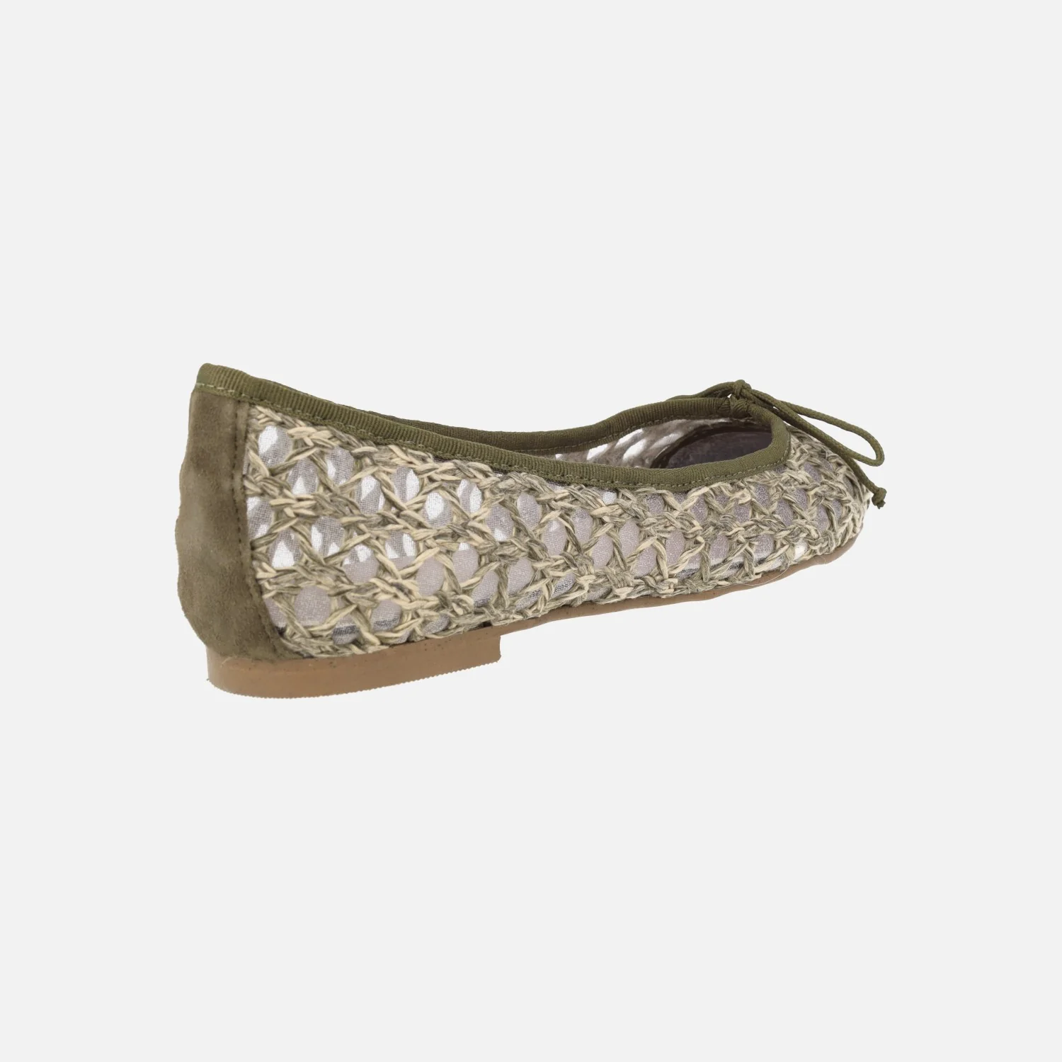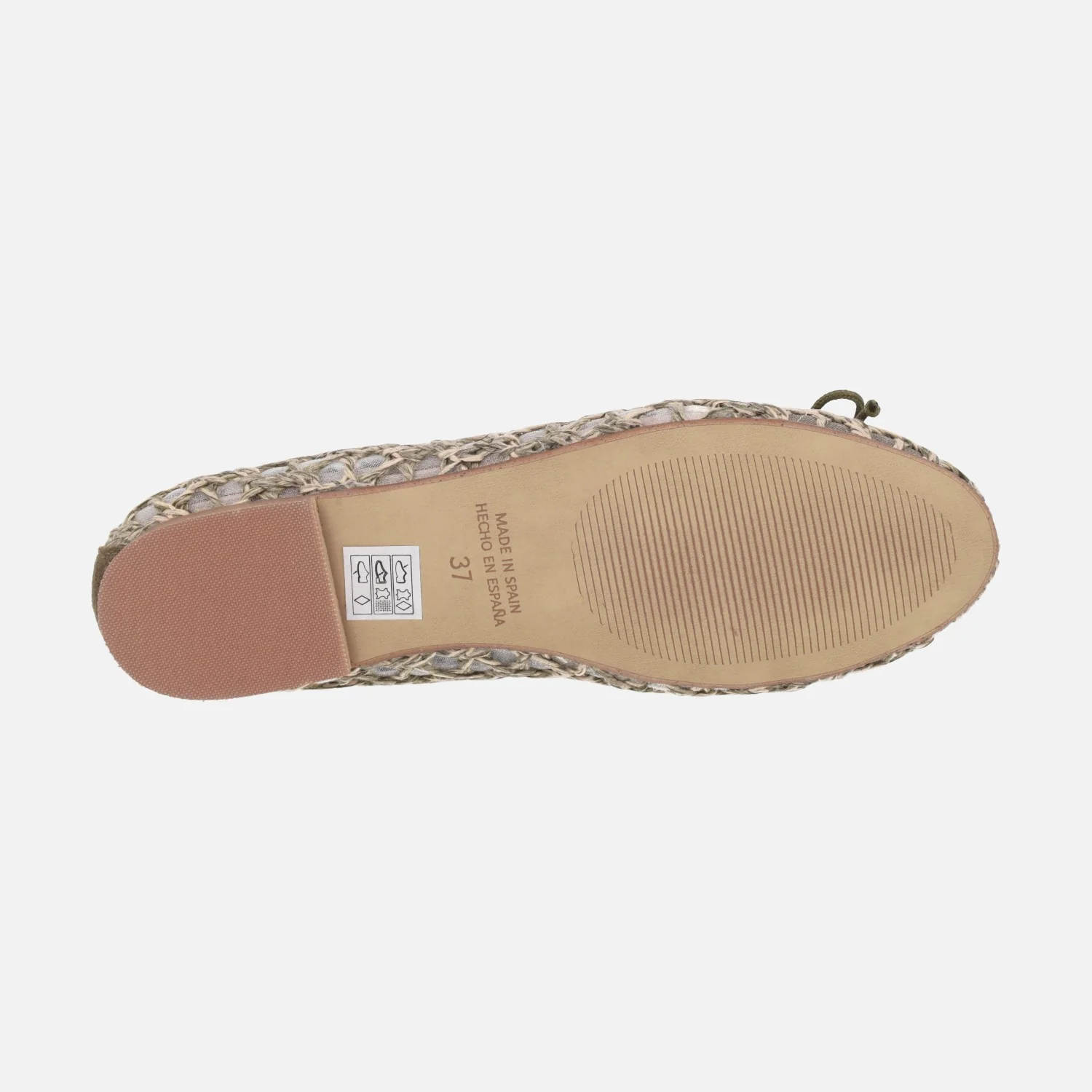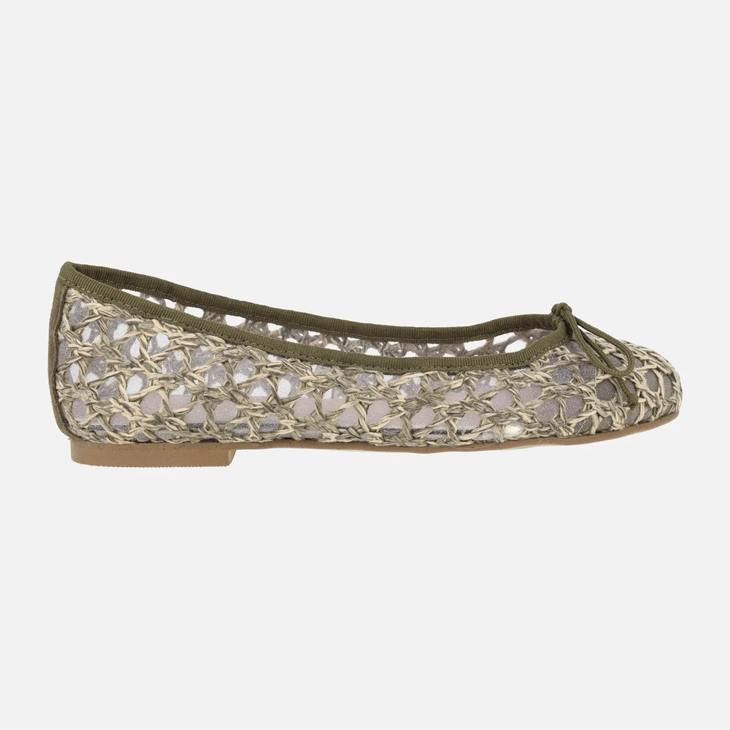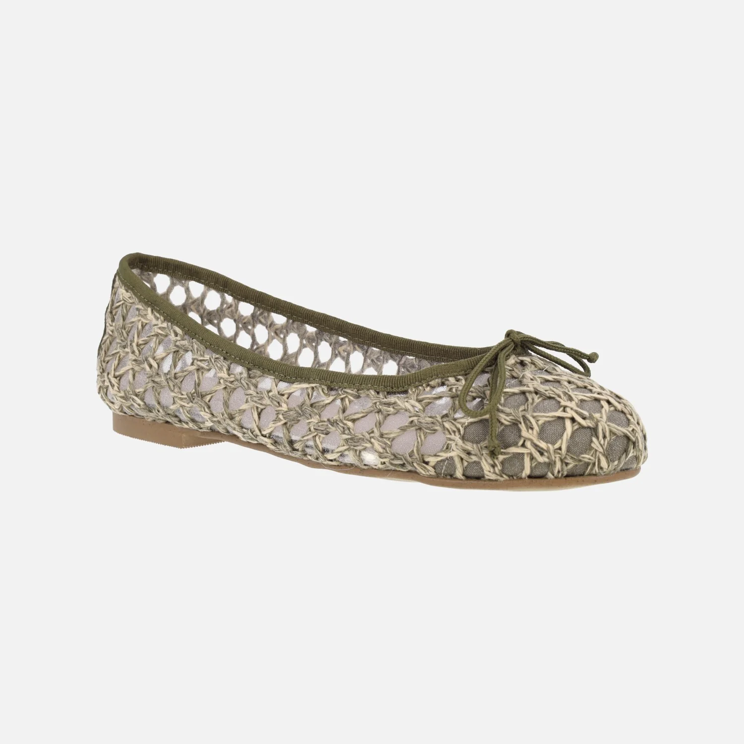 Bailarinas trenzadas para mujer de la marca Euforia, modelo Emma. Bailarinas elaboradas en un combinado de piel y materiales sintéticos, con detalle de lazo. Disponibles en negro y en combinado kaki y beige. Forro textil transparente, planta de piel. Piso sintético, plano, de apenas 2 cms de tapa. Made in SPain.
