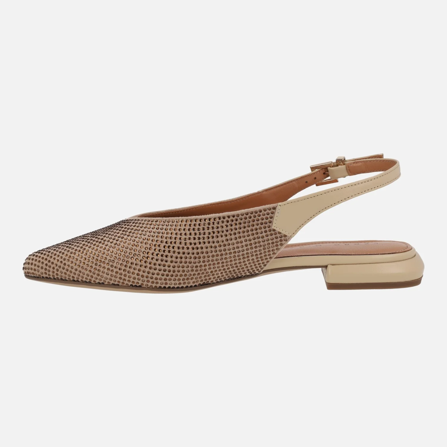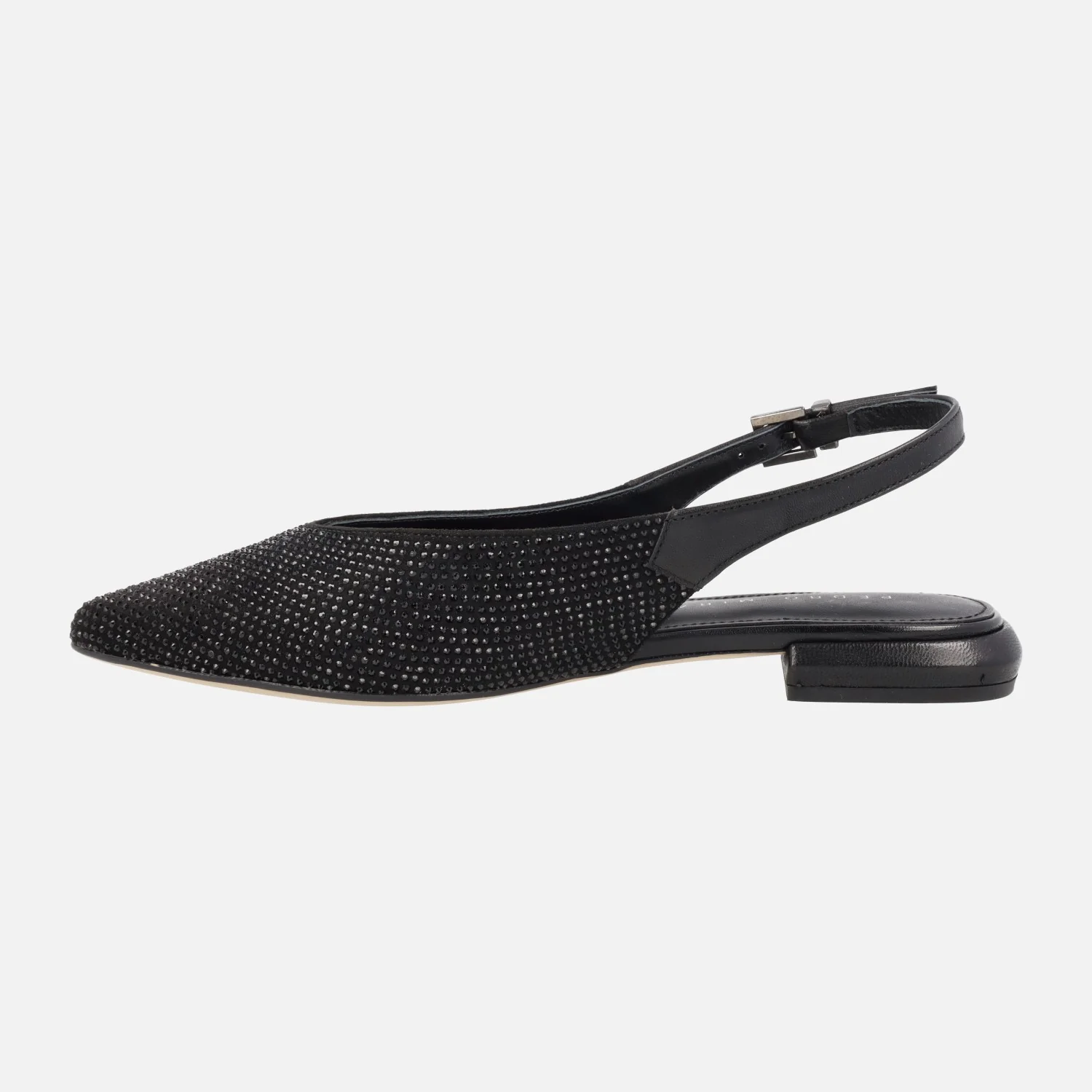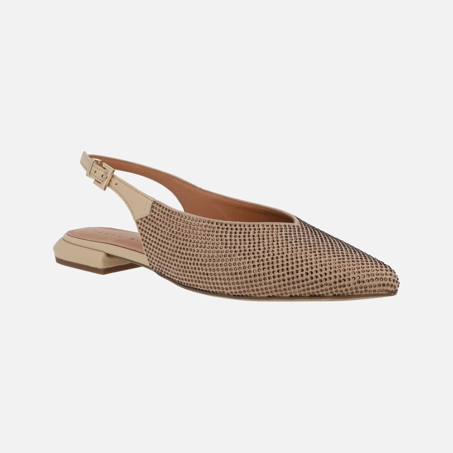 Preciosas bailarinas Pedro Miralles modelo Palma 14483 Softanil negro o beige. Bailarinas destalonadas con toda la parte delantera cubierta de strass. Tira de piel al talón con cierre de hebilla. Forro y planta de piel. Tacones bajitos, apenas 2,5 cms de altura. Made in Spain.