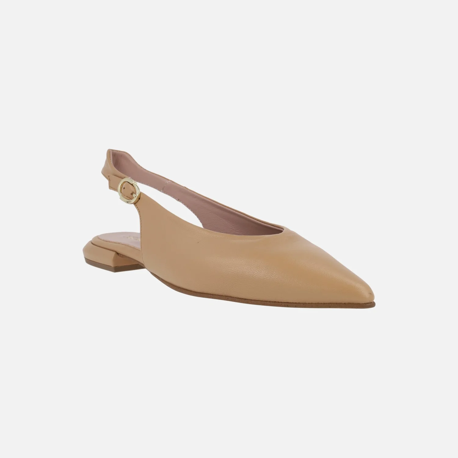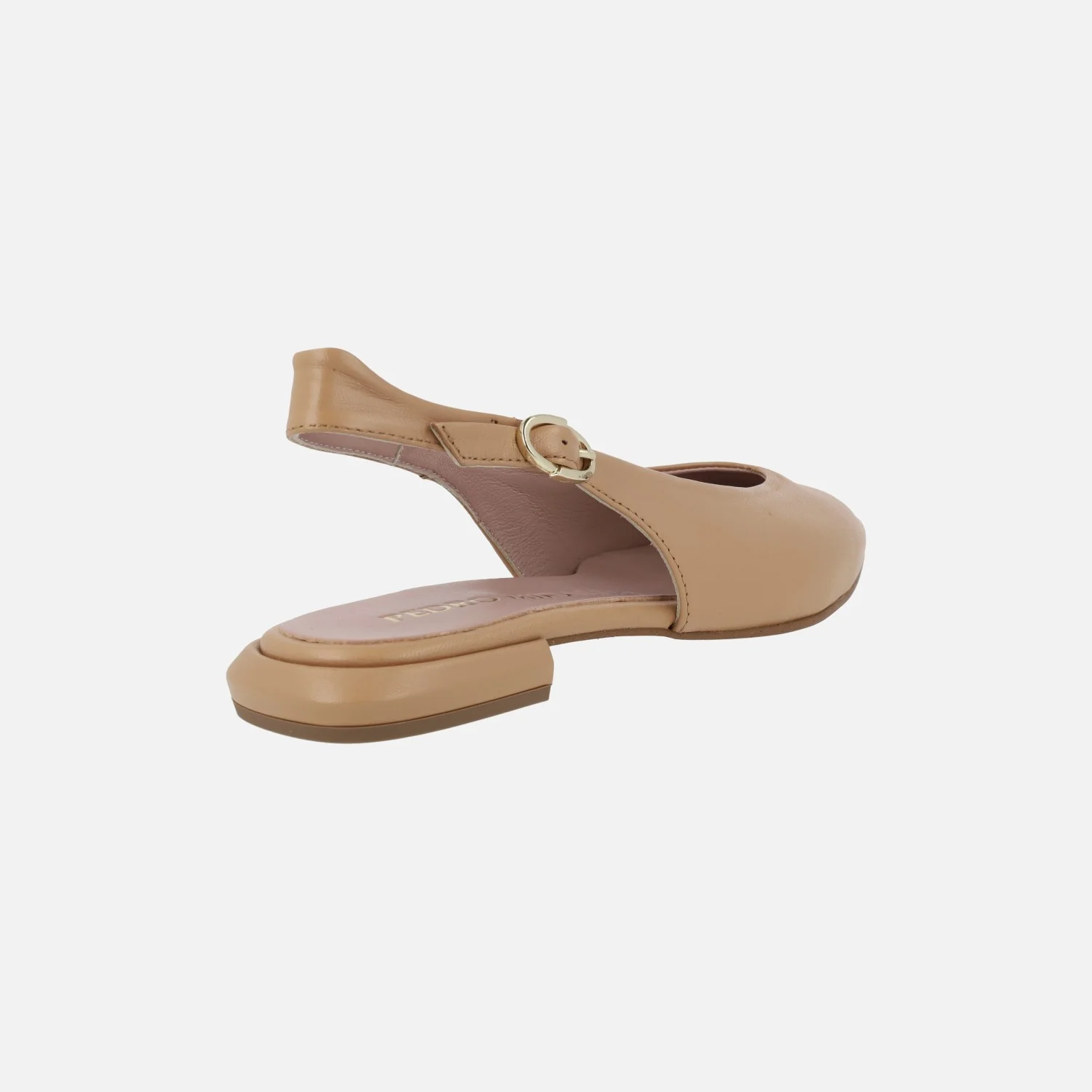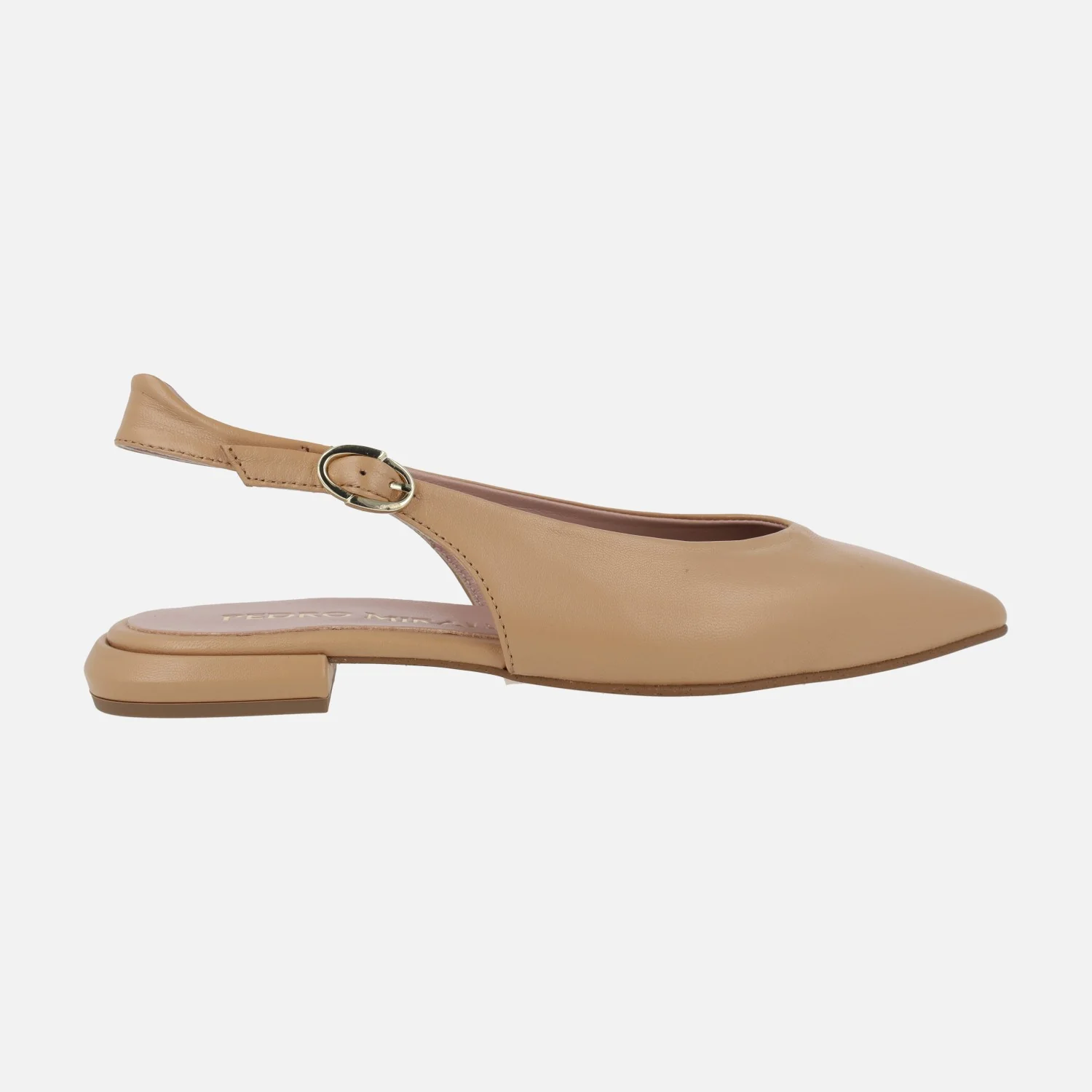 Preciosas bailarinas destalonadas en piel camel de la marca española Pedro Miralles modelo 17479 Natur camel. Con cierre de hebilla en la tira al talón para mayor sujeción. Interiores de piel. Tacones bajos, de 2 cms de altura. Made in Spain.