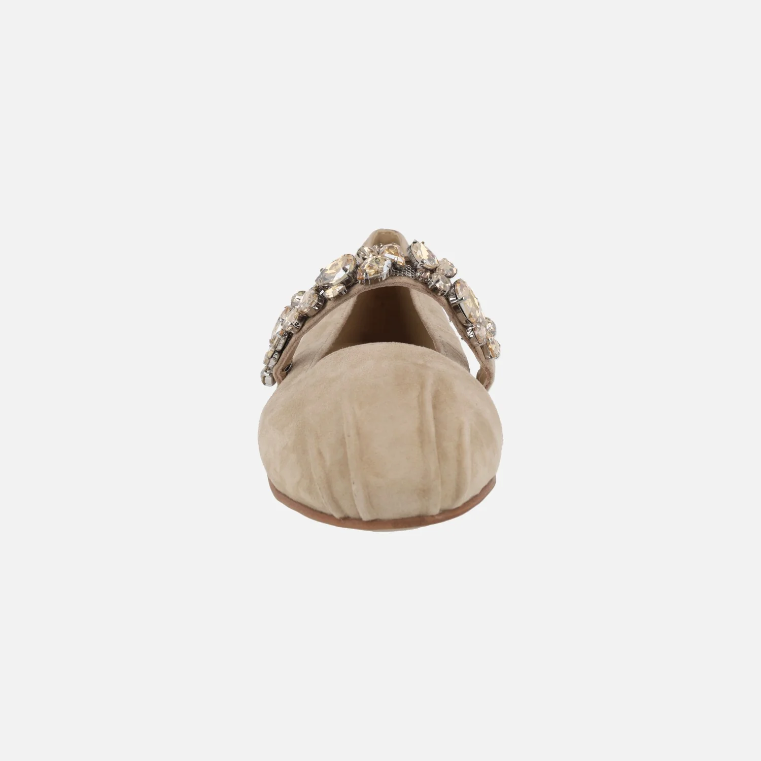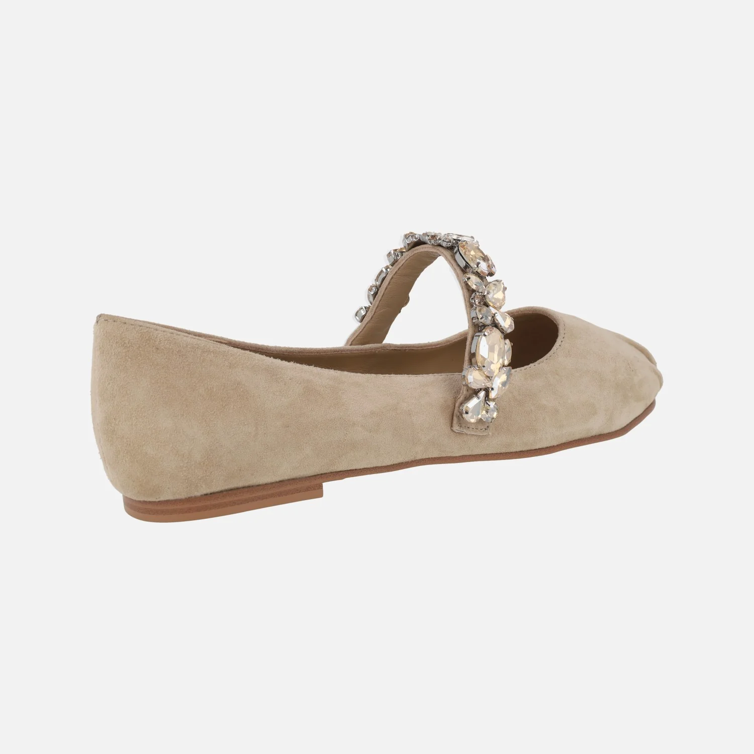 Enamorada de las nuevas bailarinas de Alma en Pena modelo V250531 Sand. Bailarinas elaboradas en ante color arena, con detalle de pulsera de pedrería al empeine, estilo Mary jane. Forro y planta de piel. Suela plana, sintética.