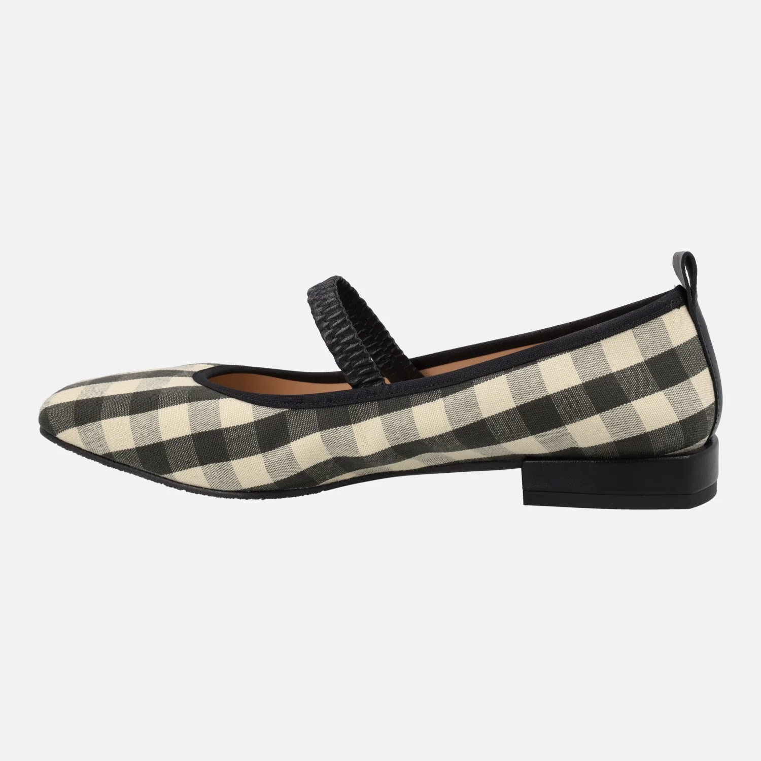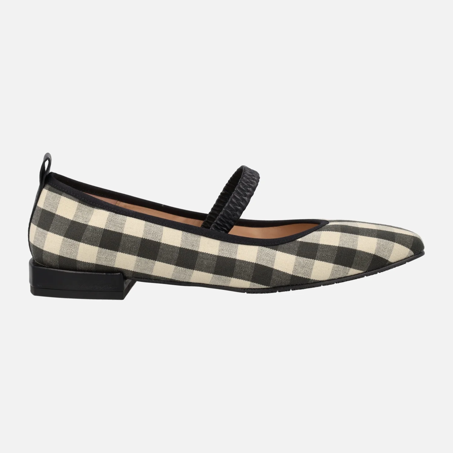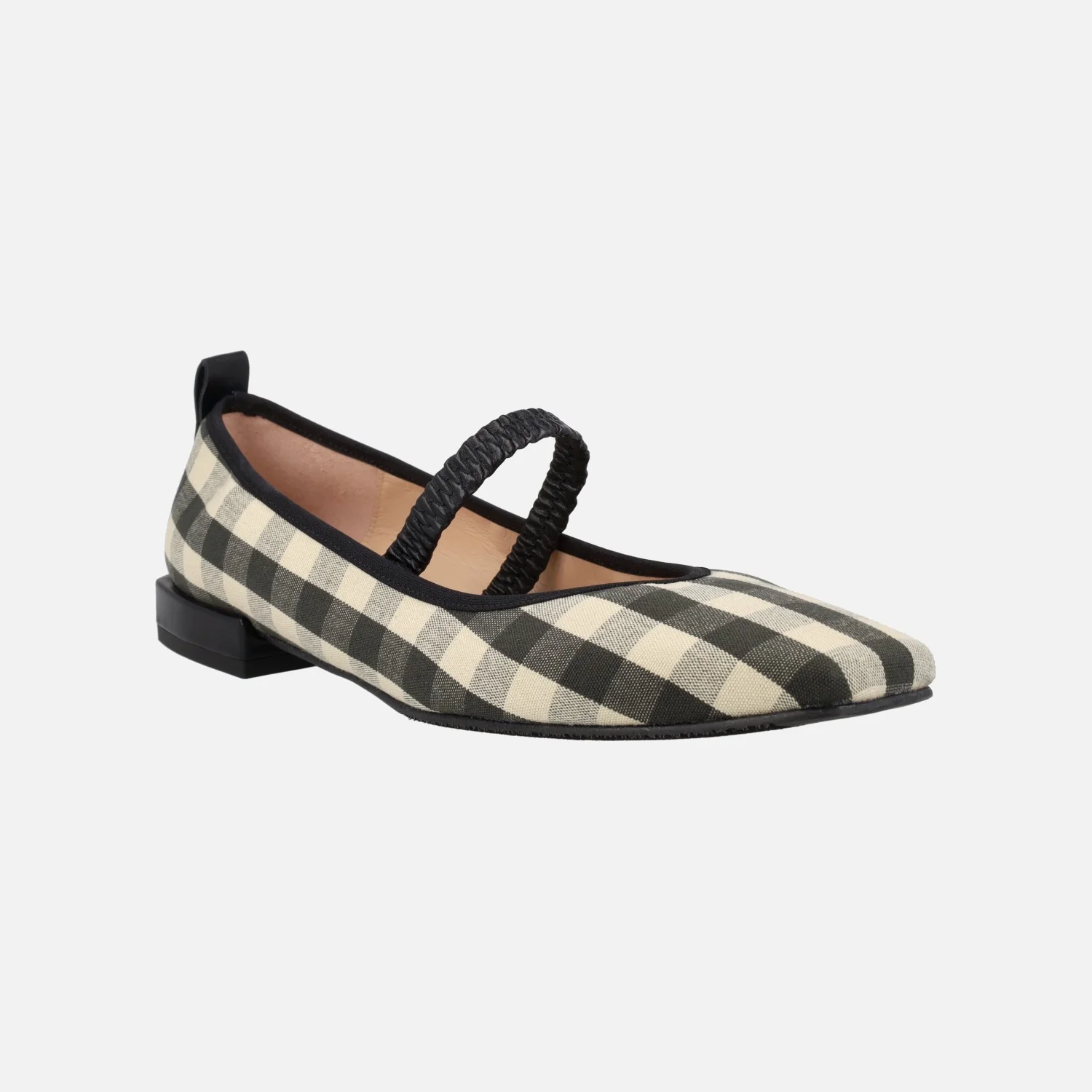 Bailarinas estilo mercedes de la marca Mirai modelo 3920 Negro. Bailarinas elaboradas en tejido a cuadros vichy, en negro y beige clarito. Tira elástica al empeine, estilo mary jane. Interiores forrados de piel. Piso sintético con tacones de 2 cm.