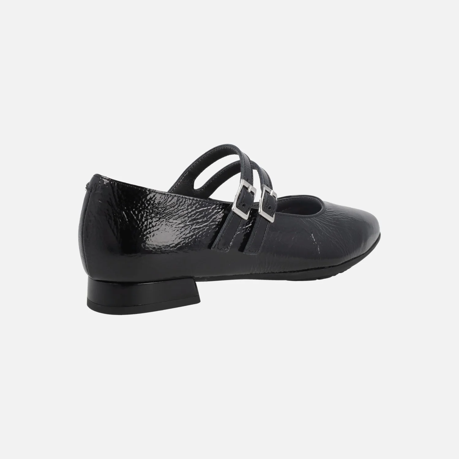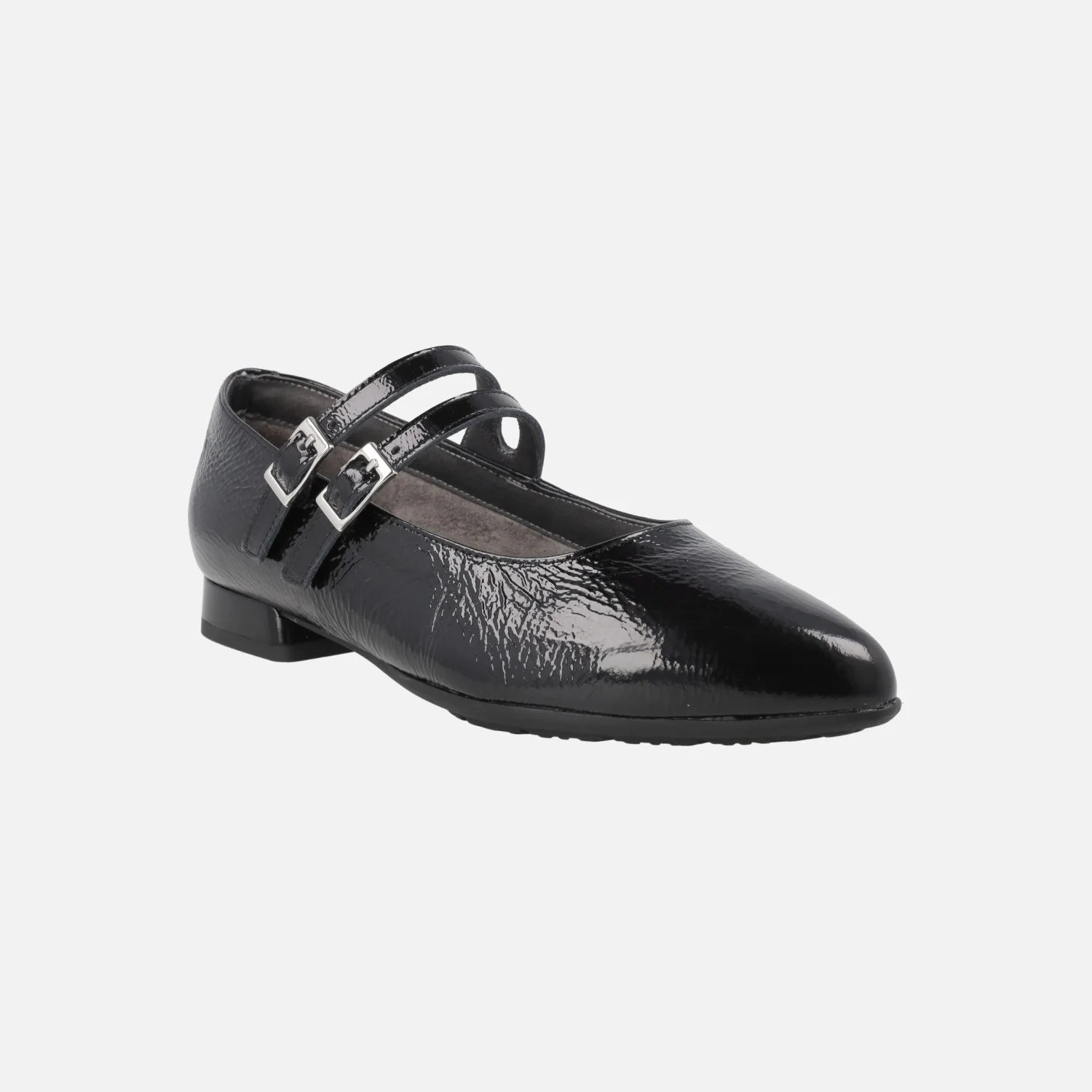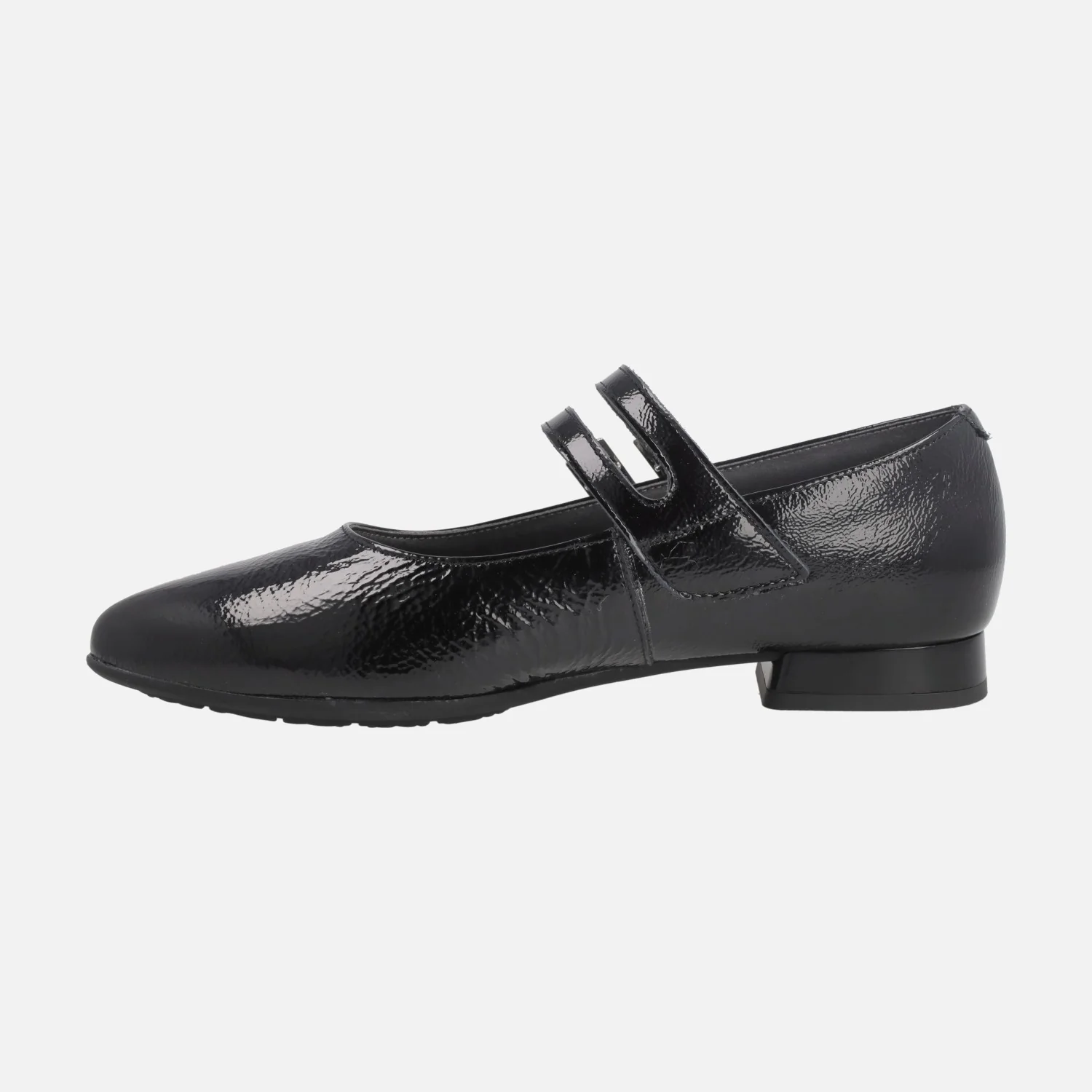 Bailarinas de charol negro marca Pitillos, modelo 10840 Negro. Bailarinas inspiración mercedes (mary jane) con dos pulseras que cruzan el empeine y cierran con hebilla. Exterior de piel, interior textil. Suela sintética con tacones de 2 cm.