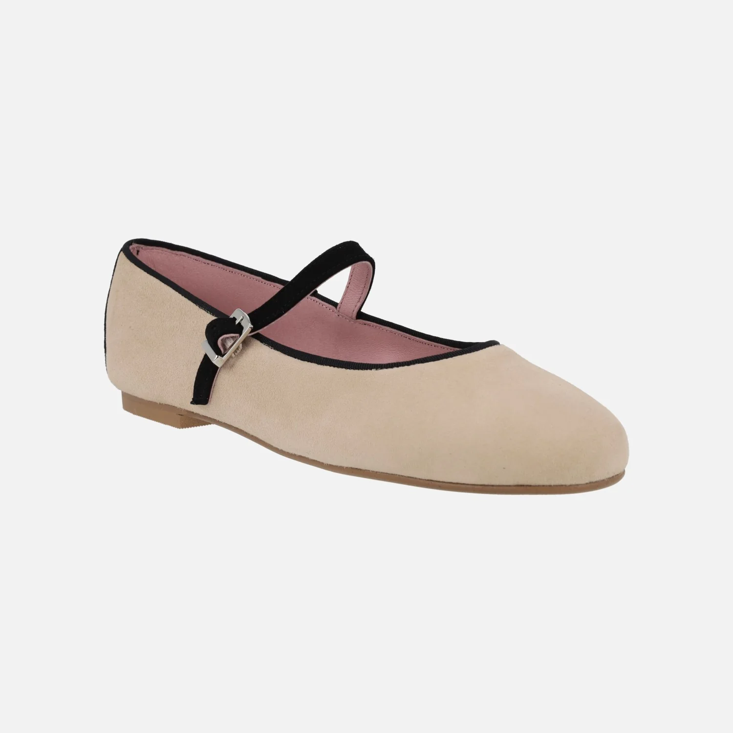 Bailarinas planas tipo merceditas en ante beige Eloin