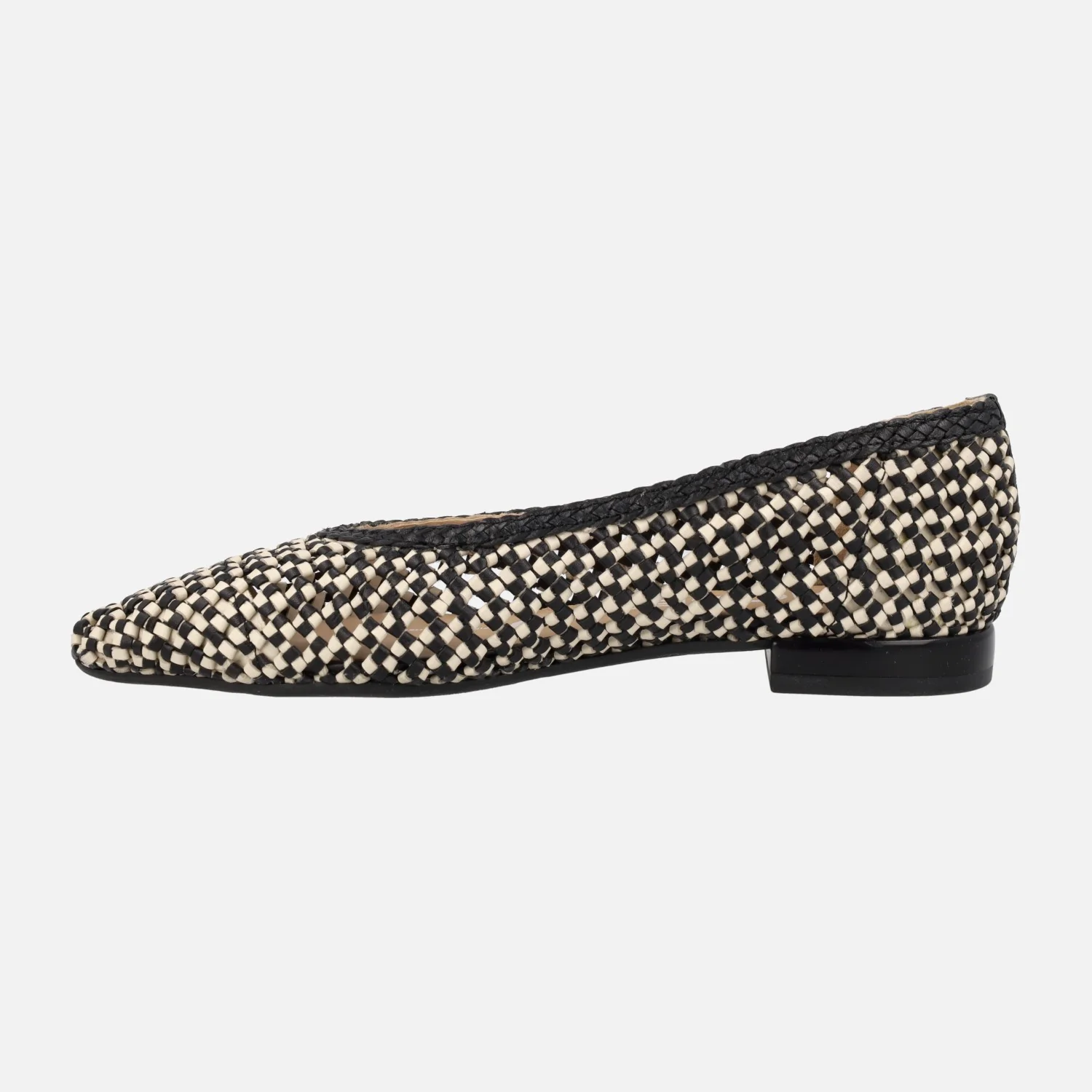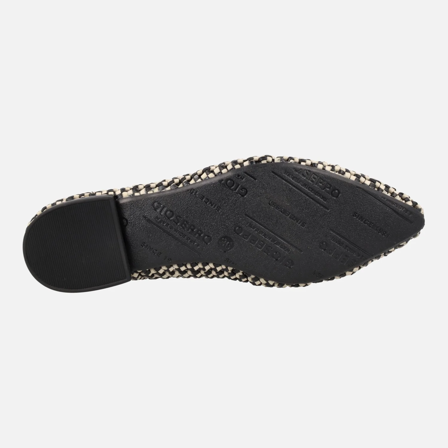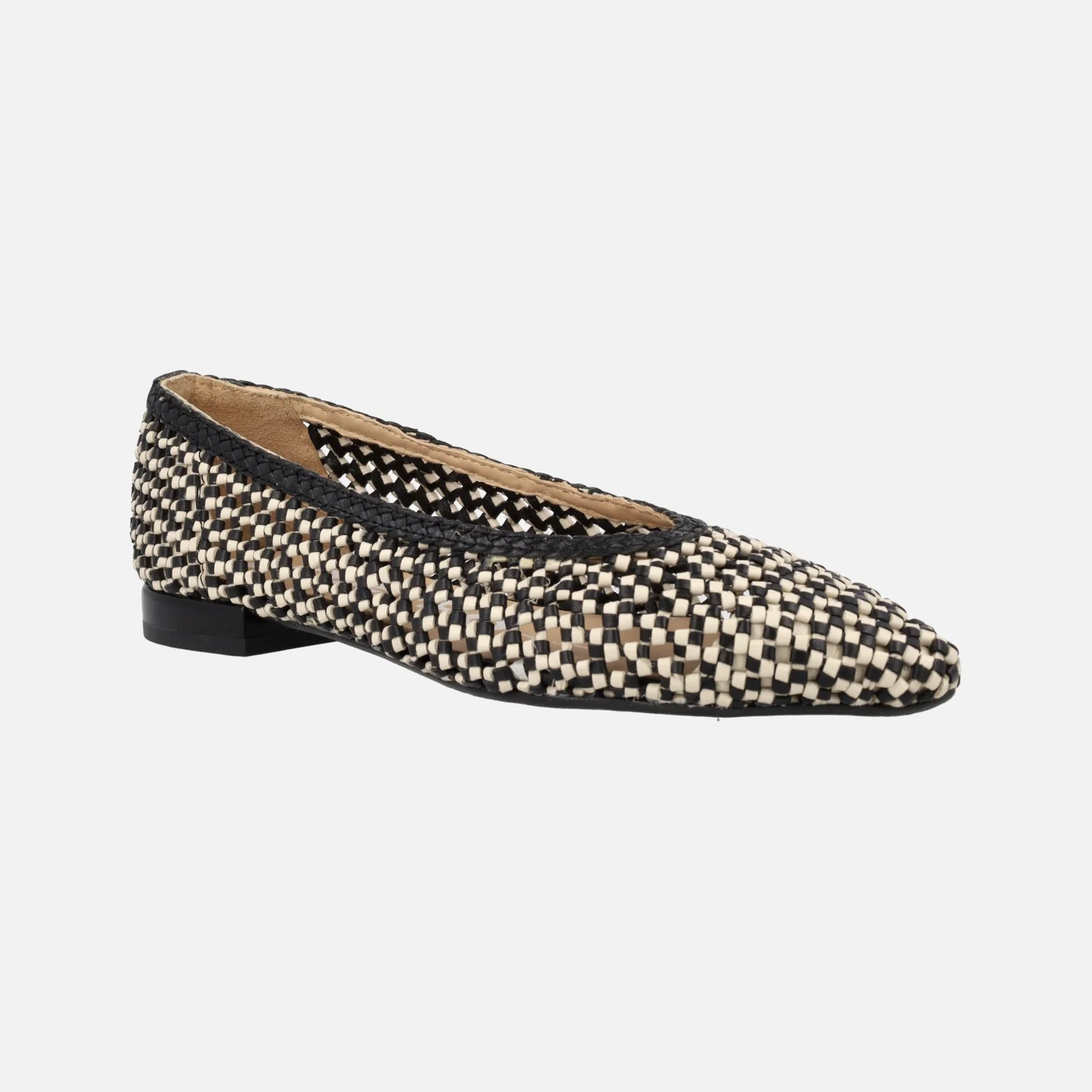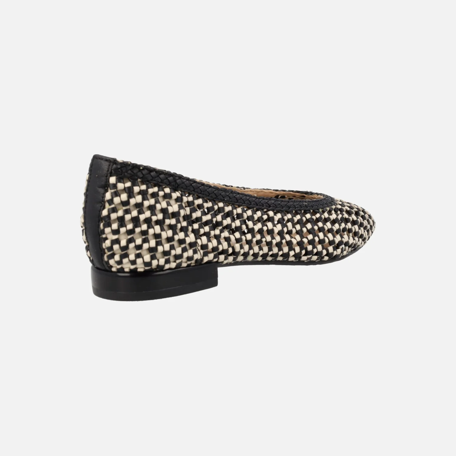 Bailarinas de piel trenzada bicolor de la marca Gioseppo modelo 71179 Atherton. Disponibles en negro con crudo y en oro con plata, bailarinas elaboradas en piel trenzada, con interiores de piel y piso flexible. Planas, de apenas 2 cms de tacón.