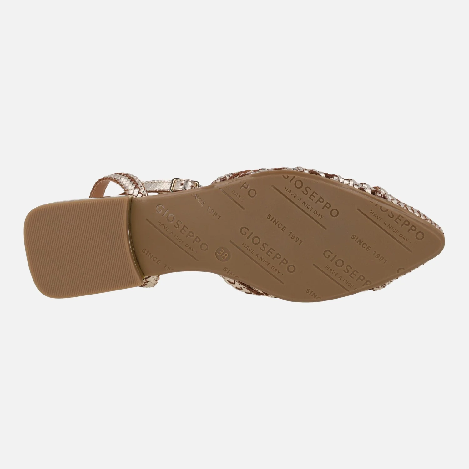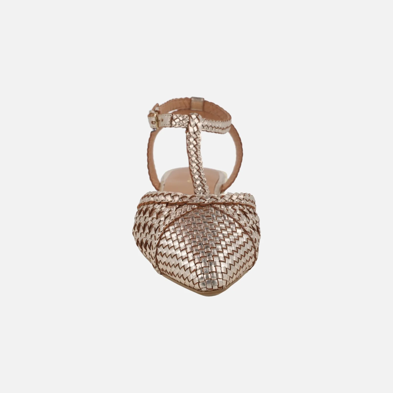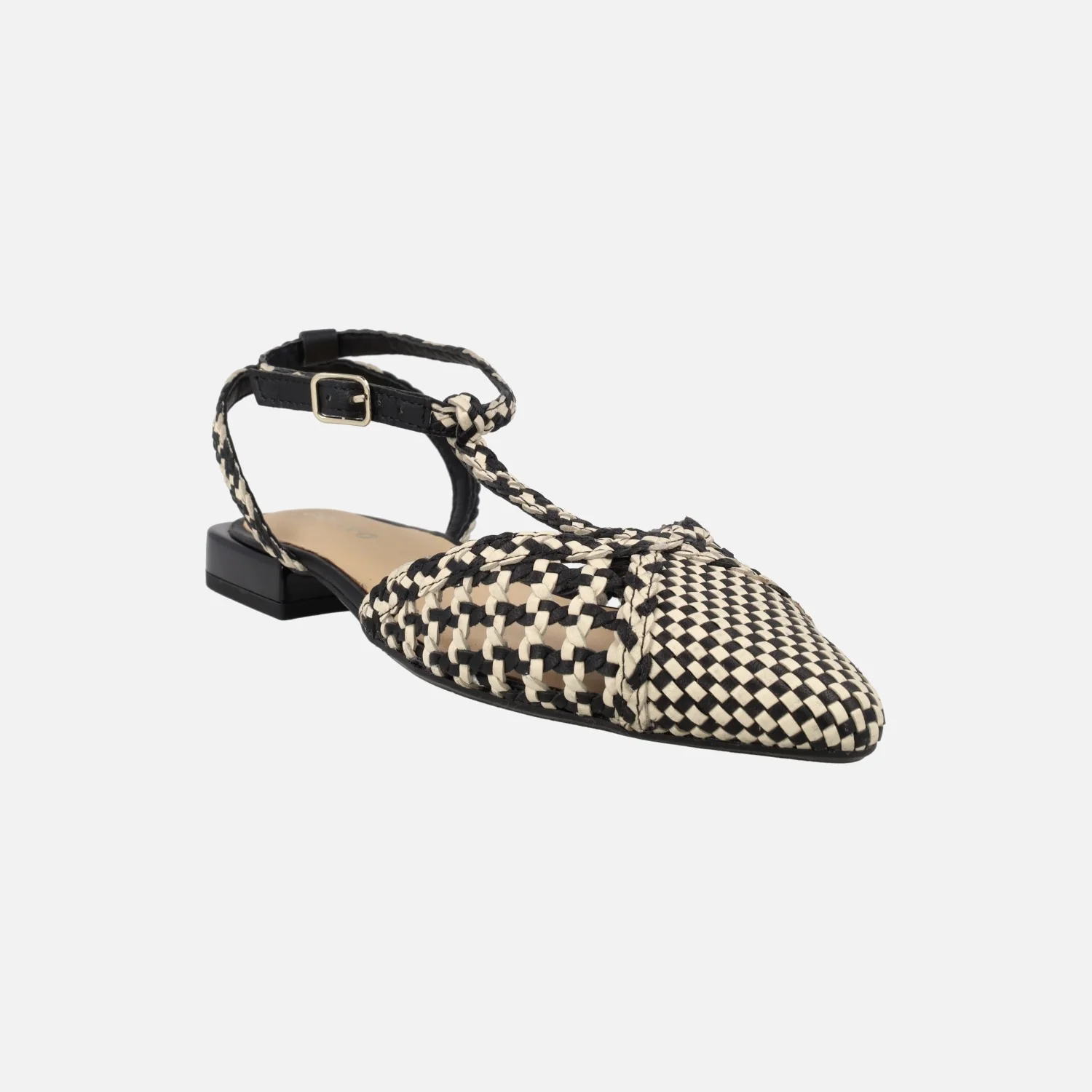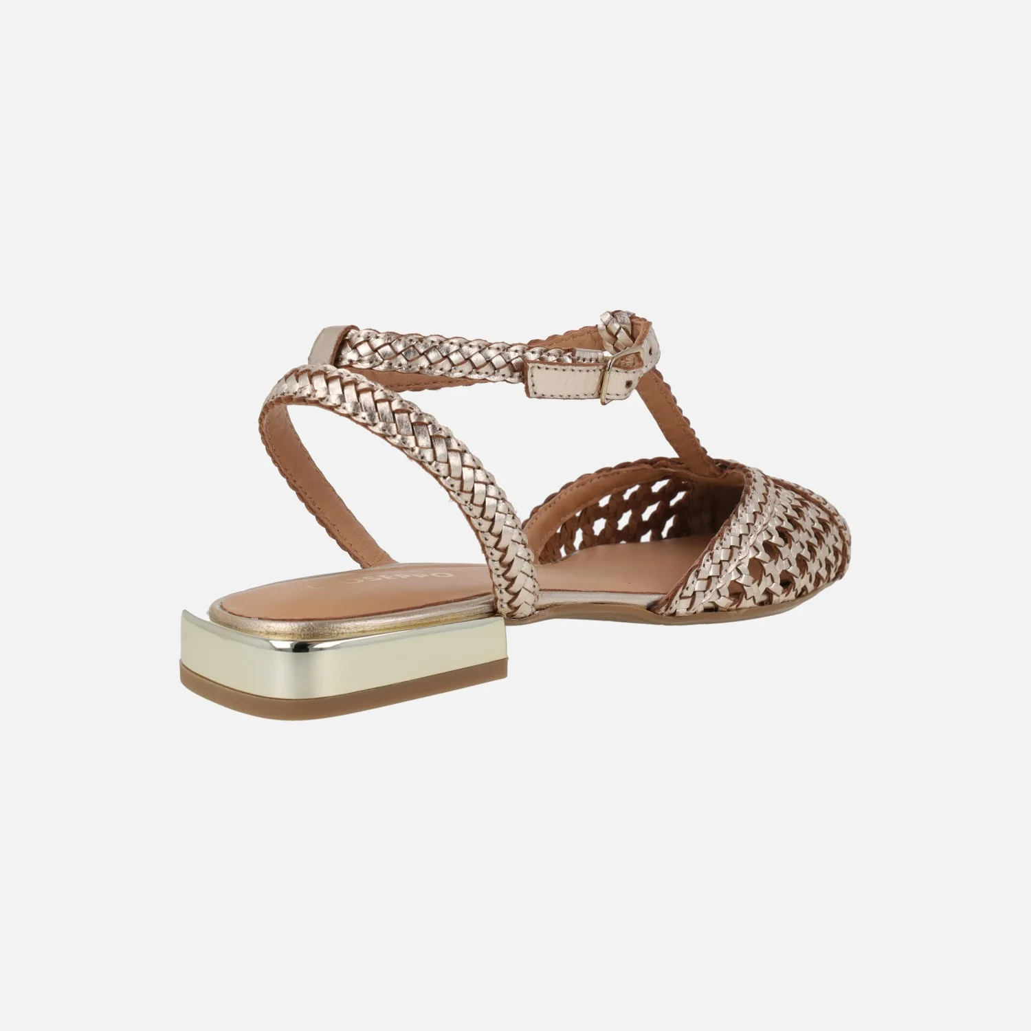 Preciosas bailarinas modelo Jhelum de la marca Gioseppo, 79237 disponibles en platinum (oro) y en black (negro con beige). Bailarinas trenzadas de piel, con puntera ligeramente afilada. Llevan una tira perpendicular al empeine y cierran al tobillo con una pulsera de hebilla ajustable. Forro y planta de piel. Suela sintética (TPR) con una altura de tacón de apenas 2 cm de altura.