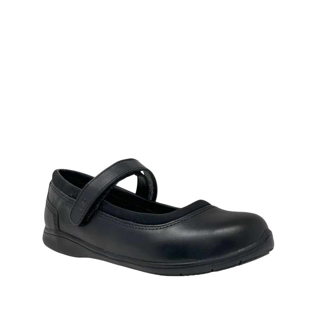 Ballerinas escolares Ileana 2 para niña en color negro con plantilla Bounce™ de alta memoria. Aportan confort constante y durabilidad superior.