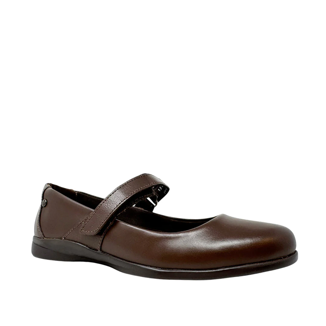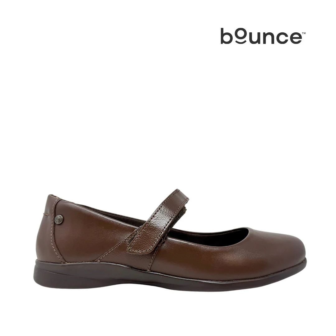 Ballerinas escolares Nicolette para mujer color café con tecnología Bounce™: plantilla extraíble de alta memoria que absorbe impactos, devuelve energía y mantiene su forma para comodidad duradera.