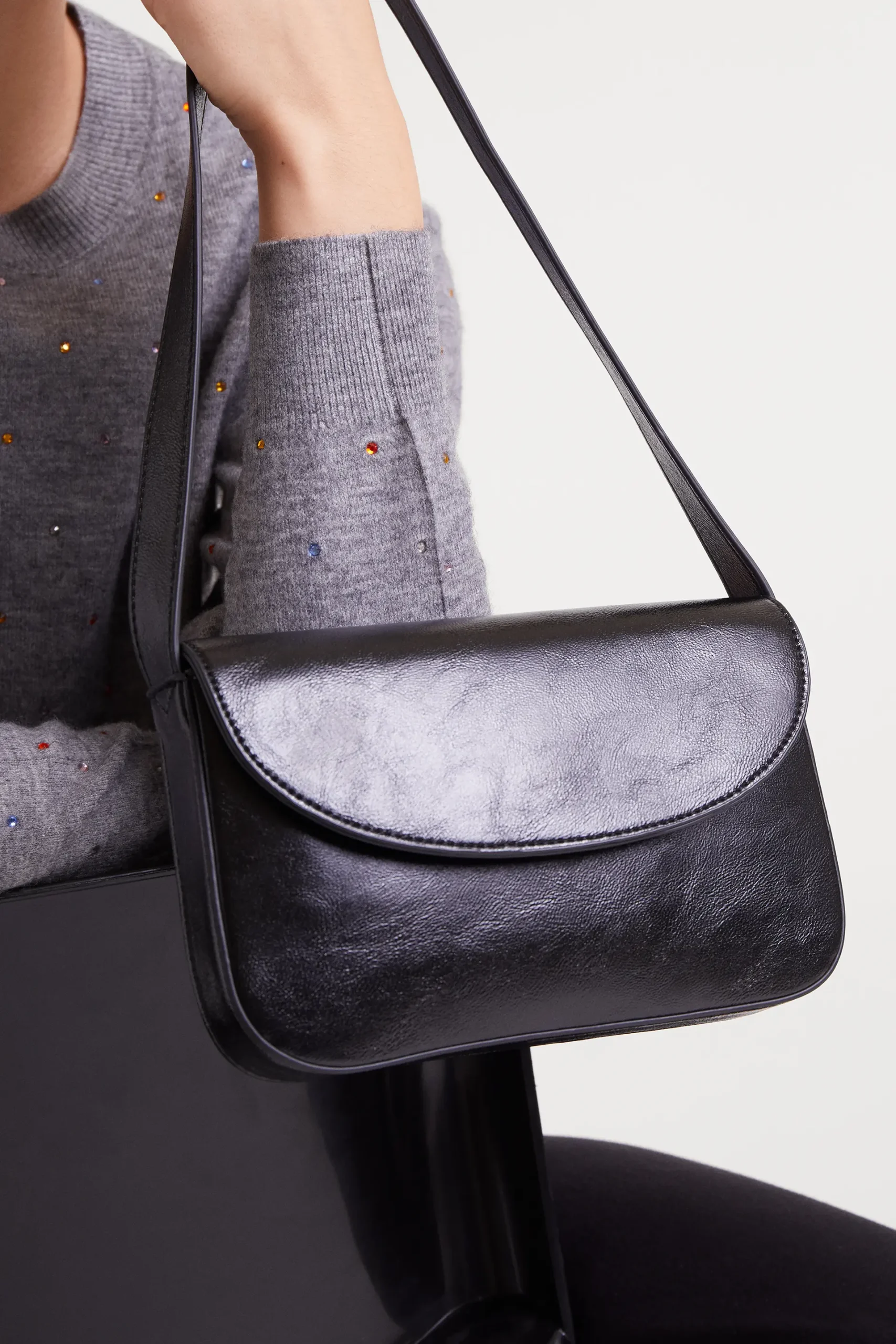 Bolso de hombro con tejido de piel sintética color negro. Cierre mediante solapa con imán. Asa corta. Forro interior.