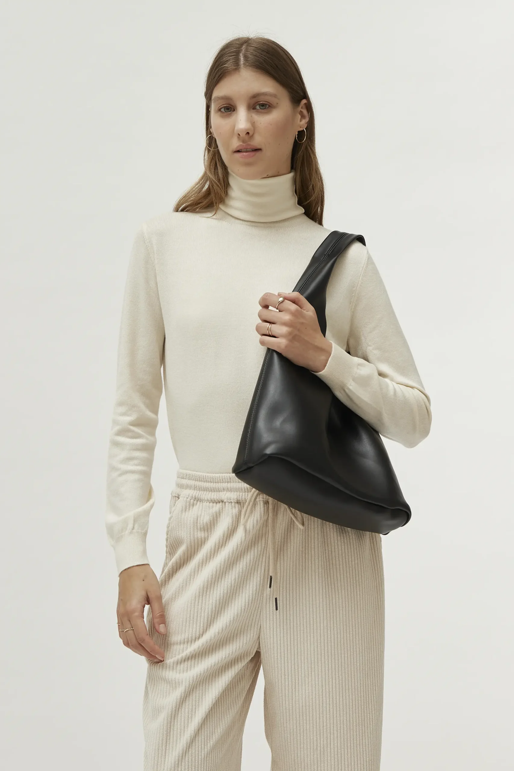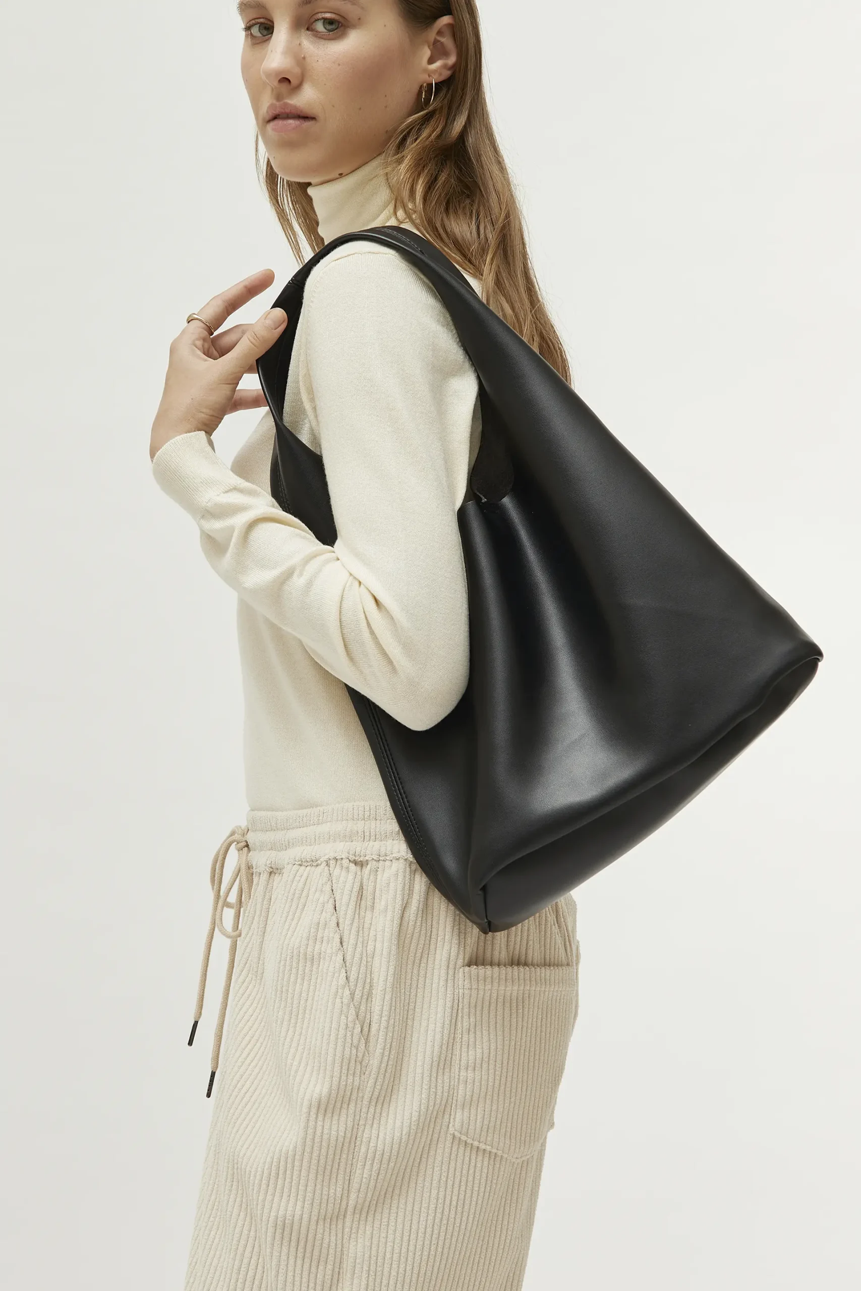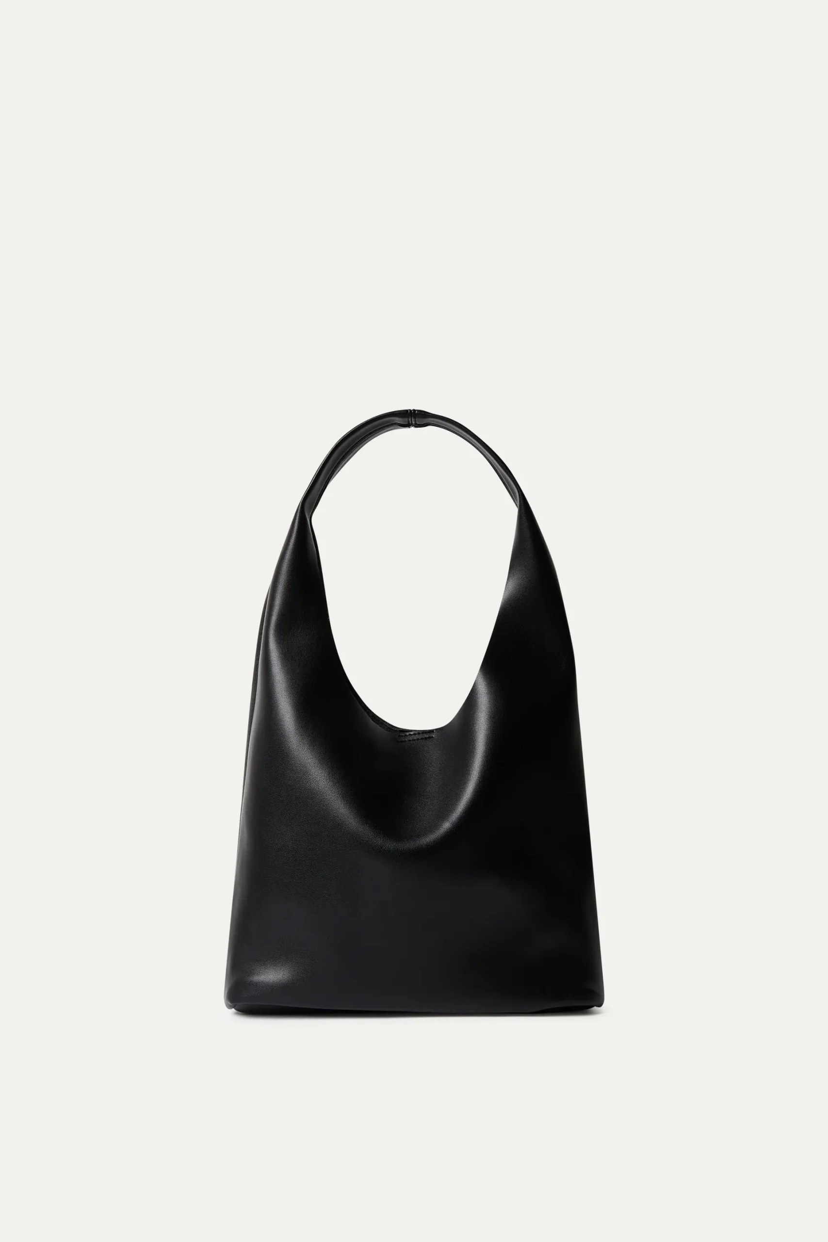Bolso shopper de piel sintética de color negro. Asa corta para el hombro.