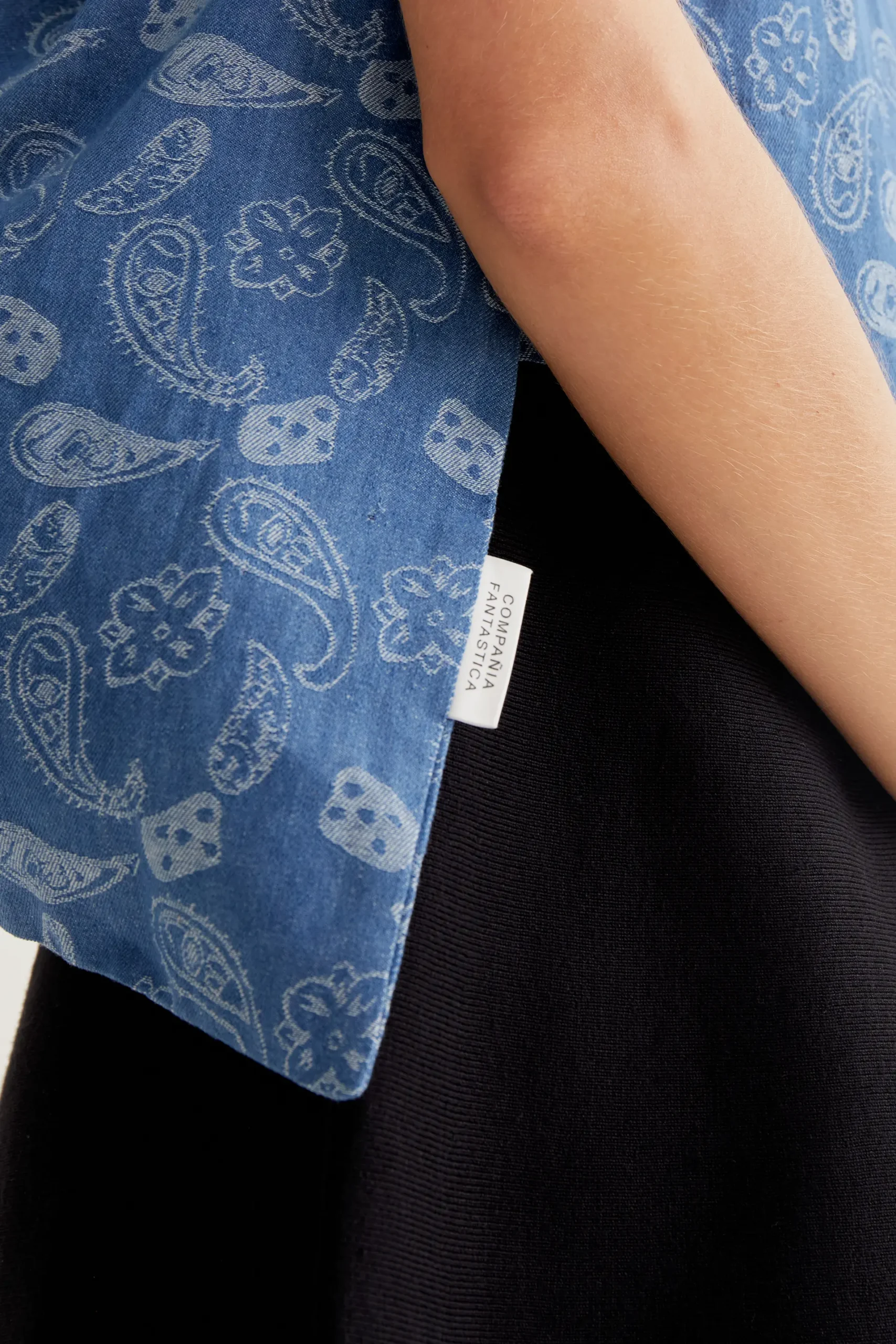 Bolso de tejido 100% algodón con estampado vaquero paisley. Asa corta. Forro interior.