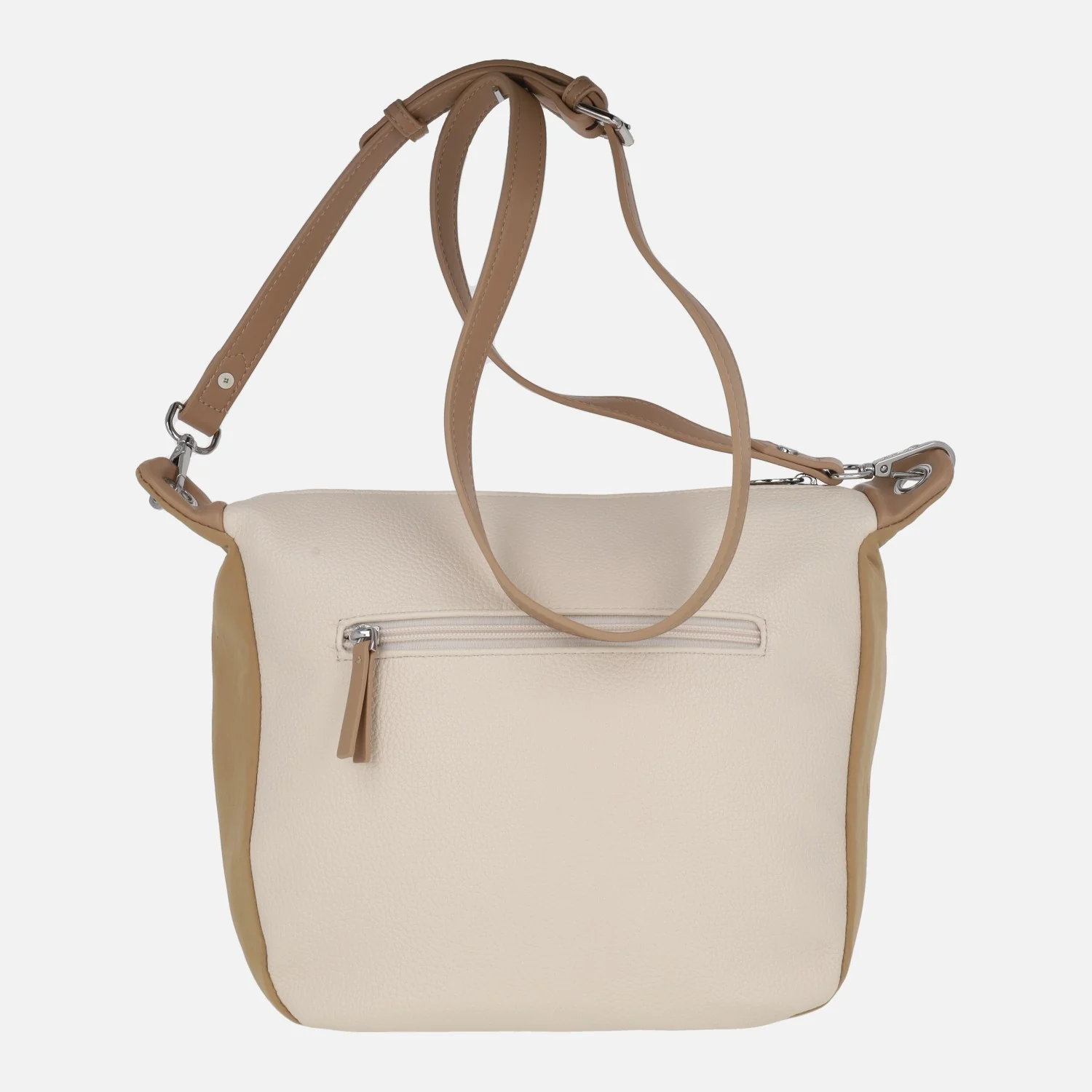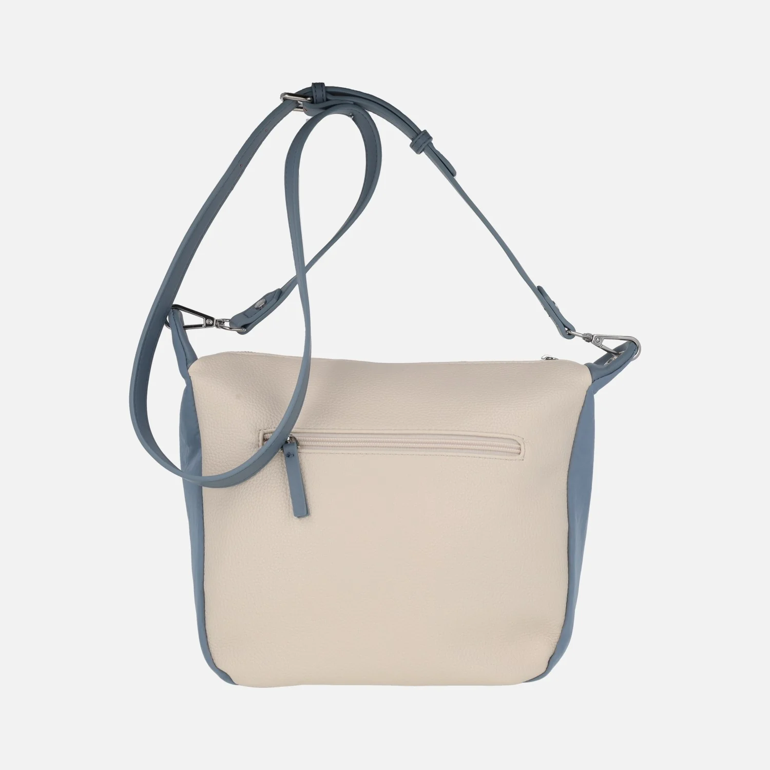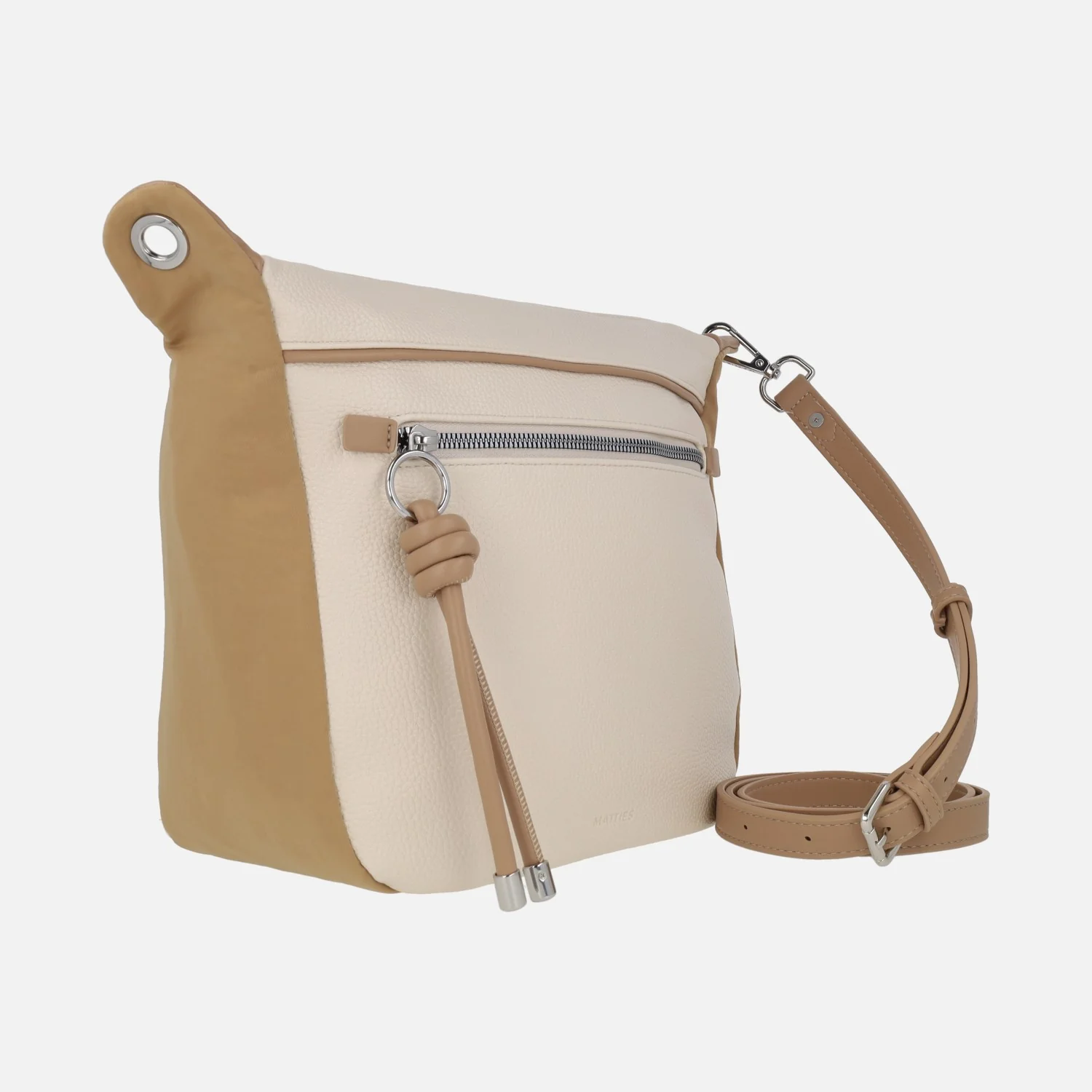 Bolsos bandolera Matties 20903 Enix. Bolsos elaborados en materiales sintéticos (polipiel) con acabado efecto piel. Bolsos bicolor, en beige combinado con azul o con camel. Bolsillos delantero y trasero con cremallera. Compartimento principal con cierre de cremallera. Interior textil con bolsillos, uno de ellos con cremallera. Asa extraíble y ajustable hasta 65 cm máximo al hombro. Medidas: 26 cm de alto x 26 cm de ancho inferior x 29 cm ancho superior x 14 cm de fondo.