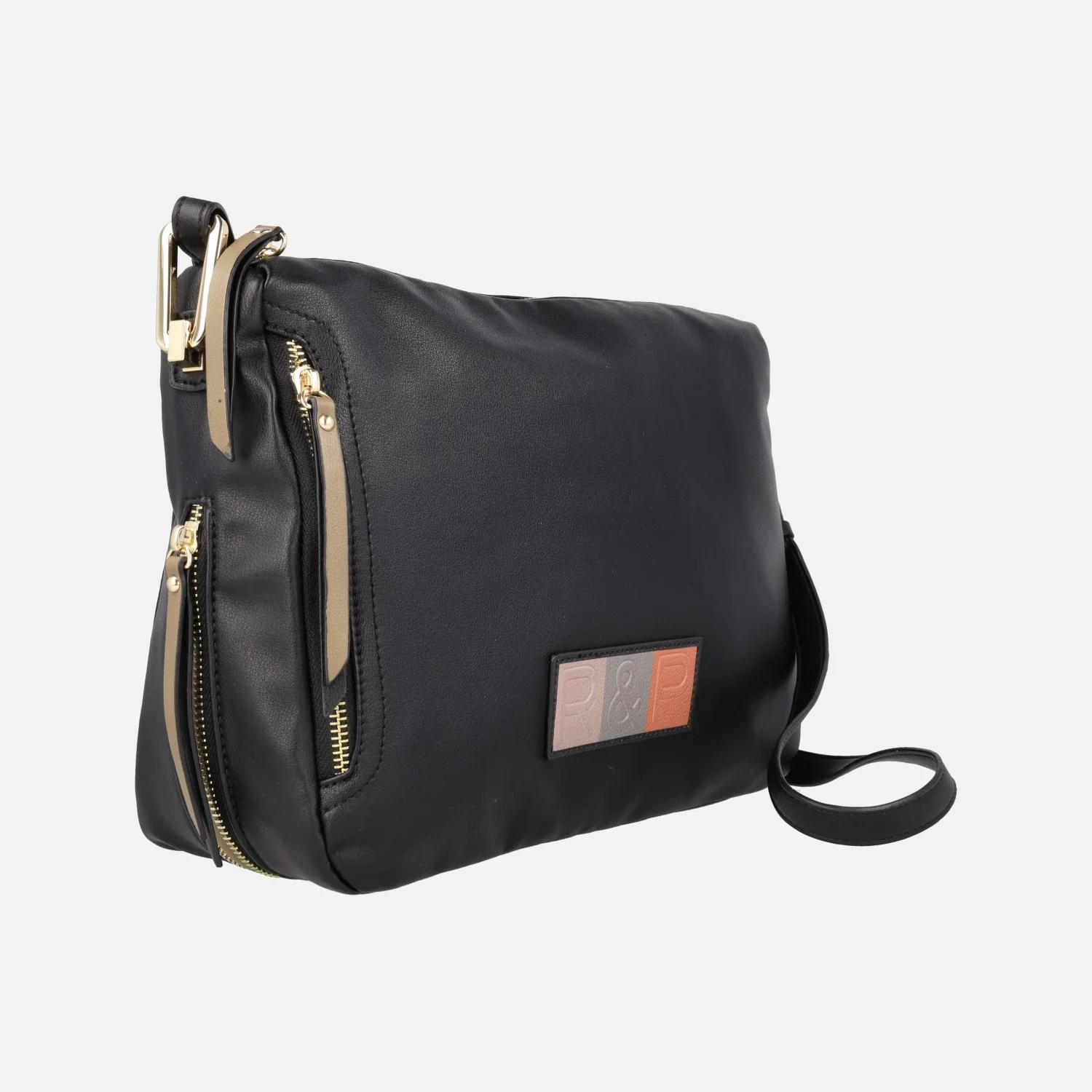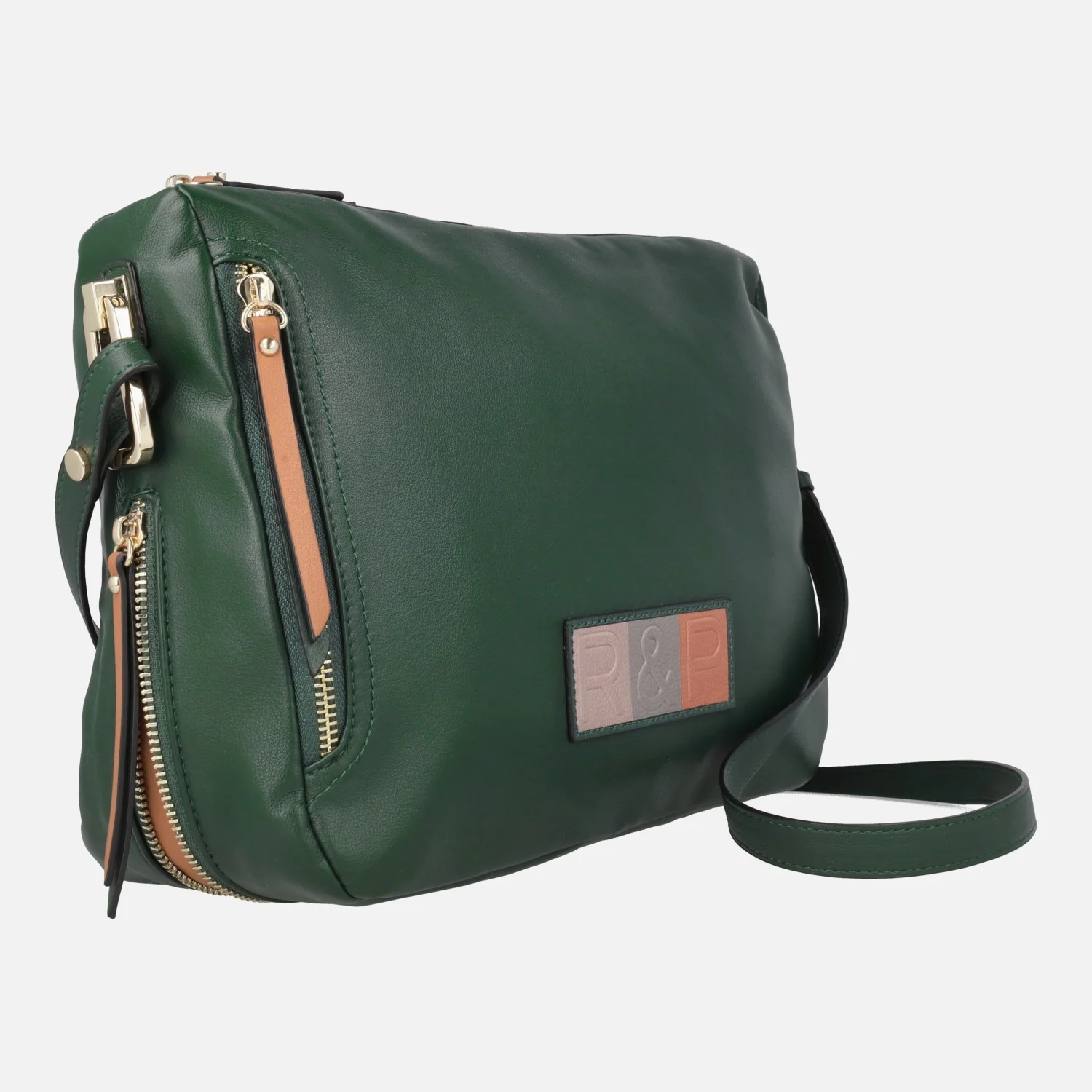 Bolsos bandolera para mujer de la marca Robert Pietri, línea Laurel modelo 05247, disponibles en negro, verde y cuero (marrón). Bolsos elaborados en piel vegana (sintéticos) con cierre principal de cremallera. Bolsillos trasero y lateral delantero también con cremallera. Logo tricolor Robert Pietri en el frontal. Cuenta con una cremallera en la parte inferior del bolso para hacerlo un poco más amplio. Asa de bandolera regulable a un máximo de 53 cms al hombro. Interior textil con bolsillos. Medidas aproximadas: 23 cms de alto x 32 cms de ancho x 9 cms de fondo.