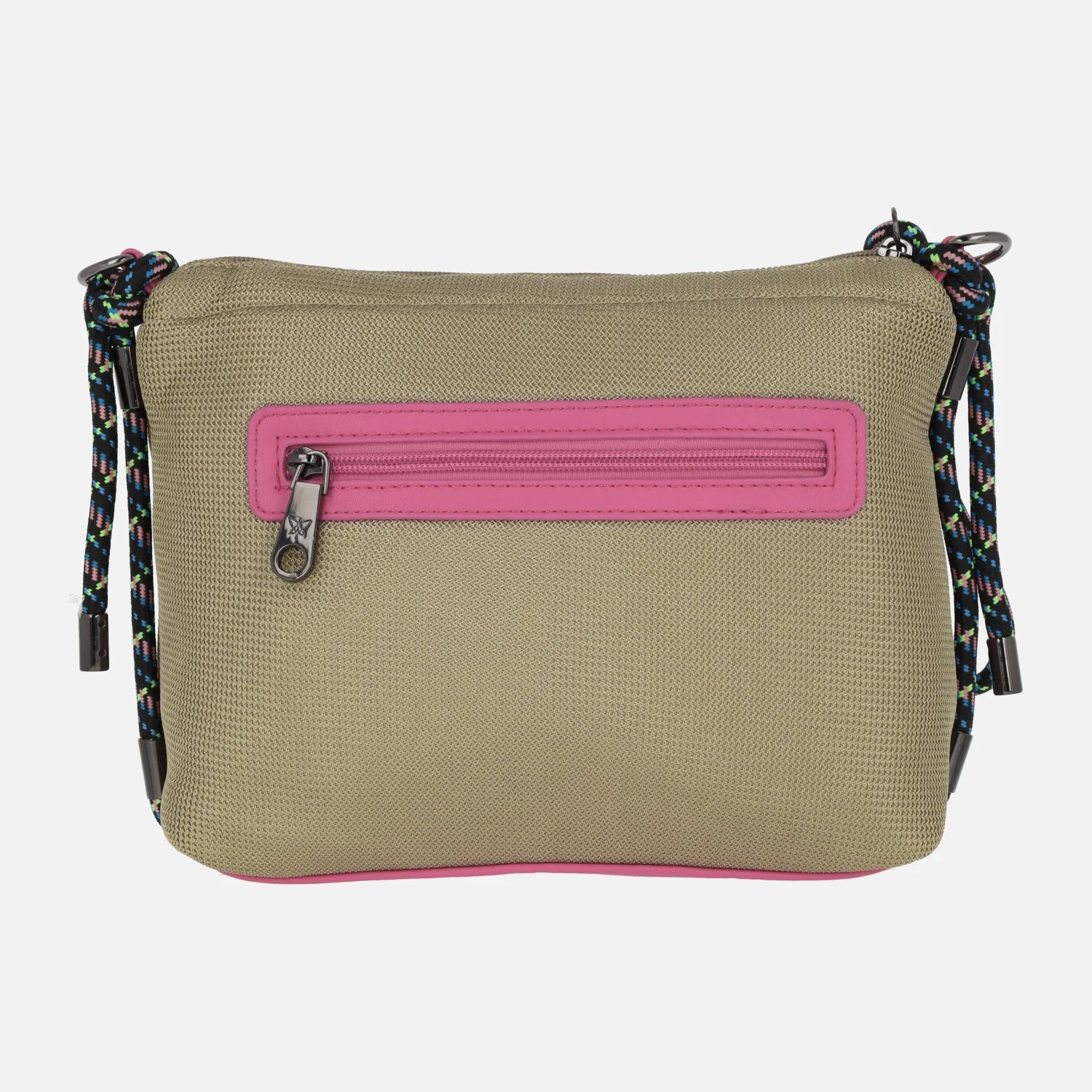 Nos encantan los nuevos bolsos bandolera de Pepe Moll modelo 241232, disponibles en mesh silver y en mesh golden. Bolsos elaborados en tejido poliéster, disponibles en acabado rejilla plata, con letras logo Pepe moll destacadas en amarillo y detalles en verde agua, o en acabado rejilla dorado, con letras blancas y detalles en fucsia. Asa bandolera regulable. Detalles en cuerda. Cierre principal de cremallera. Bolsillo trasero también con cremallera. Interior textil con bolsillos. Medidas aproximadas: 21 cms de alto x 26 cms de ancho x 8 cms de fondo.