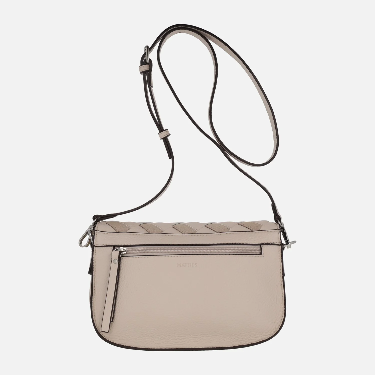 Bolsos bandolera de la marca Matties modelo 20943, disponibles en negro y en beige. Bolsos elaborados en materiales sintéticos (polipiel) con un compartimento principal que cierra con cremallera y además tapa con broche imantado. Interior textil con bolsillos, uno de ellos con cremallera. Bolsillo trasero con cremallera. Asa extraíble y ajustable para llevar de bandolera, con una altura máxima al hombro de 62 cm. Medidas: 18 cm de alto x 25 cm de ancho x 8,5 cm de fondo.