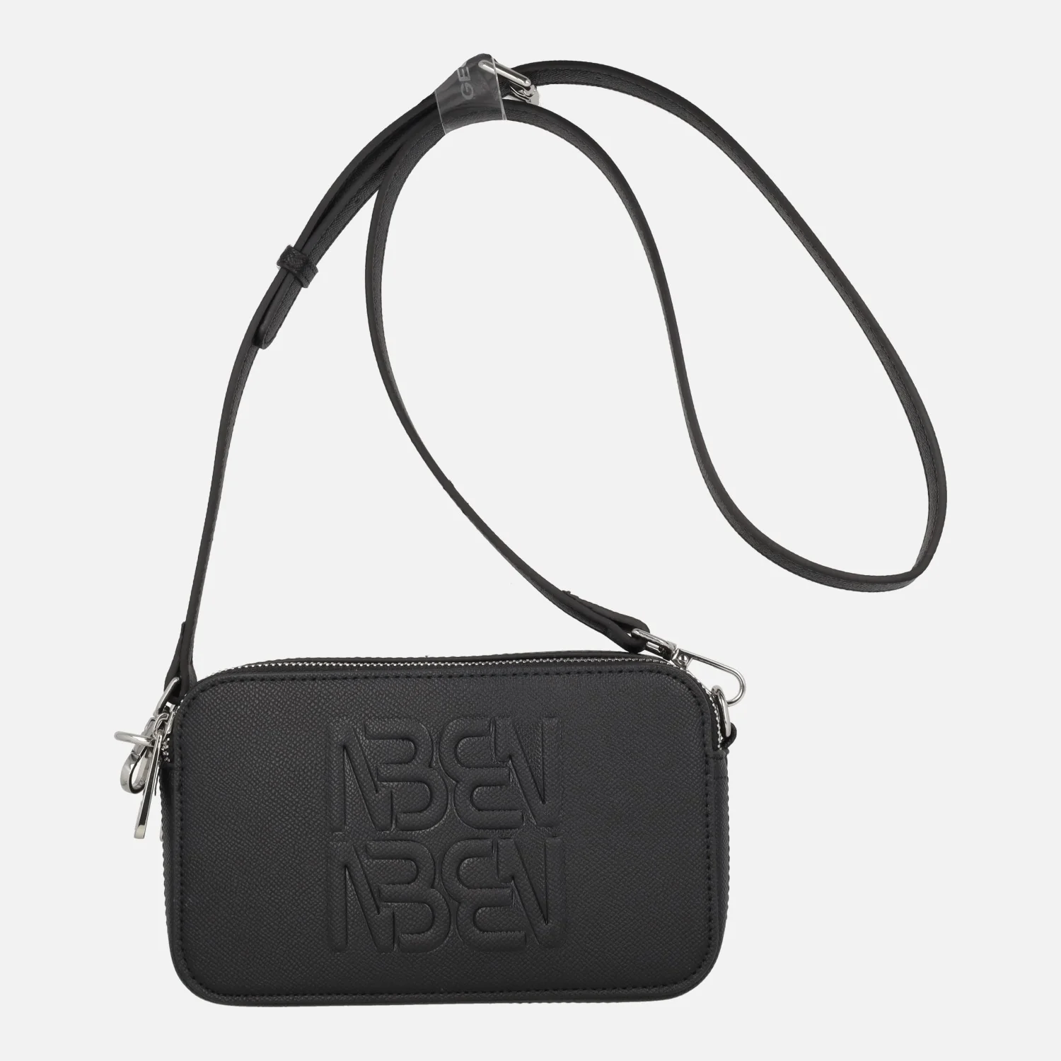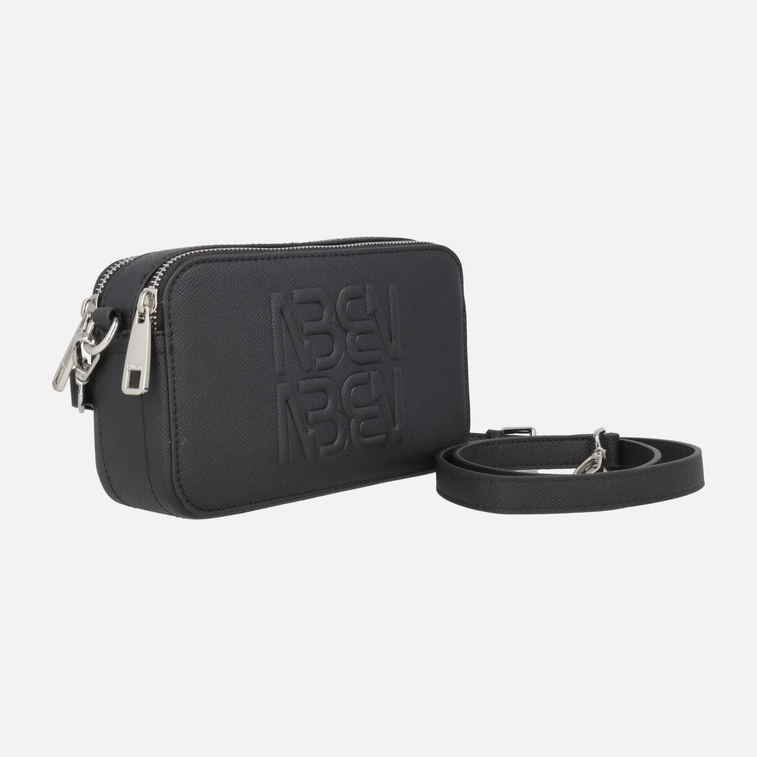 Bolsos bandolera Binnari Manzanares 20532, disponibles en negro y en off (hielo). Bolsos elaborados en materiales sintéticos, formados por dos compartimentos independientes con cierre de cremallera. Bolsillo trasero. Iniciales de la marca grabadas en relieve en el frontal. Interior textil con bolsillos. Asa bandolera ajustable entre 46 y 56 cm de altura al hombro. Medidas: 12 cm de alto x 20 cm de ancho x 7 cm de fondo.