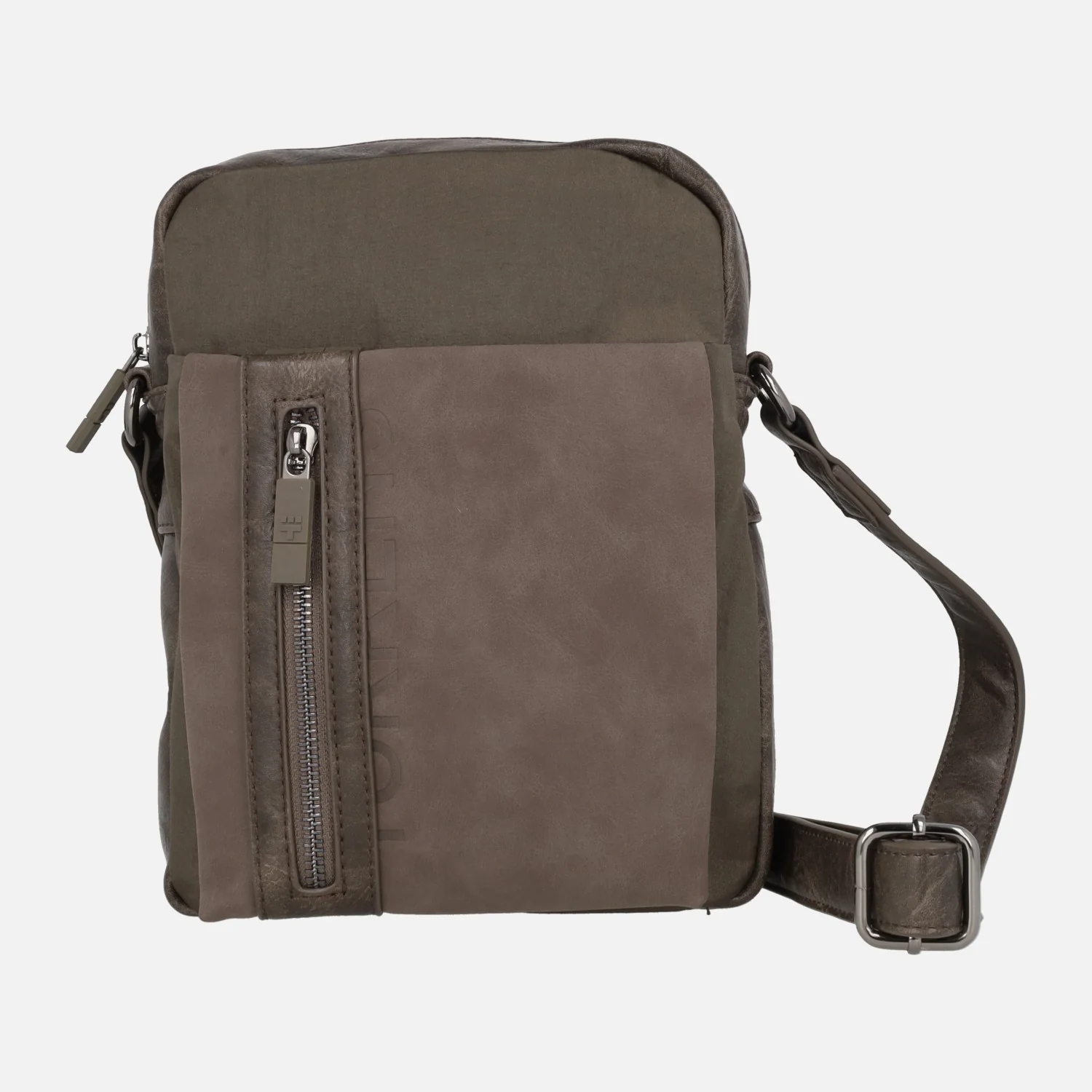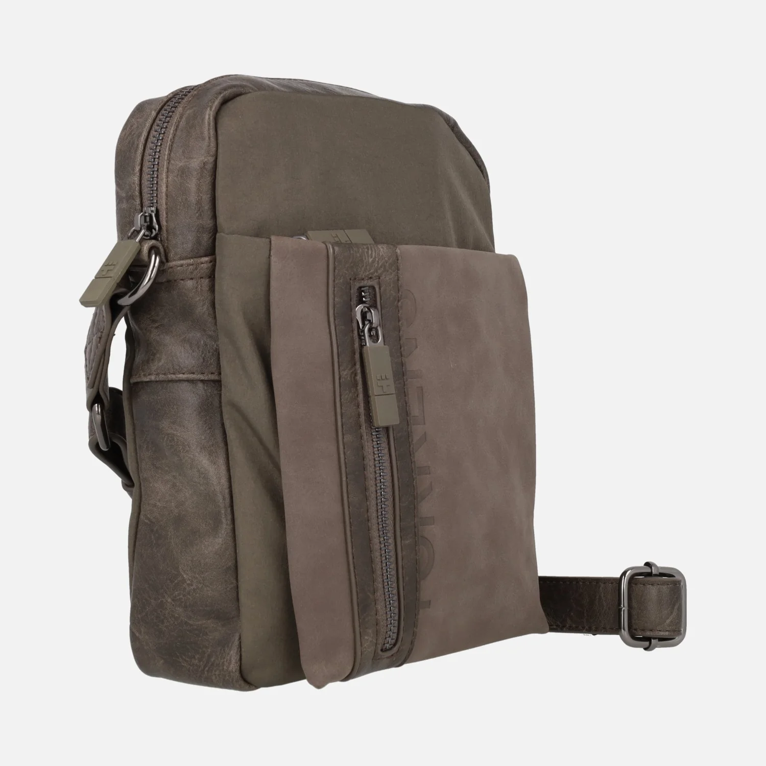 Bolsos bandolera para hombre de la marca Torrens, modelo 67827. Bolso sport fabricado en Polipiel y Nylon al tono. Presenta un bolsillo delantero superpuesto con cremallera en vertical en un material que imita al Nobuck y otro en la parte trasera en horizontal. El interior es en tejido con varios bolsillos. Medidas: 24 cms. Alto X 20 cms. Ancho X 7 cms. Fondo. Disponible en Negro y Kaki. Bolso juvenil y que permite llevar todo ordenado.