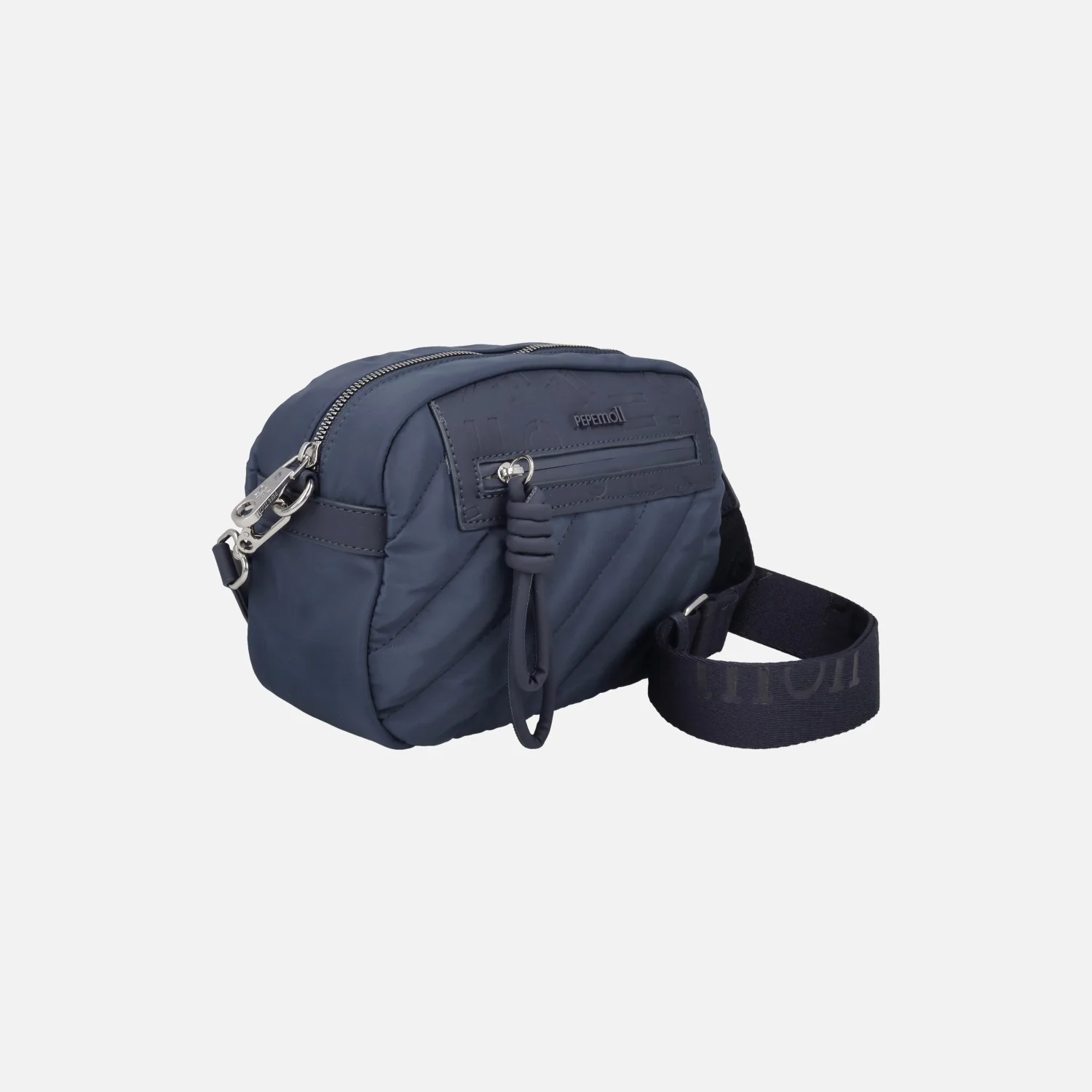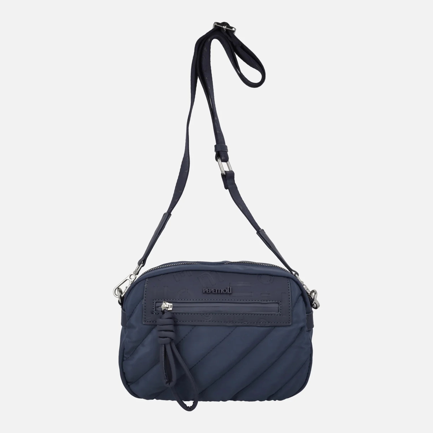 Bolsos bandolera para mujer de la marca Pepe moll modelo 261103 disponibles en Monika sand (beige) o navy (azul marino). Bolsos elaborados en tejido acolchado y sintéticos, con cierre principal de cremallera. Materiales veganos. Bolsillos delantero y trasero con cremallera. Interior textil con bolsillos, uno con cremallera. Asa bandolera ajustable con hebilla. Medidas: 17,5 cm de alto x 25 cm de ancho x 10,5 cm de fondo.