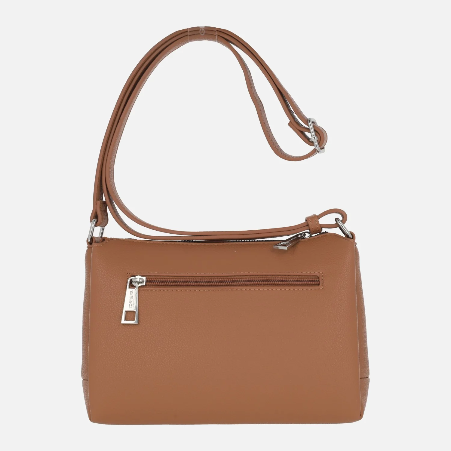 Bolsos bandolera de corte clásico para mujer modelo 96207 de la marca Torrens, disponibles en marrón cuero o en negro. Bolsos elaborados en materiales sintéticos, efecto piel. Cierre central con cremallera, interior en tejido poliéster con tres compartimentos. Bolsillo trasero con cremallera. Asa bandolera ajustable entre 35 y 71 cm al hombro. Medidas: 18 cm de alto x 22 cm de ancho x 8 cm de fondo