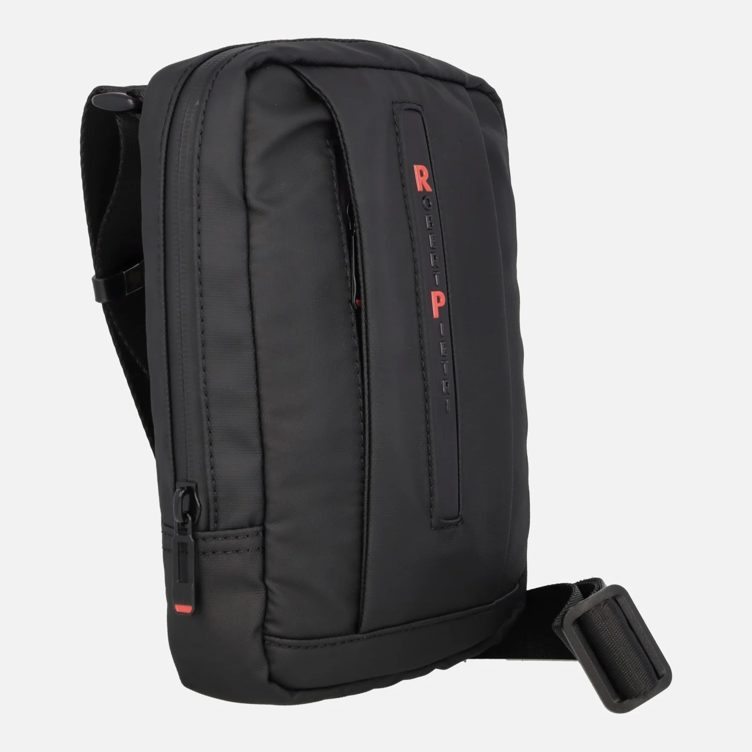 Bolsos bandolera unisex de la marca Robert Pietri, modelo Urban back 03028 Negro. Bolsos elaborados en tejido técnico y PU, en color negro, con cierre de cremallera. Bolsillo delantero también con cremallera. Logo Robert Pietri en la parte frontal. Interior textil. Asa bandolera regulable entre 33 y 64 cms de altura al hombro. Medidas aproximadas: 24 cms de alto x 17 cms de ancho x 5 cms de fondo.