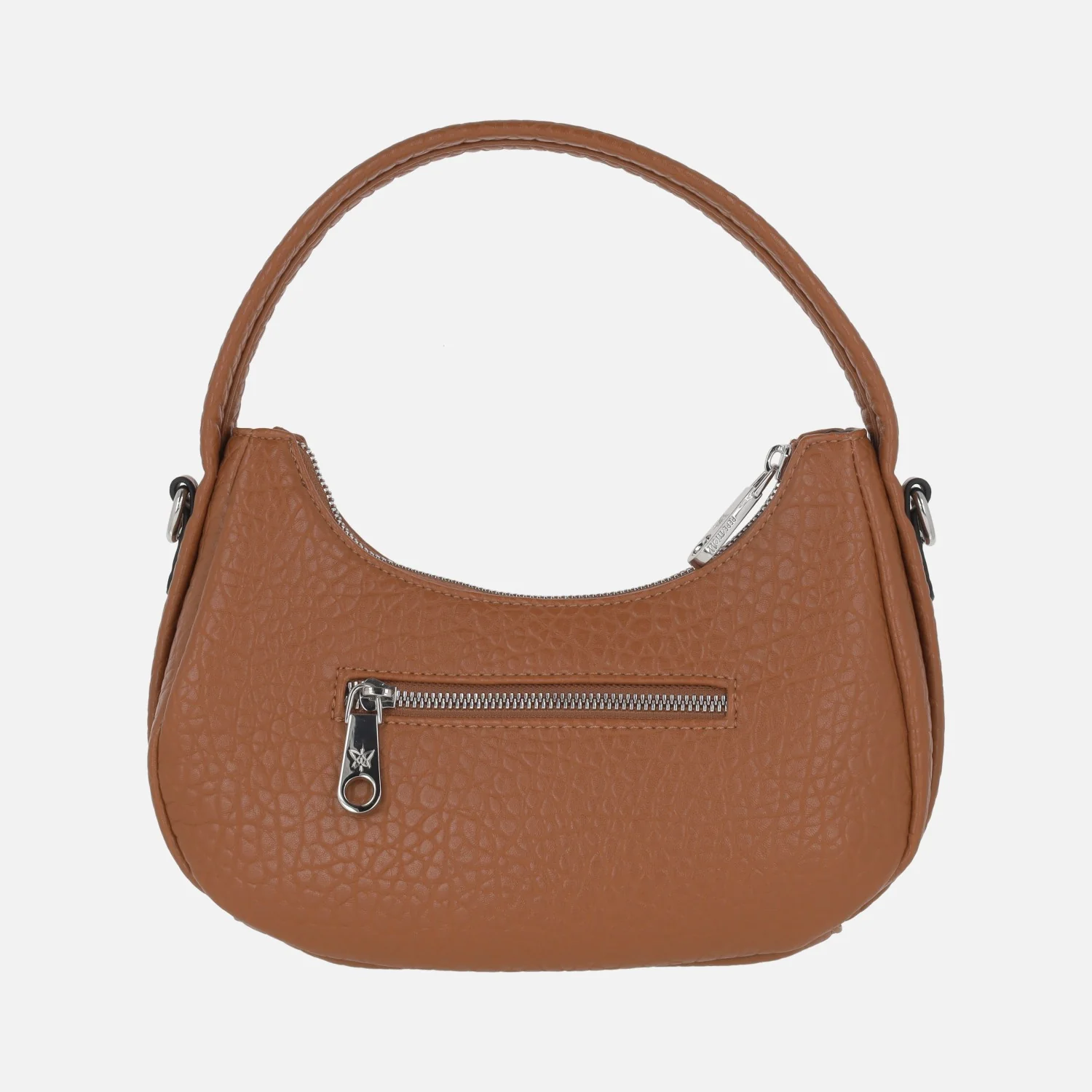 Bolsos estilo hobo, con forma de media luna, de la marca Pepe moll, modelo 252293 Tan. Bolsos elaborados en materiales sintéticos, con un asa corta para llevar de mano (de 16 cm) y una más larga ajustable para llevar de bandolera. Cierre principal con cremallera. Bolsillo trasero también con cremallera. Interior textil con bolsillos. Bolsos elaborados con materiales veganos. Color cuero. Medidas: 17 cm de alto en los laterales x 13 cm de altura en la parte central. 24,5 cm de ancho y 9 cm de fondo.