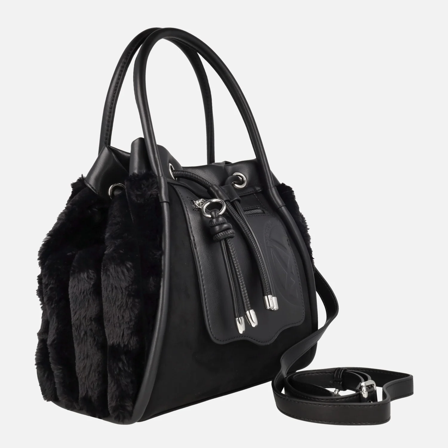 Preciosos bolsos nueva colección Pepe moll modelo 252402, disponibles en off (crudo), coffe (marrón) y black (negro). Bolsos con exterior sintético, efecto piel, y laterales en pelo suave. Bolsillos delantero y trasero con cierre de cremallera. Cierre principal con broche imantado y tiras ajustables. Interior textil con dos bolsillos, uno de ellos con cremallera. Dos asas para llevar al hombro y además un asa bandolera ajustable con hebilla. Medidas: 26 cm de alto x 23 cm de ancho superior x 28 cm de ancho inferior x 11,5 cm de fondo.