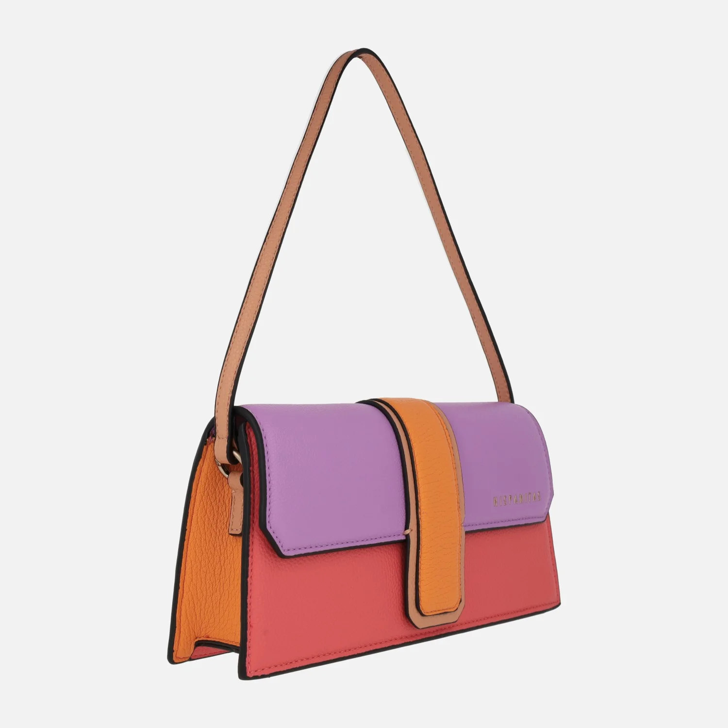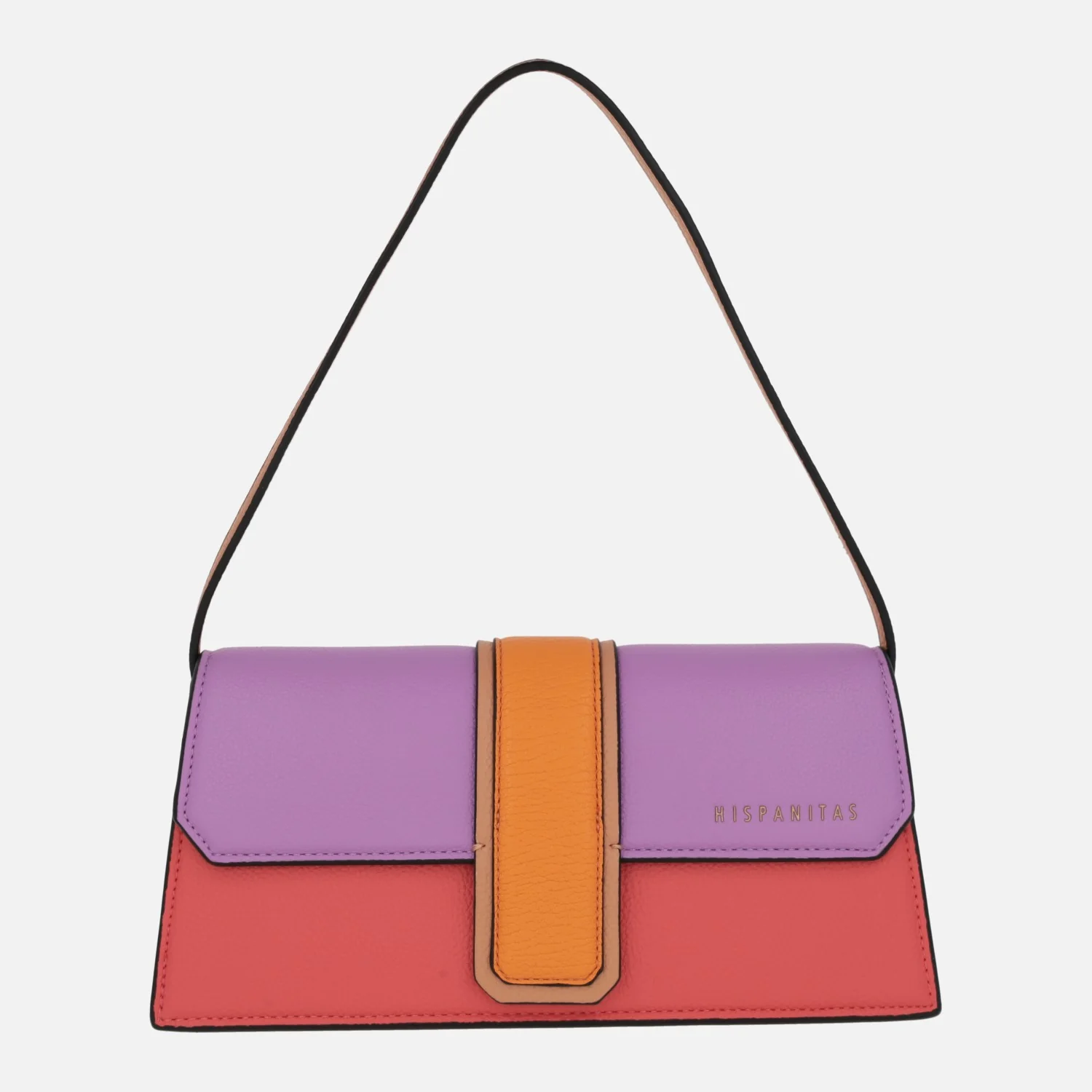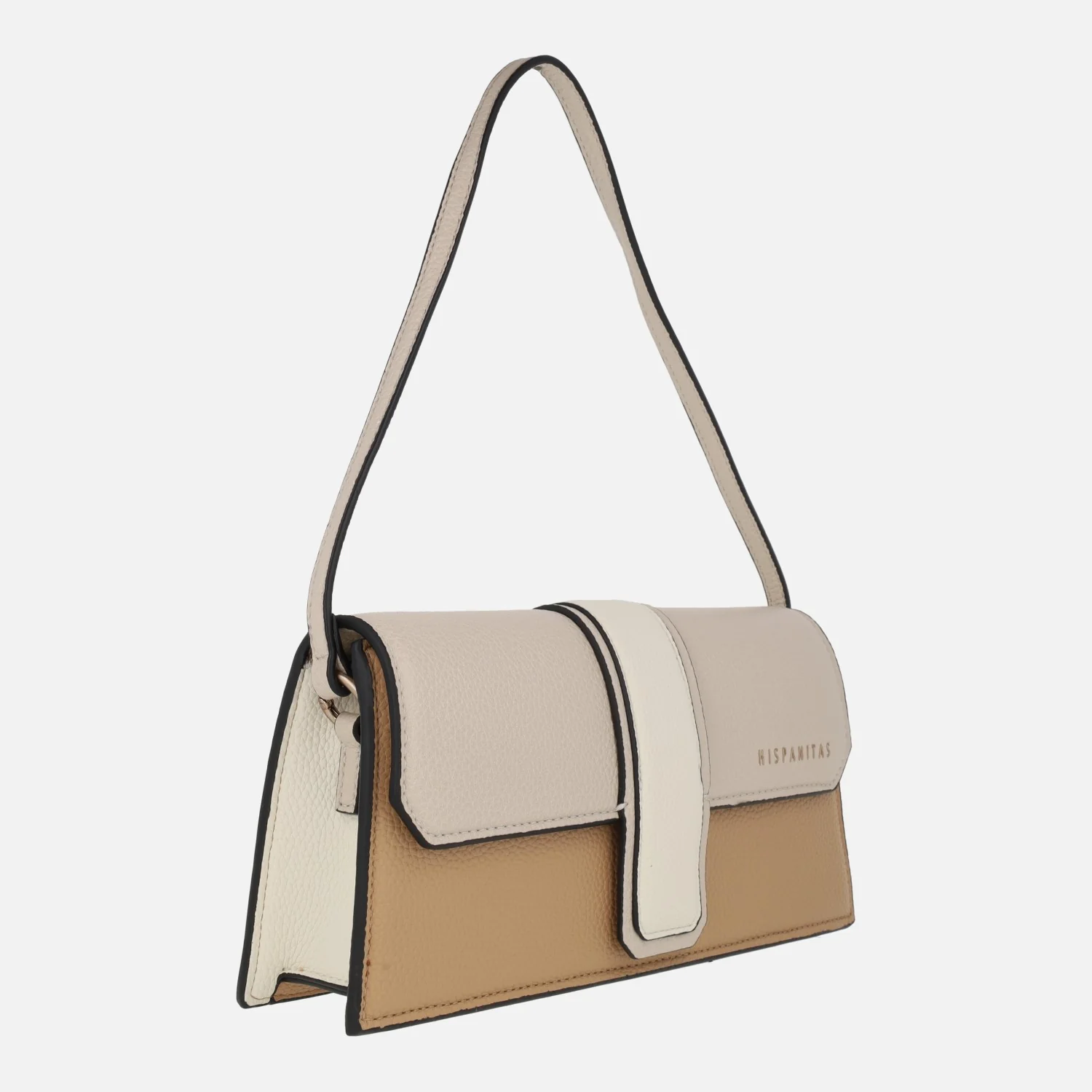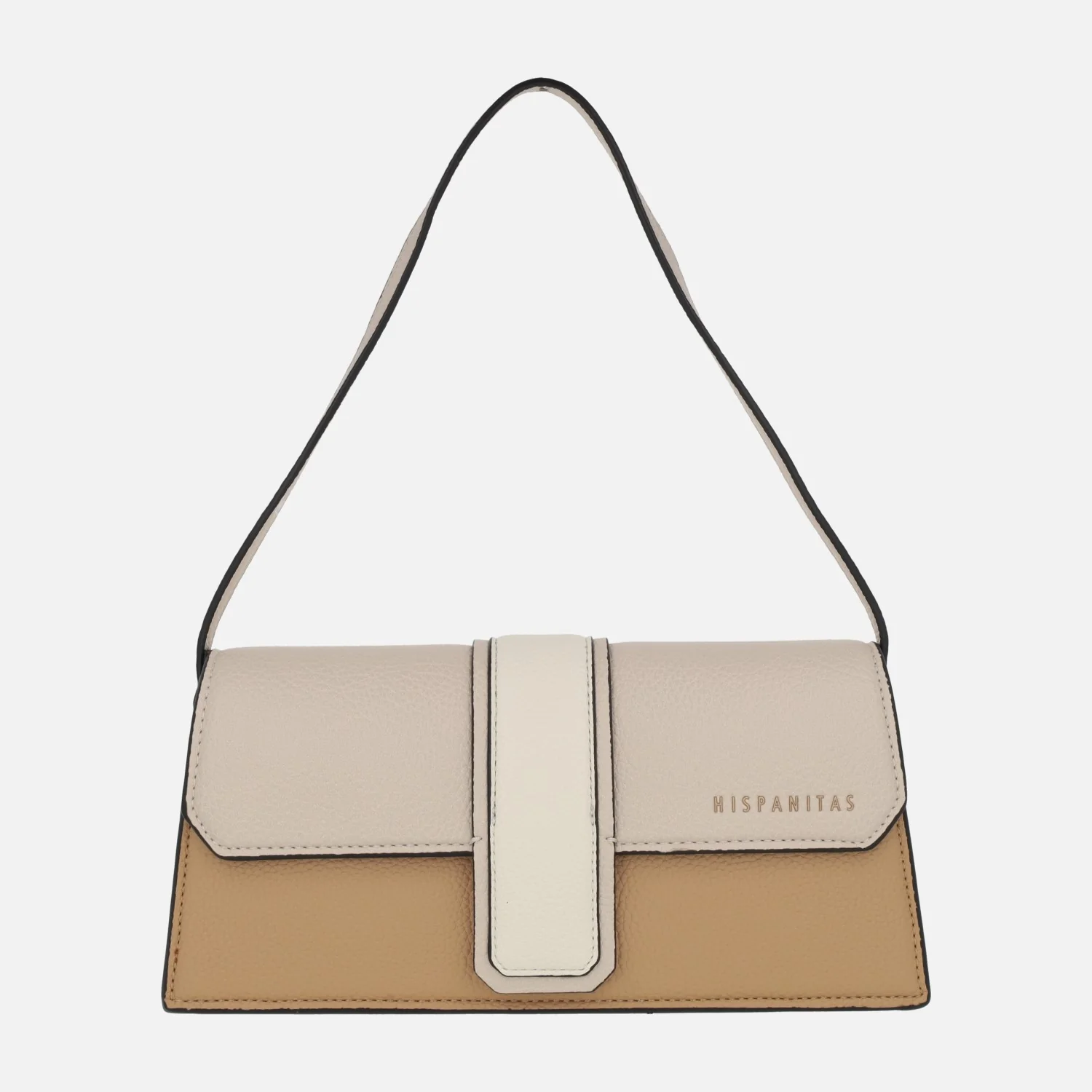 Bolsos de hombro para mujer de la marca Hispanitas, modelo BV243250, disponibles en azul marino (marine), en stone (combinado beige) y en rojo/violet/naranja (multicolo). Bolsos elaborados en poliuretano, con forro textil. Cierre de tapa imantada, logo de la marca en la tapa. Bolsillo interior. Medidas: 13,5 cms de alto x 28 cms de ancho x 6,5 cms de fondo.