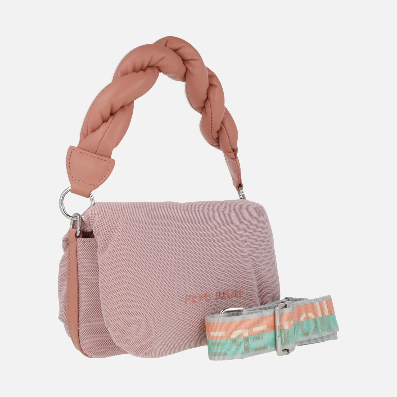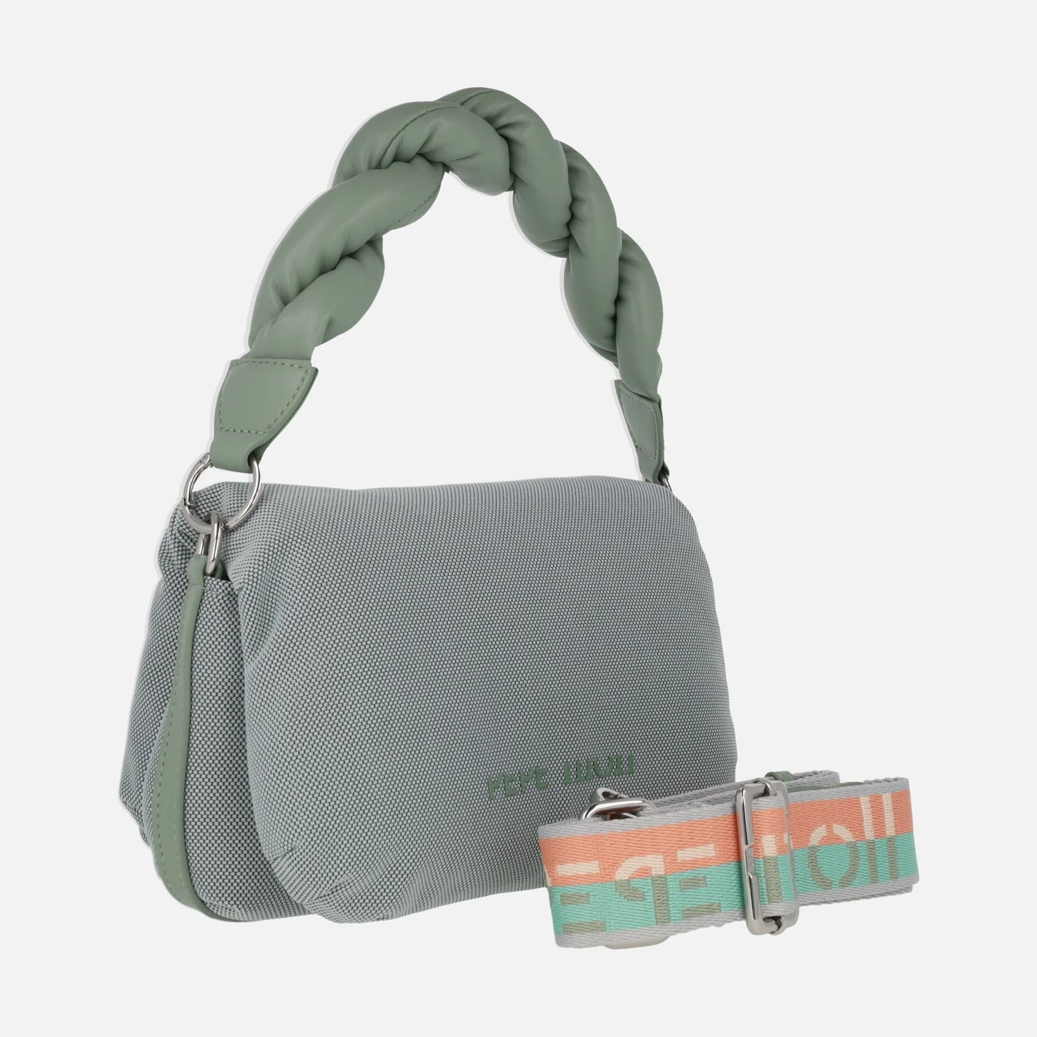 Preciosos bolsos de la nueva colección de Pepe moll, modelo 251180, disponibles en tejido (95% poliester y 5% poliuretano) Madras mint (verde menta), pink (rosa), Sand/tan (beige) y grey/black (negro). Bolsos de mano, elaborados en tejido con cierre de solapa imantada y cremallera interior. Bolsillo trasero con cremallera. Interior textil con bolsillo interior con cremallera. Elegante diseño de asa trenzada para llevar de mano, extraíble. Además incluye asa textil ajustable para bandolera, de hasta 67 cms de altura al hombro (asa pequeña de 16 cms de altura). Medidas aproximadas: 17 cms de alto x 27 cms de ancho x 8 cms de fondo.