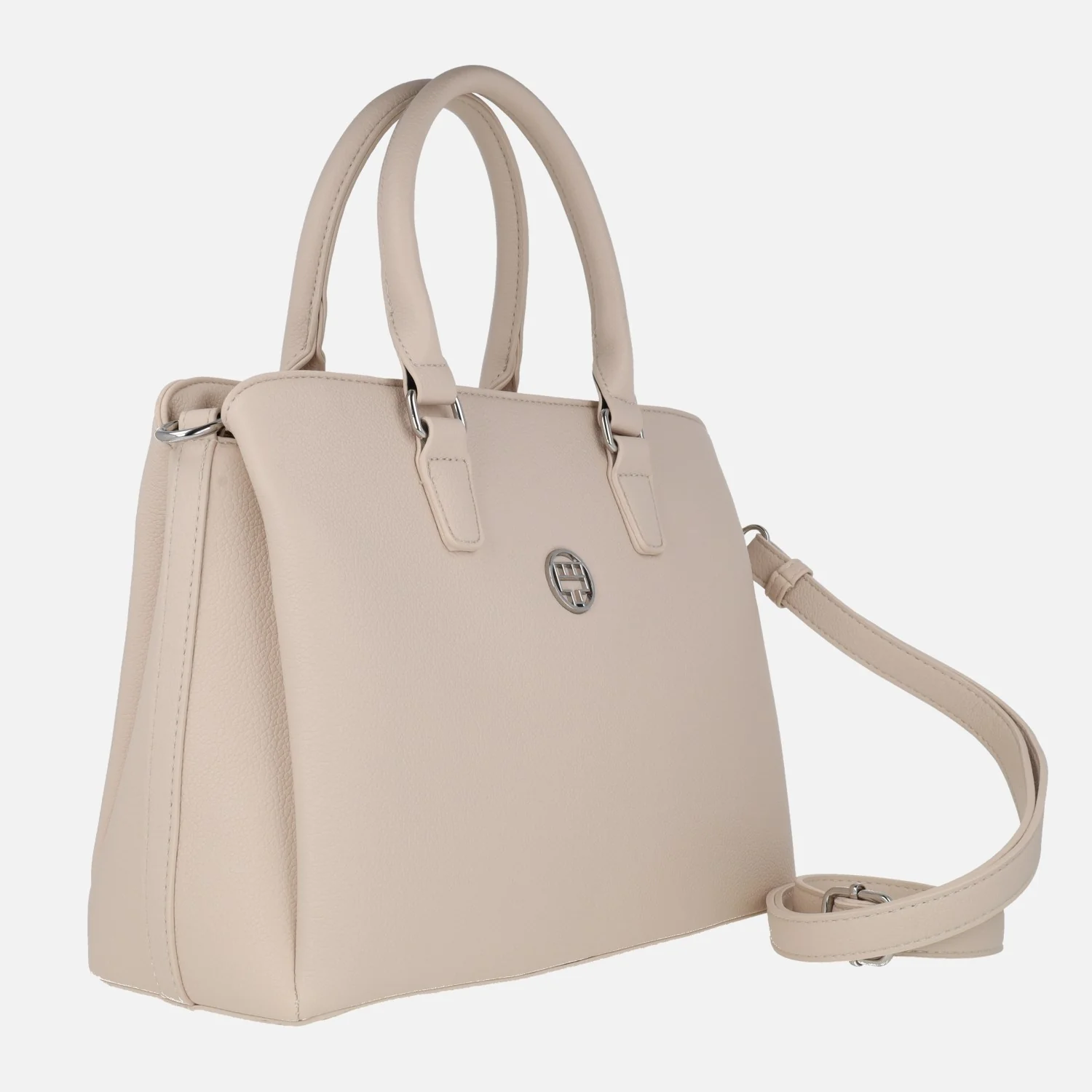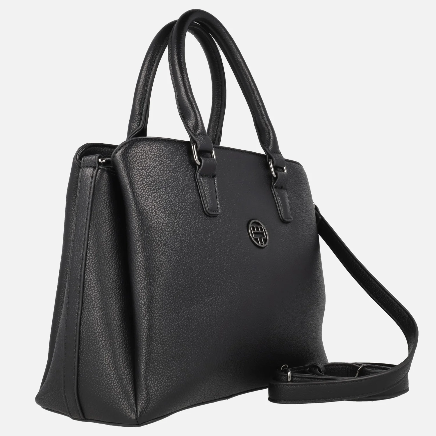 Bolsos de mano de corte clásico marca Torrens modelo 96209 disponibles en negro y en beige (hielo). Bolsos elaborados en materiales sintéticos efecto piel, con cierre de cremallera. Logo Torrens en la parte delantera. Bolsillo trasero con cierre de cremallera. Interior dividido en tres compartimentos, en tejido poliéster. Dos asas fijas para llevar de mano, además un asa bandolera regulable entre 35 y 71 cm al hombro. Medidas: 23 cm de alto x 31 cm de ancho x 12 cm de fondo.