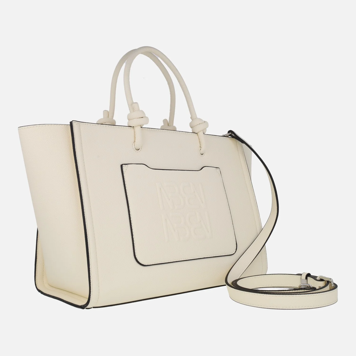 Bolsos de mano de la marca Binnari modelo 20530 Manzanares disponibles en negro y en off (hielo). Bolsos elaborados en materiales sintéticos efecto piel. Bolsillos delantero y trasero. Compartimento principal con cremallera. Interior textil con bolsillos. Dos asas fijas para llevar de mano y un asa ajustable y extraíble para llevar de bandolera, de 63 cm máximo al hombro. Medidas: 24 cm de alto x 31 cm de ancho inferior x 41 cm ancho superior x 16 cm de fondo.