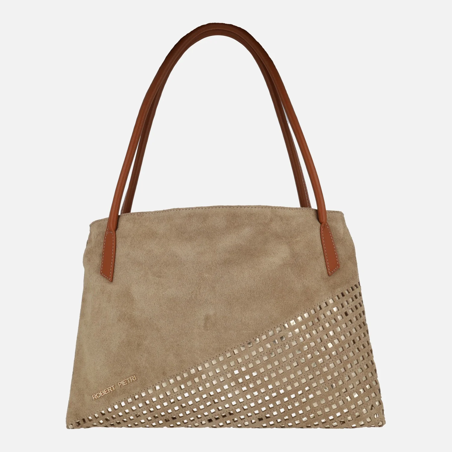 Bolsos Robert pietri línea piel, modelo 01195 arena colección Marcela. Bolsos elaborados en piel ante color camel con detalles en metalizado oro. Doble asa para llevar colgado al hombro. Bolso con concepto abierto, tan solo con cremallera en un compartimento central. Interior textil con bolsillos. Medidas: 26,5 cm alto x 36,5 cm de ancho inferior x 34 cm de ancho superior x 6 cm de fondo.