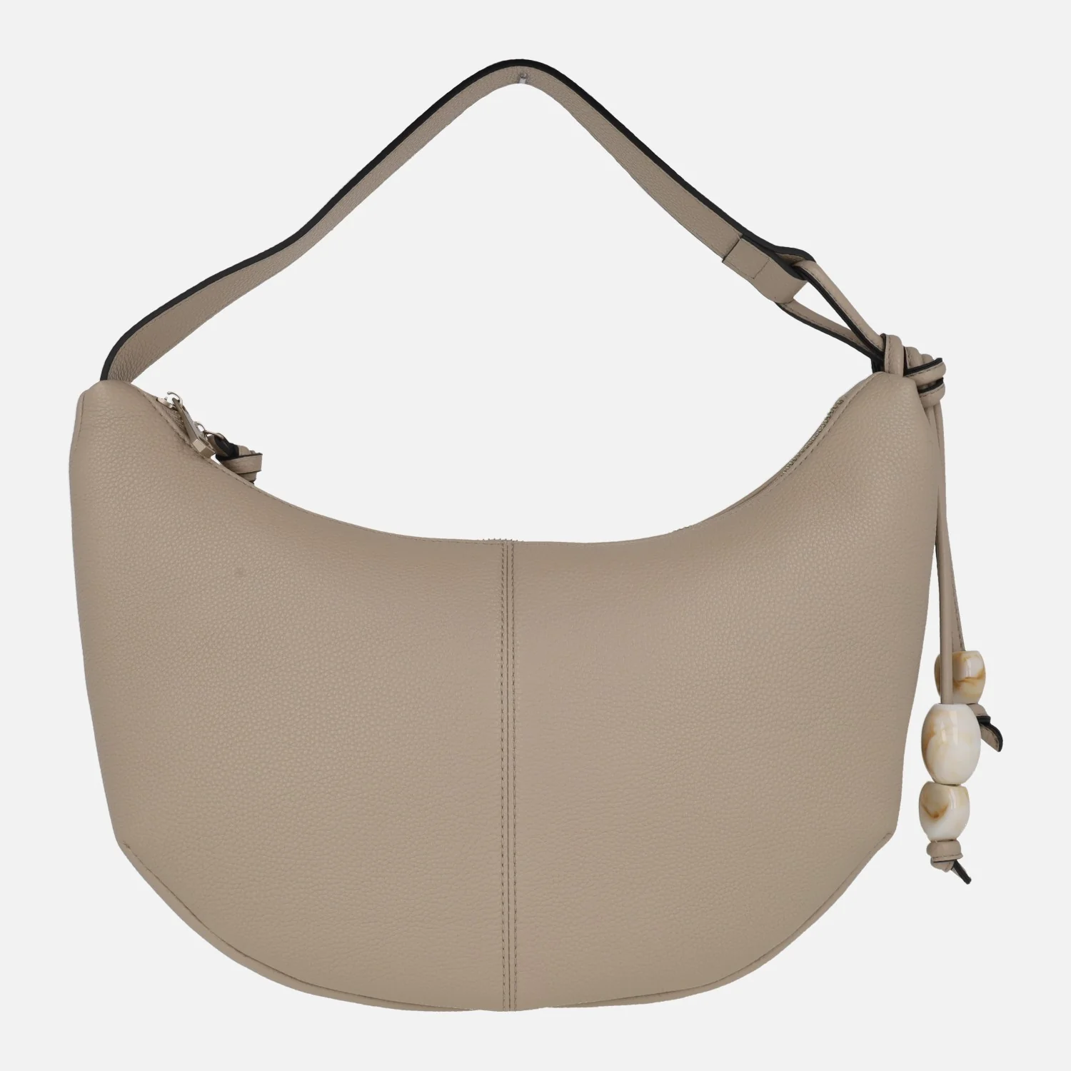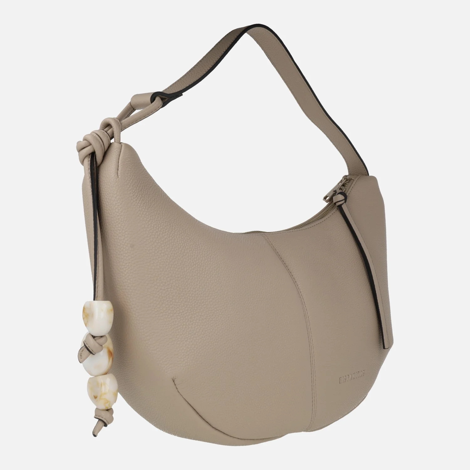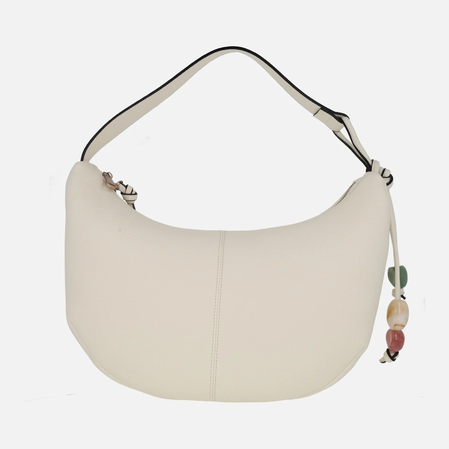 Preciosos bolsos Hobo de Hispanitas modelo BV253974, disponibles en latte (beige muy clarito) o taupe. Bolsos estilo góndola, elaborados en materiales sintéticos efecto piel (poliuretano). Cierre principal de cremallera. Adorno lateral emulando piedras naturales (plástico). Interior textil con varios bolsillos, uno de ellos con cremallera. Medidas aproximadas: 27 cms de alto por los lados (21 cms en la parte central) x 39 cms de ancho superior x 33 cms de ancho inferior x 9 cms de fondo. Asa al hombro de 22,5 cms de altura.