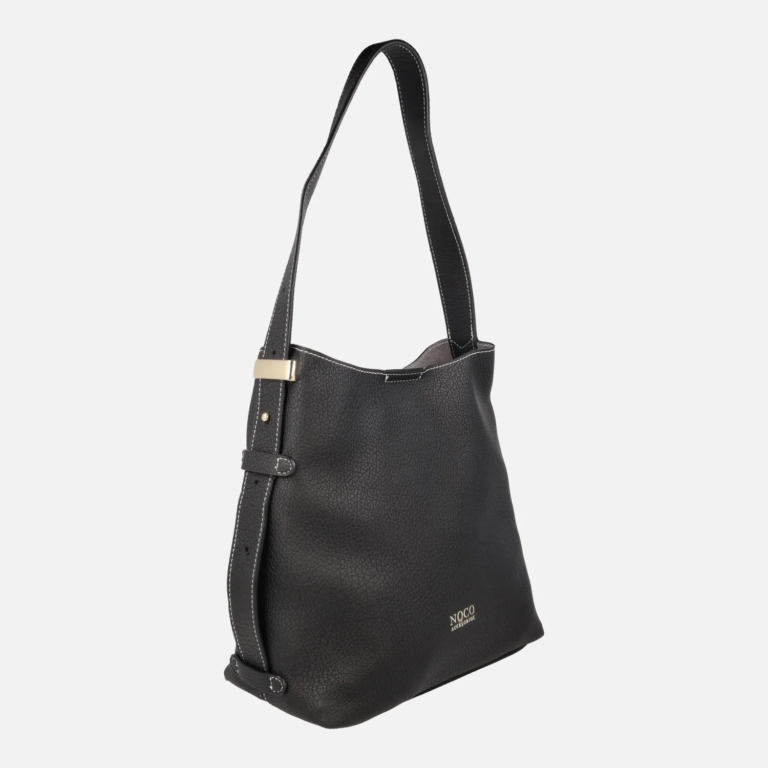 Bolsos para hombro de la marca Noco modelo 2525661 disponibles en negro y en marrón. Bolsos con exterior sintético, cierre principal con broche imantado y logo Noco en la parte frontal. Interior textil con neceser incluido (neceser con cierre de cremallera central, interior textil con dos bolsillos, uno con cremallera, y medidas: 14 cm de alto x 20 cm de ancho x 11 cm de fondo). Asa para hombro ajustable con botón. Medidas: 26 cm de alto x 25 cm de ancho x 12 cm de fondo.
