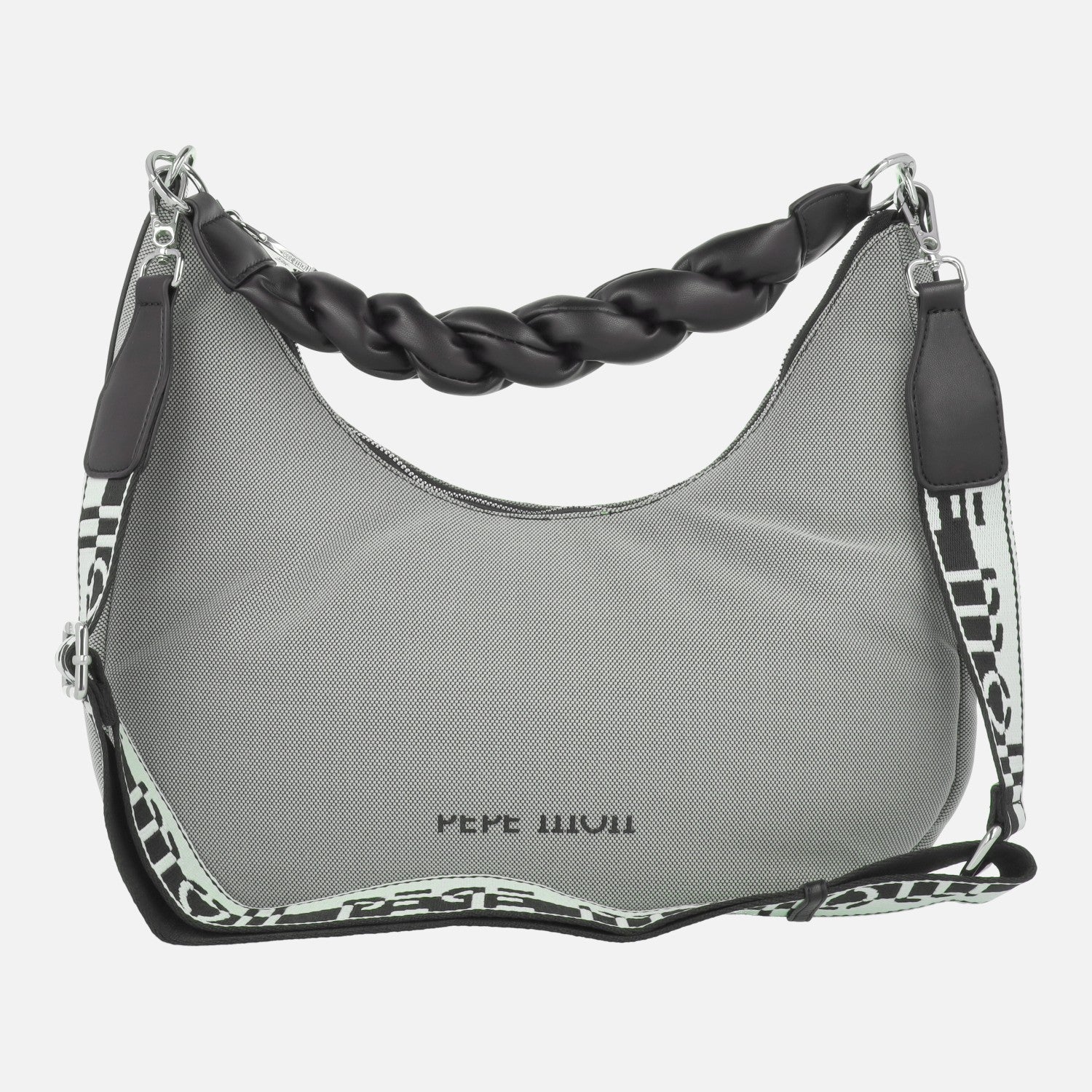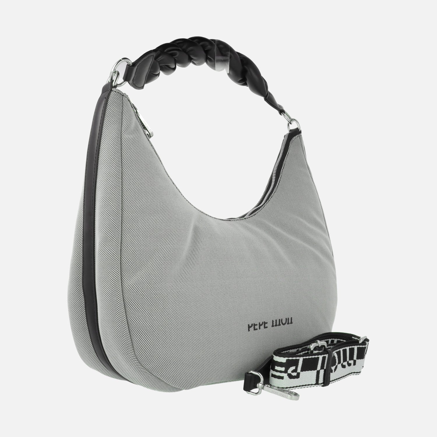 Bolsos para hombro de la marca Pepe Moll modelo 251182, en Madras grey/black, y en Madras sand/tan. Bolsos elaborados en tejido y sintéticos (95% poliester y 5% poliuretano) en combinado marrón y negro. Cierre principal con cremallera. Asa trenzada para hombro, extraíble, de 27 cm al hombro. Además asa bandolera textil y ajustable, de un máximo de 81 cm al hombro. Interior textil con bolsillos. Medidas: 30 cm alto exterior x 20 cm alto central x 38 cm de ancho x 15 cm de fondo.