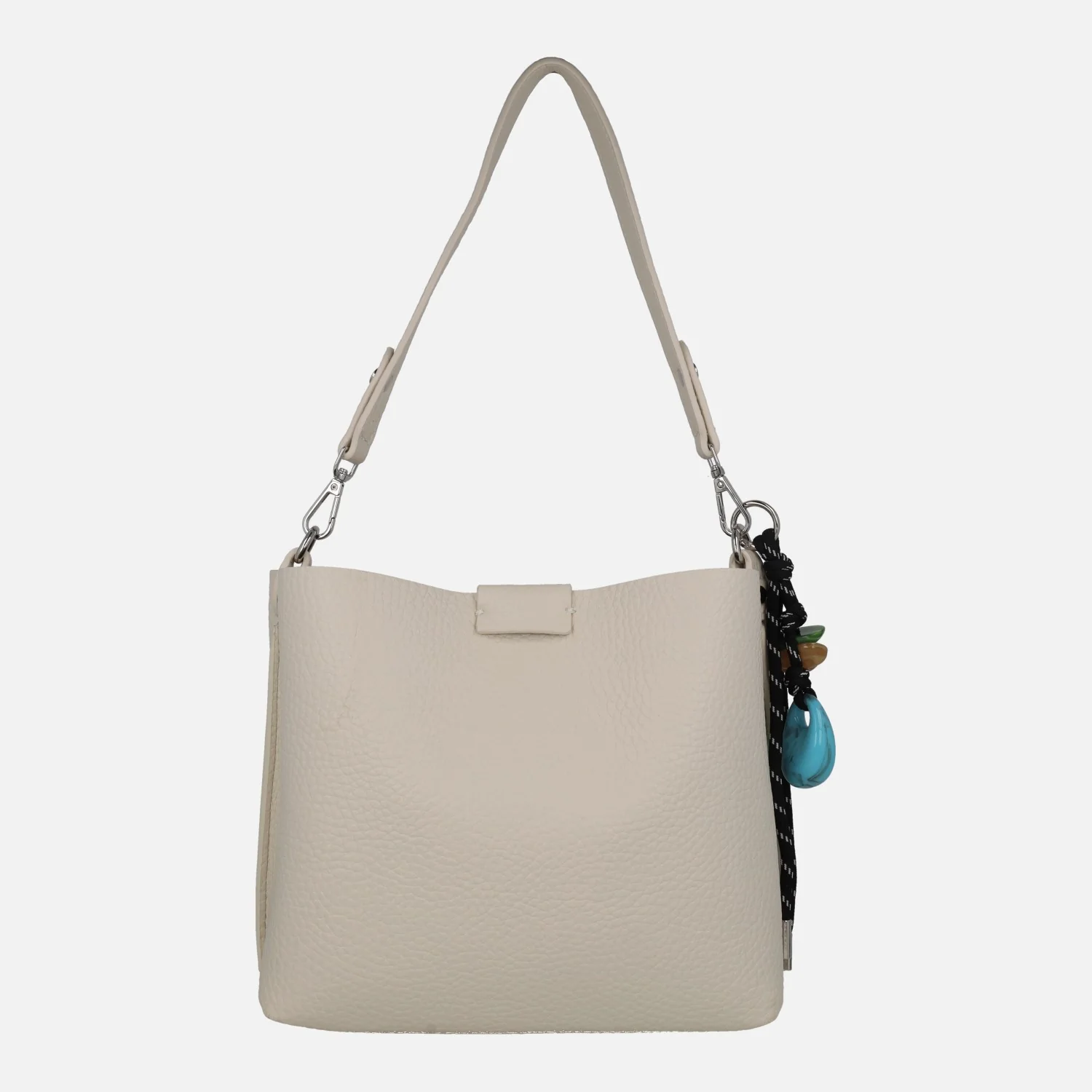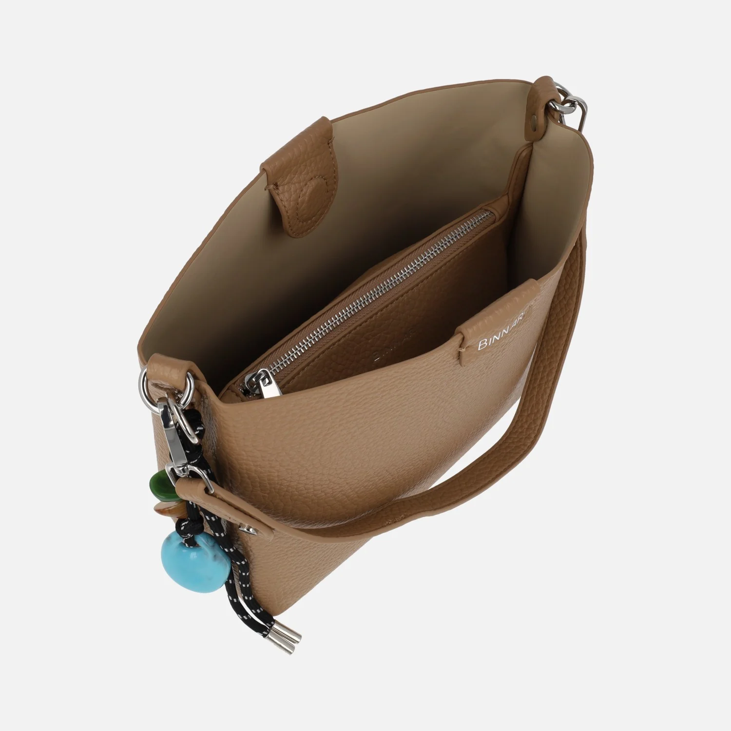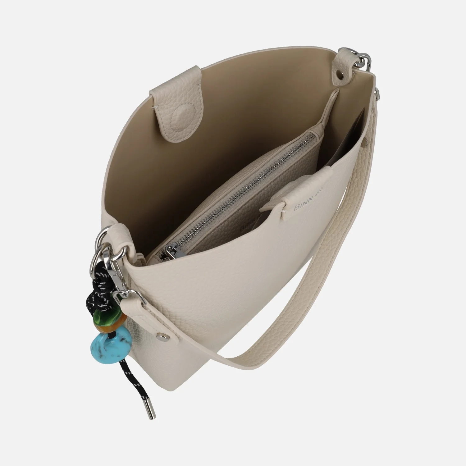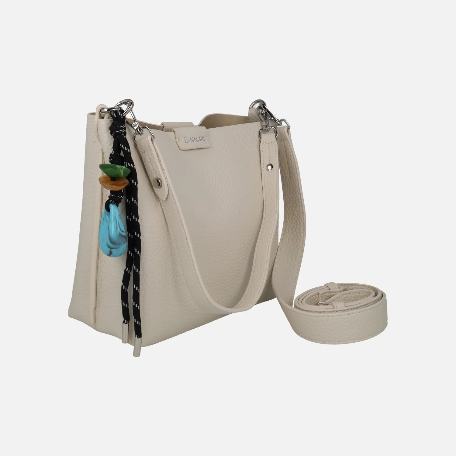 Bolsos Quila 21091 de la marca Binnari, disponibles en hielo (beige clarito), negro o camel. Bolsos elaborados en materiales sintéticos efecto piel, ultra suaves, PU soft. Bolsos con dos asas, por un lado un asa para llevar al hombro, y por otro lado un asa bandolera ajustable. Cierre con broche imantado. Compartimento central con cremallera. Medidas: 22 cm de alto x 24,5 cm de ancho x 8,5 cm de fondo.