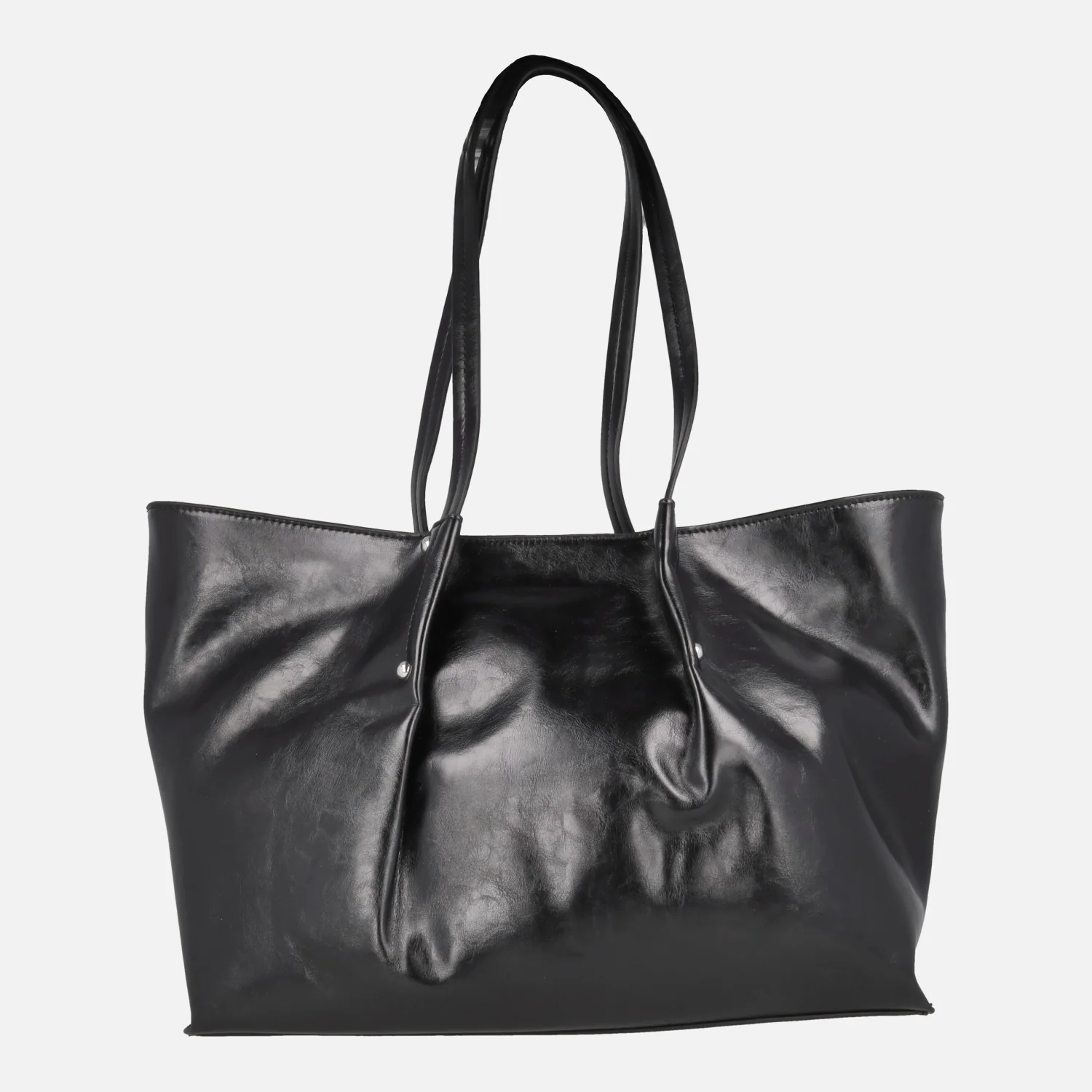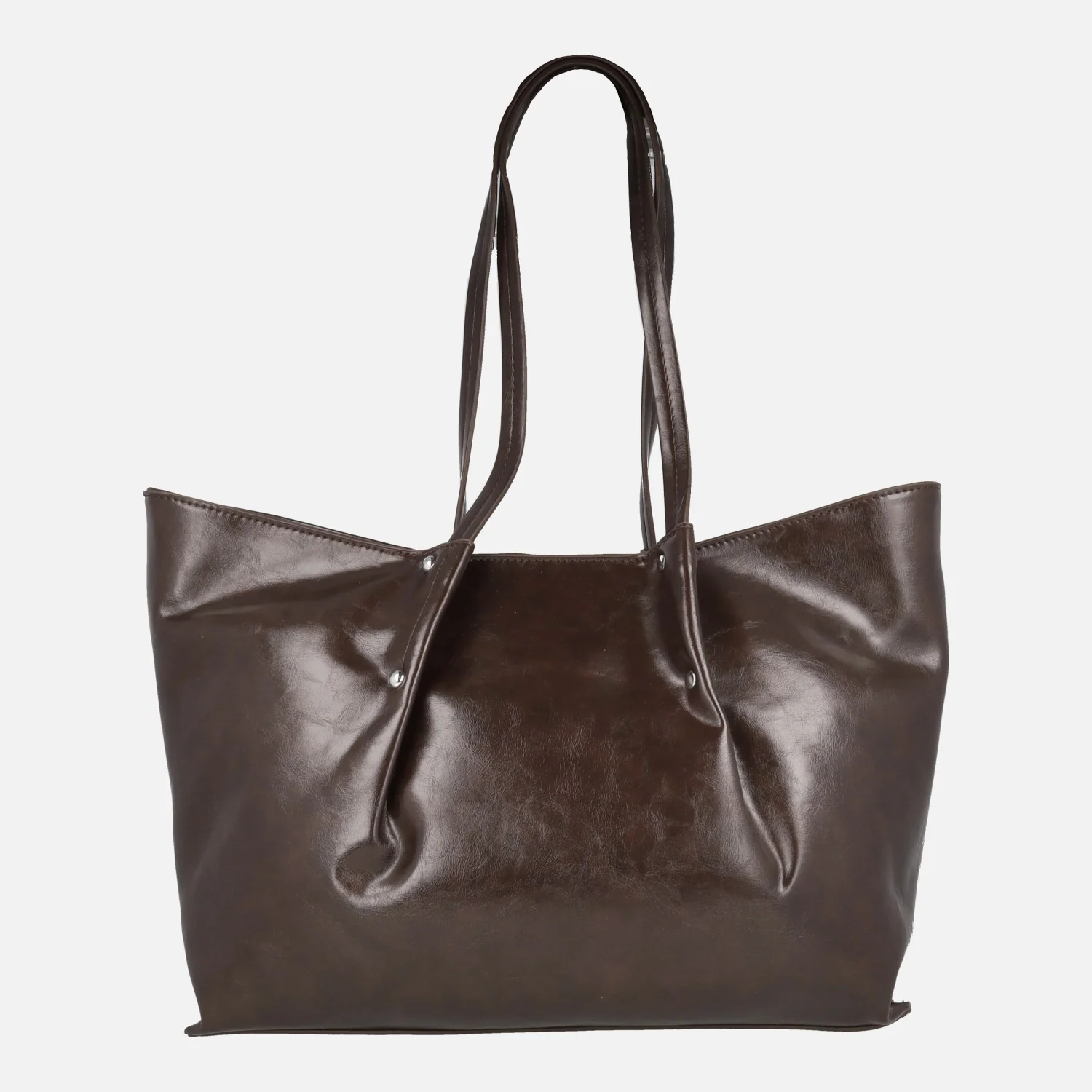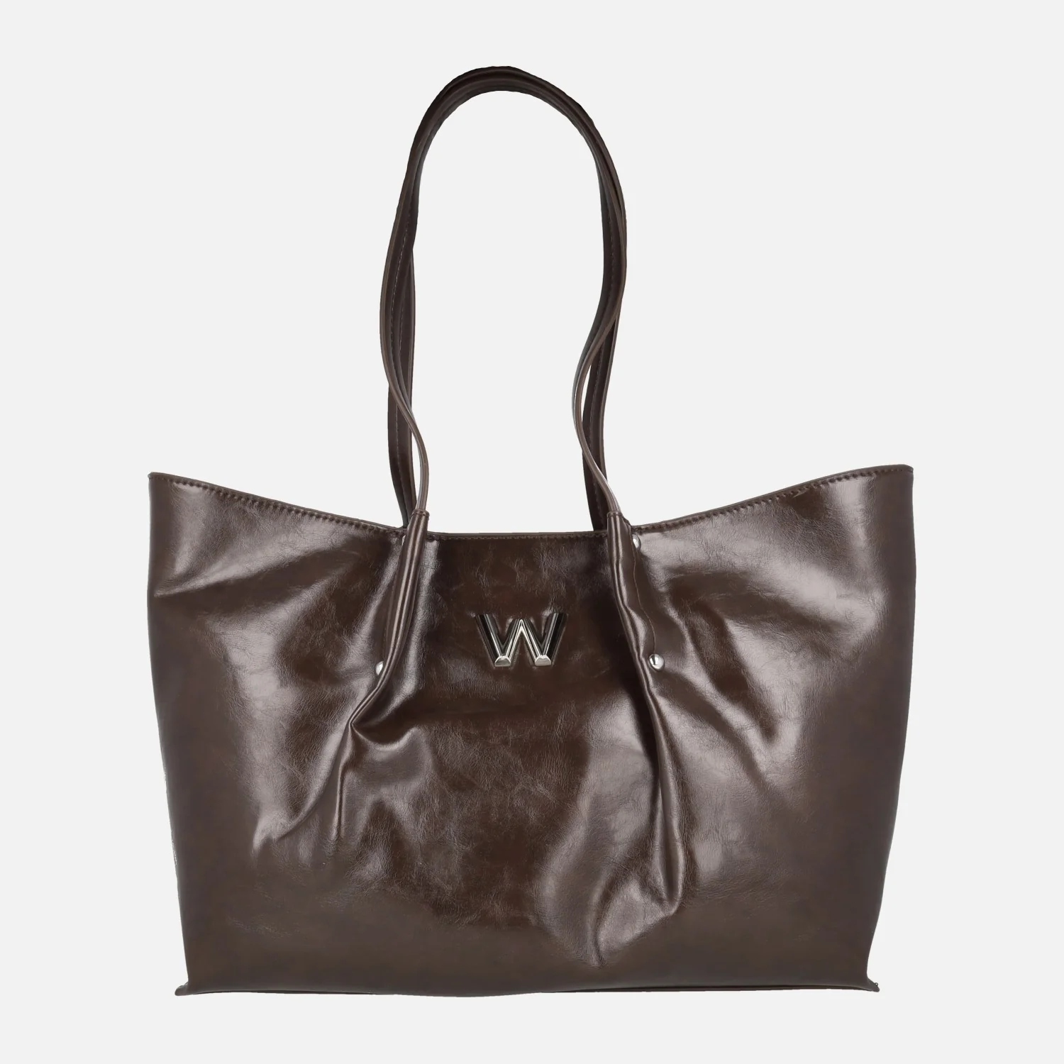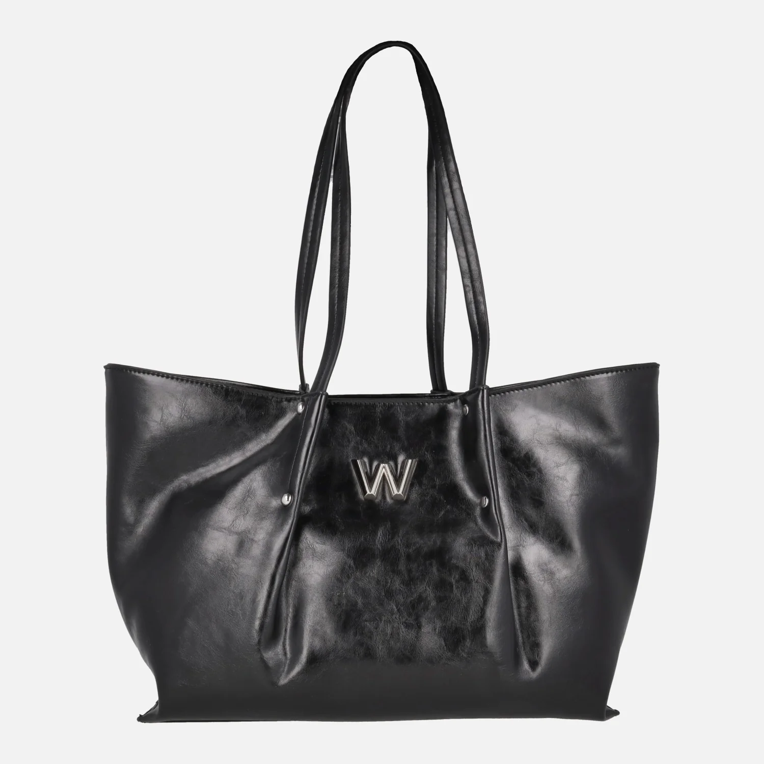 Bolsos nueva colección Wonders, modelo WB-54023 Naysa, disponibles en negro y en testa (marrón). Bolsos con exterior sintético (100% poliuretano) efecto piel, con logo metálico de la marca y tachas. Cierre principal de cremallera. Interior textil 100% poliester, con bolsillo interior. Dos asas fijas para llevar al hombro. Medidas: 25 cm de alto en la parte central (sube un poco en los laterales) x 35 cm de ancho inferior x 43 cm de ancho superior x 13 cm de fondo.