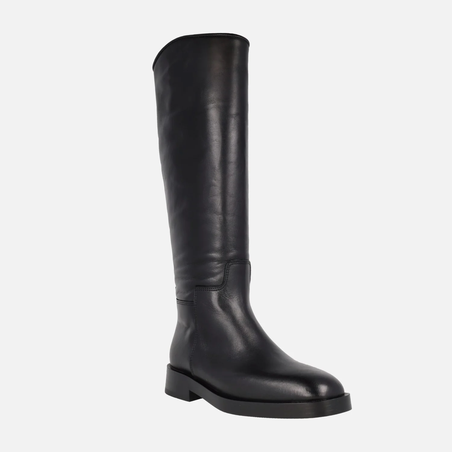 Botas de caña alta modelo Saragota 5303 de la marca Alpe. Botas de piel, con cremallera en el lado interior (no llega arriba del todo). Disponibles en negro y en marrón chocolate (testa). Interiores en textil. Piso sintético, con tacones de 3,5 cm. Caña de aproximadamente 40 cm de altura.