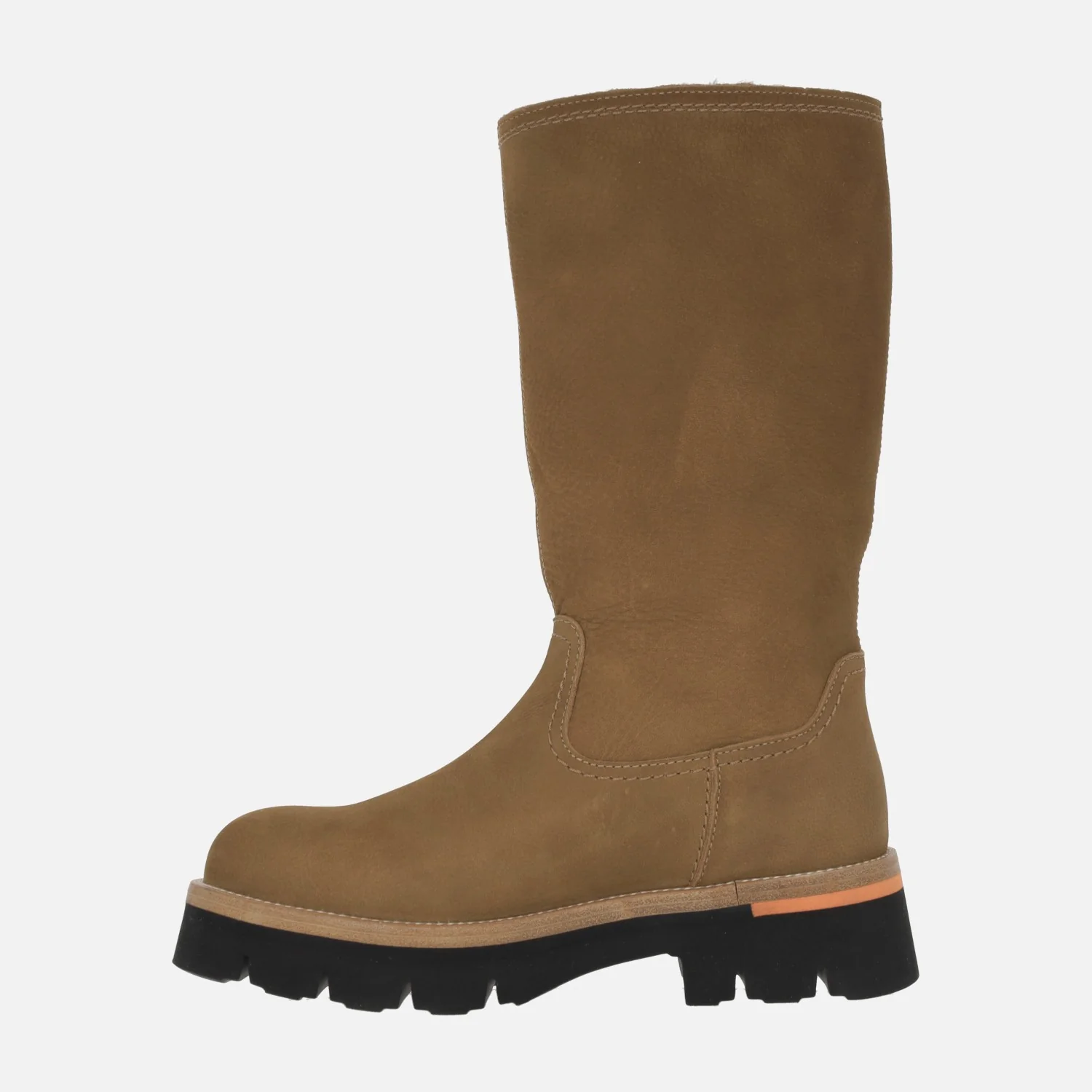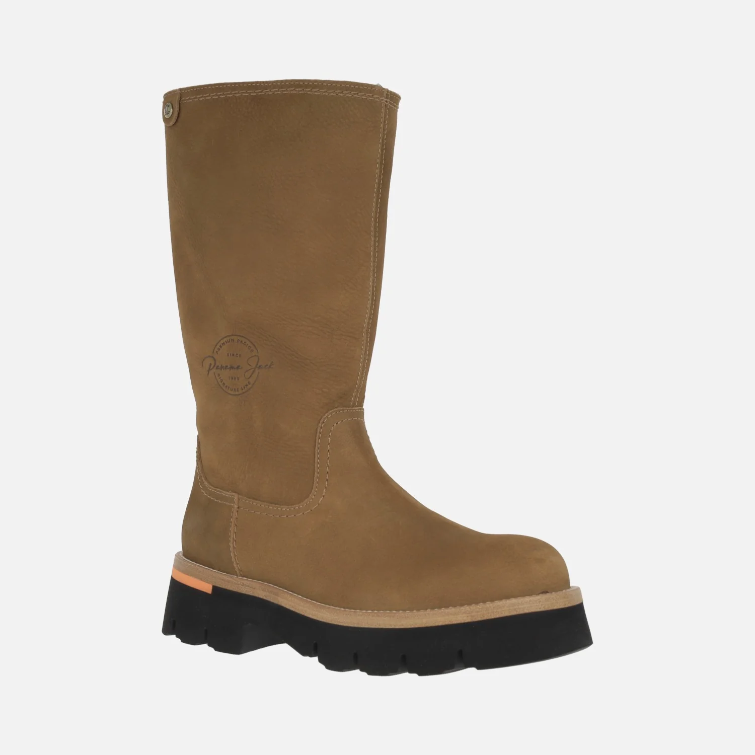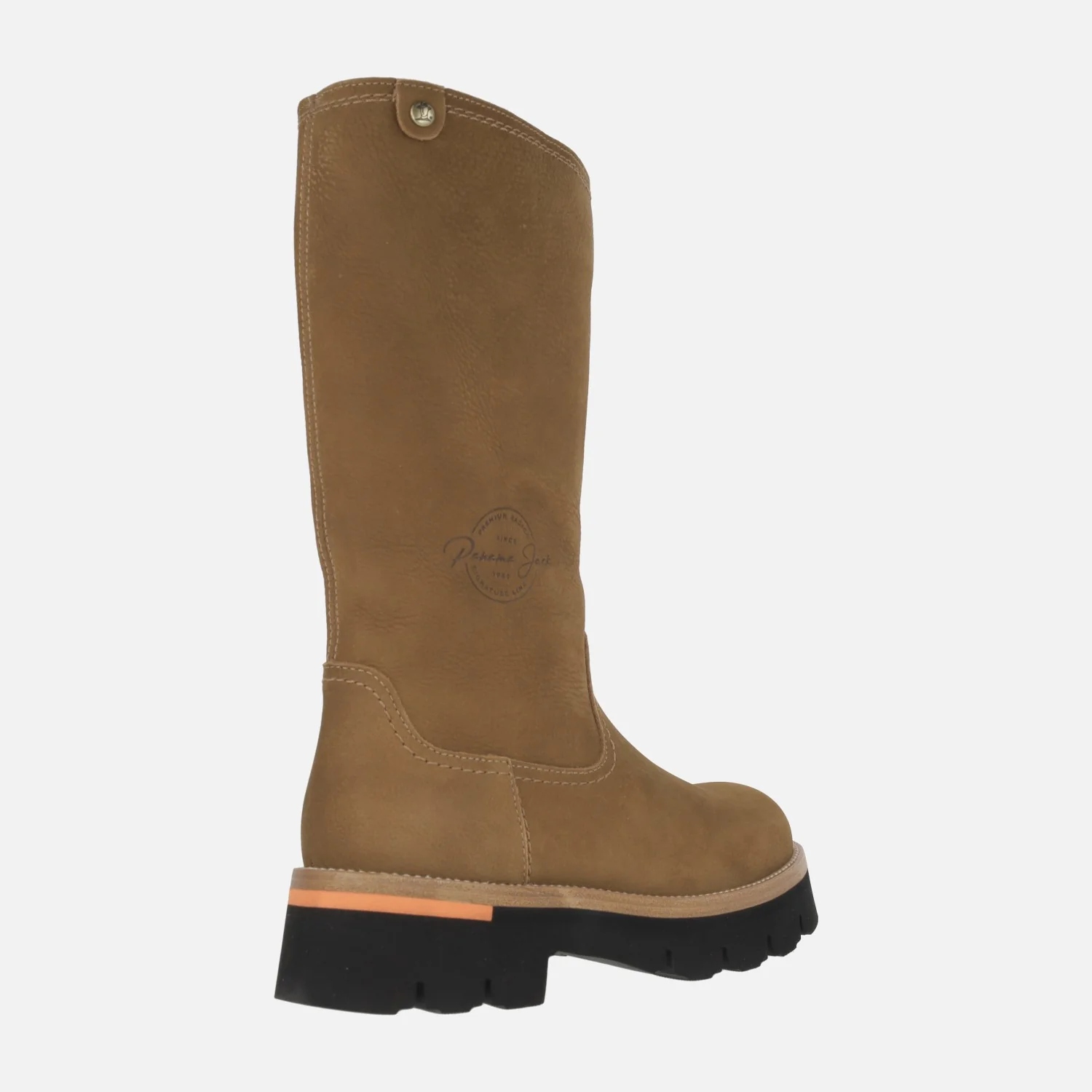 Botas altas Lima de Panama jack, disponibles en B2 Nobuck cuero (bark). Botas de caña alta elaboradas en piel nobuck waterproof, con forro interior de pelo (caña y planta). Plantillas extraíbles. Caña de 29 cms de altura. Piso de EVA, con tacón de 5 cms de altura (3 cms parte delantera). Made in Spain.