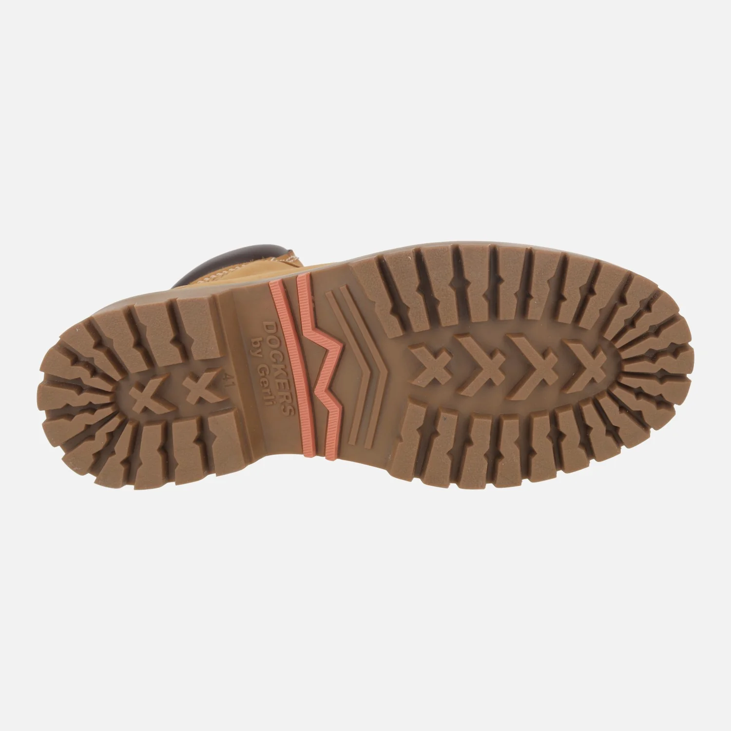 Botas de cordones para hombre de la marca Dockers modelo 53AX003 Golden. Botas elaboradas en piel nobuck color amarillo mostaza, con cierre de cordones e interior textil. Piso de goma.