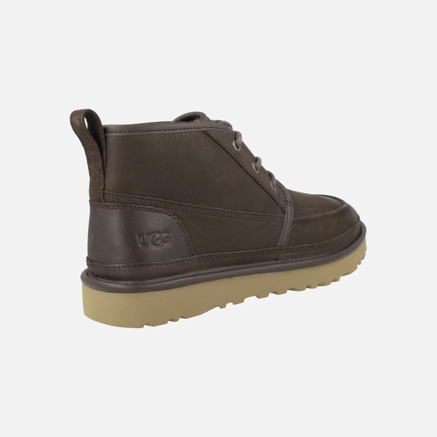 Botas de cordones para hombre de la marca UGG modelo 1171112 Neumel Moc nobuck, disponibles en dusted cocoa y cobble grey. Botas de cordones elaborados en piel nobuck, con puntera ligeramente engrasada. Interior textil forrado de pelo UGGPLUSH (60% lana reciclada y 40% lyocell). Piso de goma EVA muy ligero.