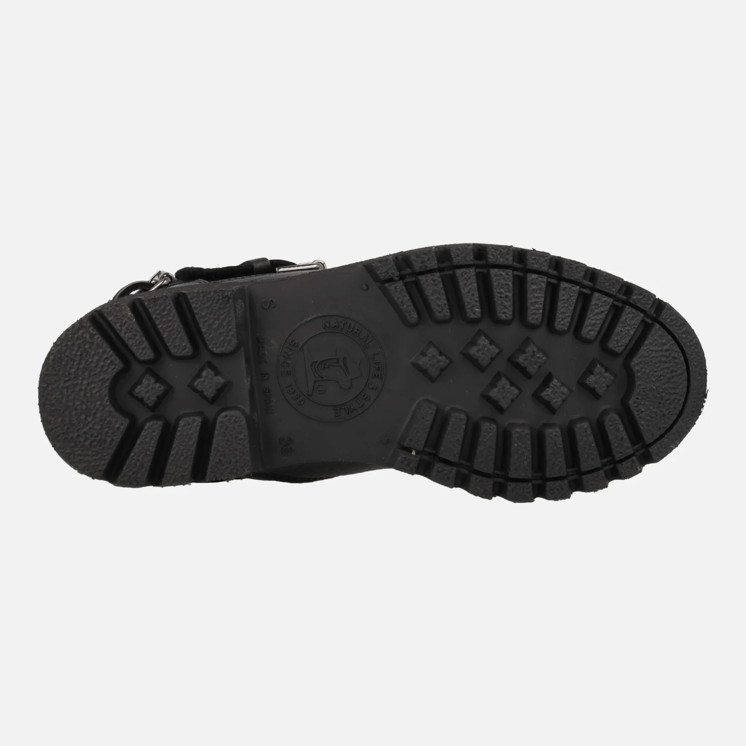 Botas de estilo motero en piel negra Felina con detalle de hebillas