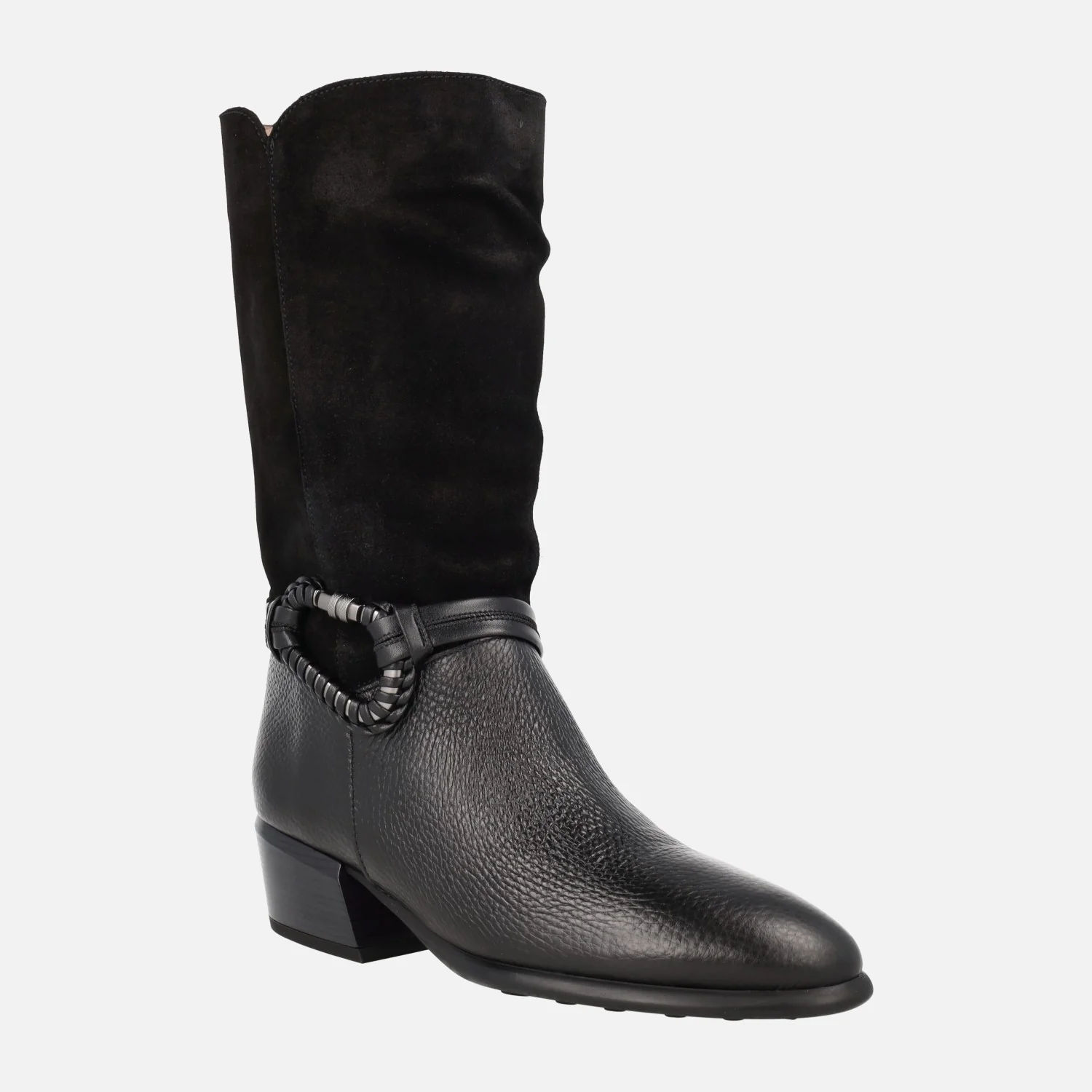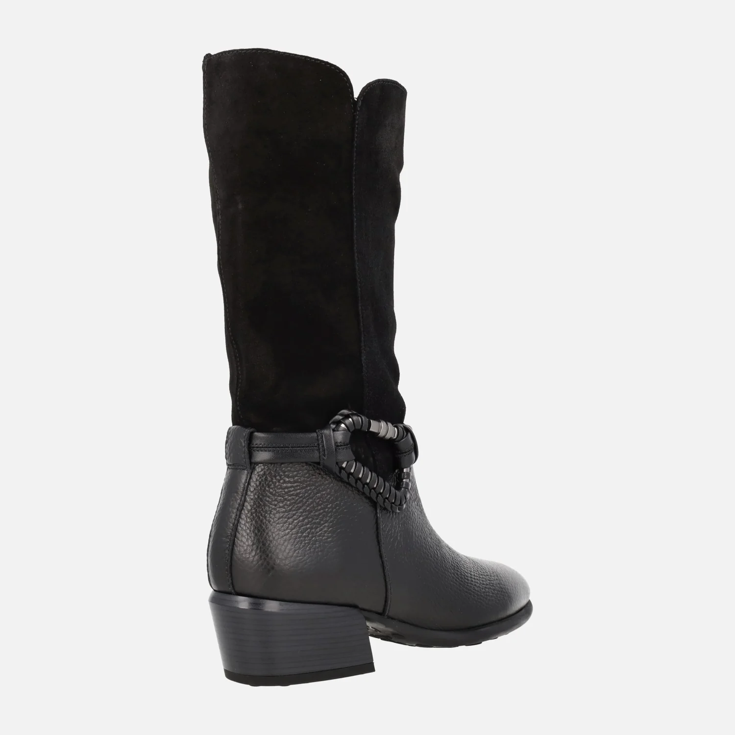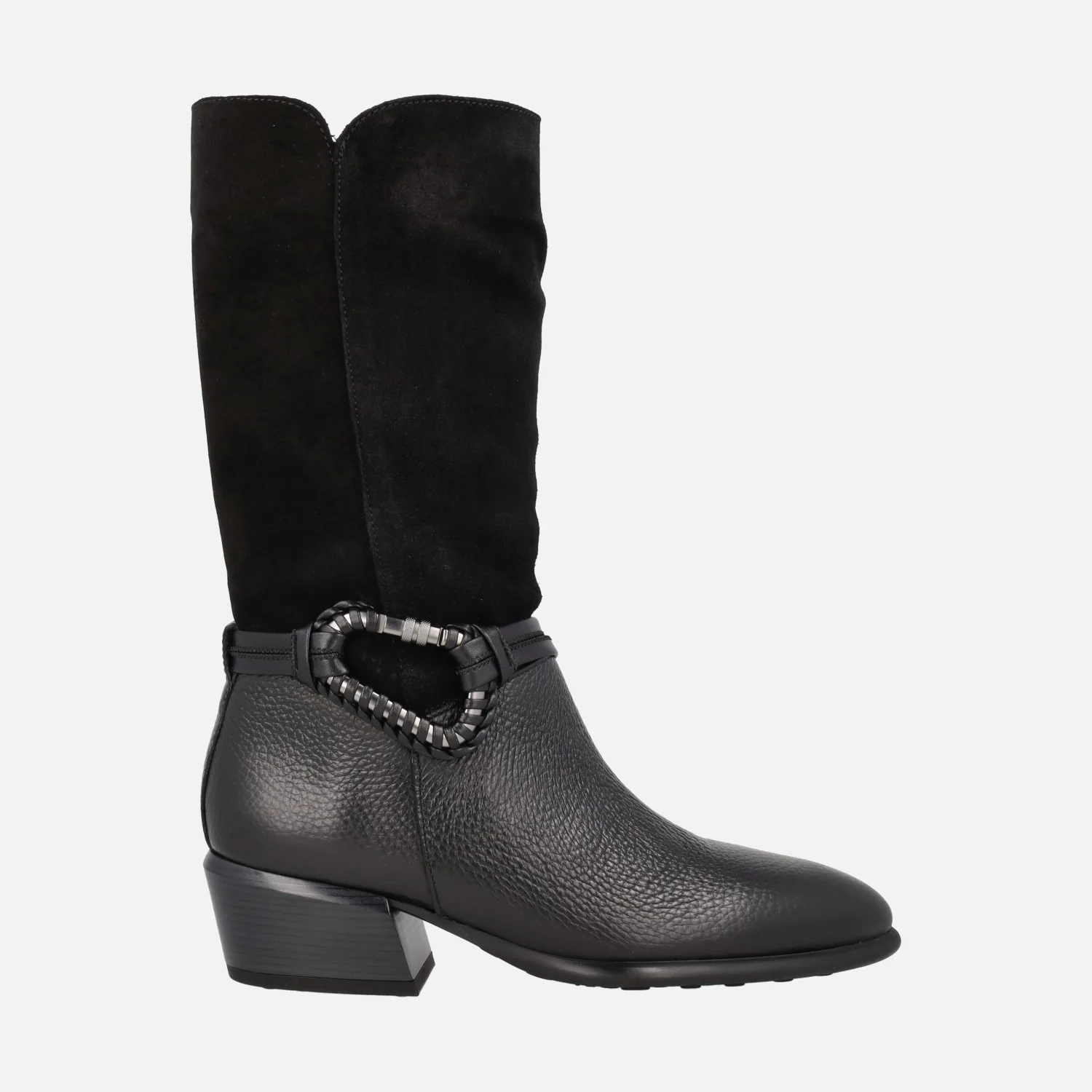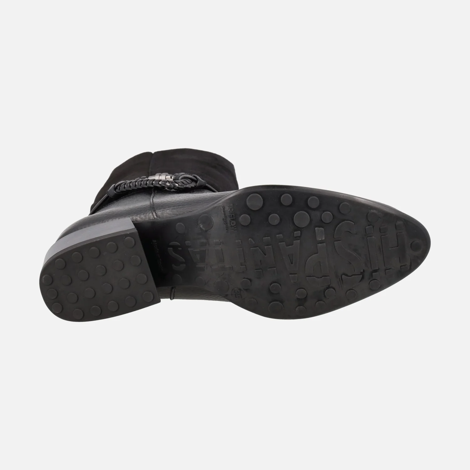 Botas de media caña de la marca Hispanitas modelo Verona PHI254298 disponibles en negro y en avellana. Botas elaboradas en piel y serraje con adorno metálico en lado exterior. Interiores en microfibra. Piso sintético, de poliuretano termoplástico, con tacones de 5 cm de altura. Caña de 29 cm.