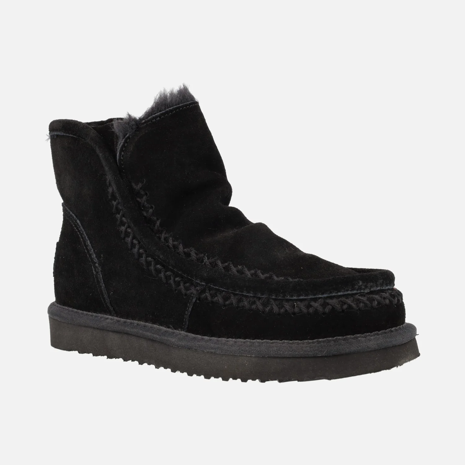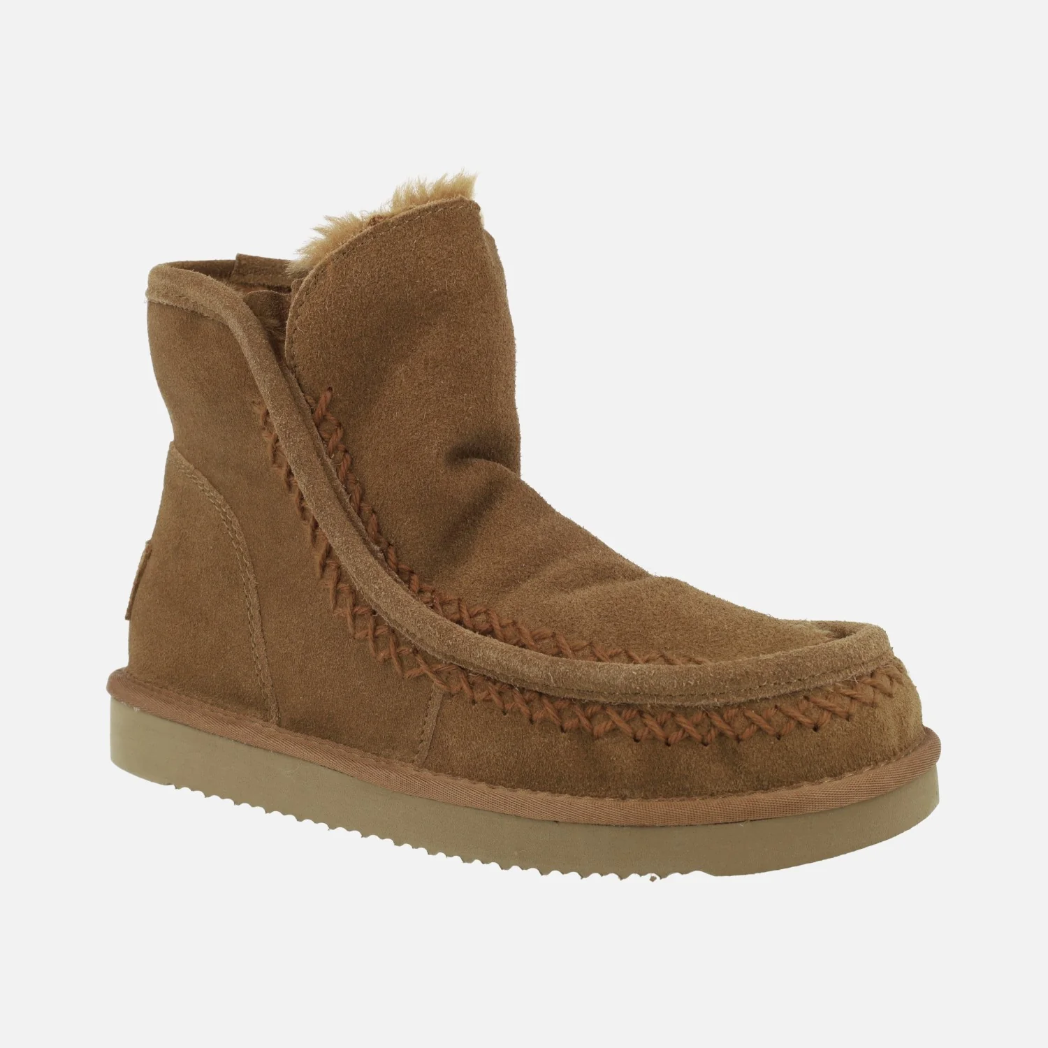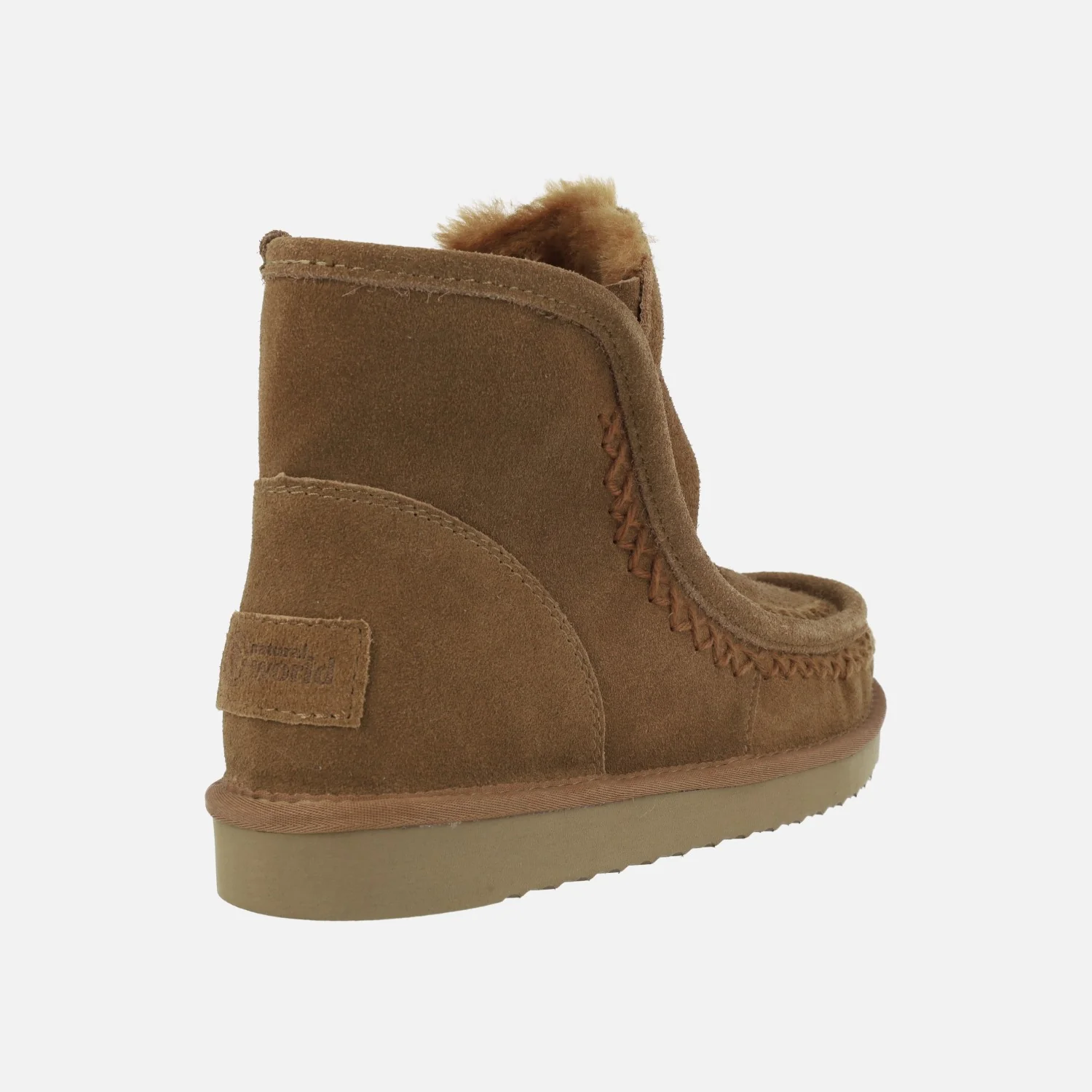 Botas para mujer estilo australiano de la marca Natural World, modelo 7302 Marena. Botas elaboradas en serraje, con interior forrado totalmente en pelo sintético (incluída la planta). Muy confortables y calentitas, ideales para este invierno. Piso ligero de goma EVA, con 3 cms de alto en la parte trasera. Altura de caña 14 cms.